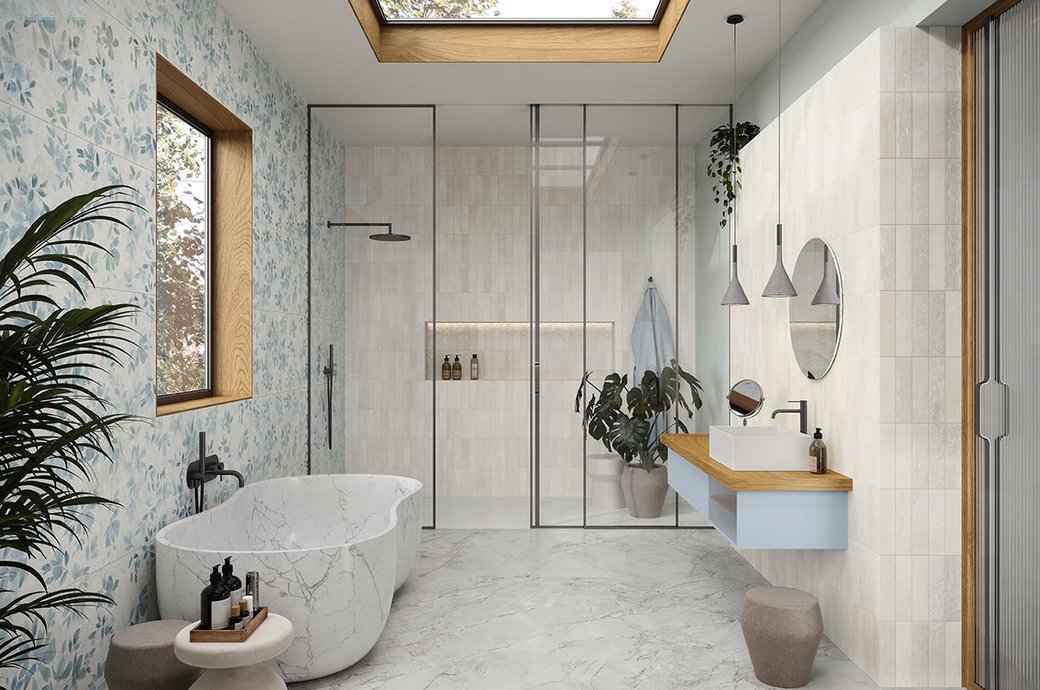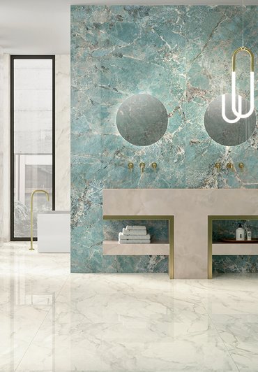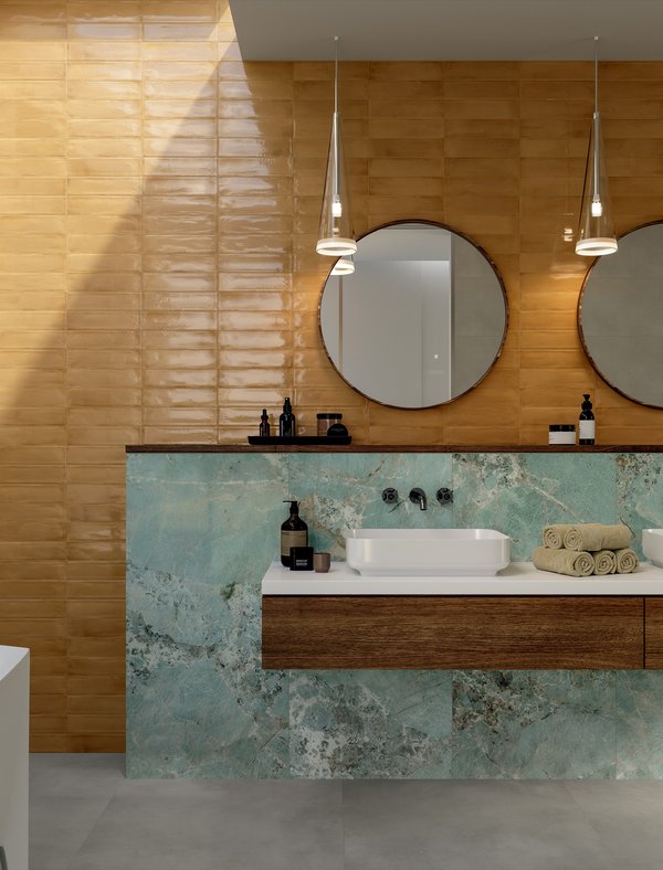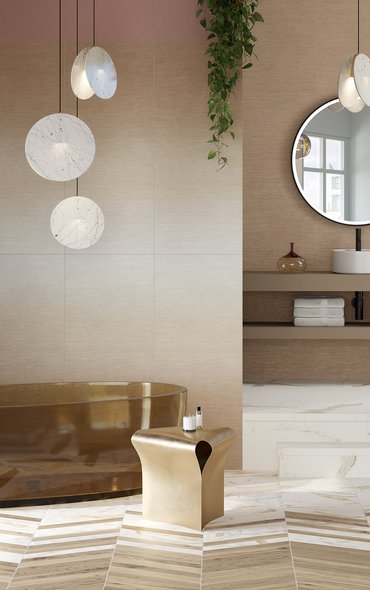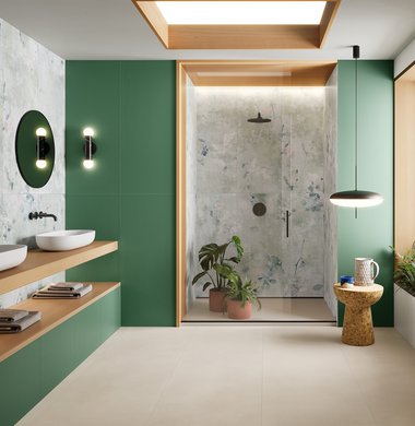 Stil, Widerstandsfähigkeit, Zuverlässigkeit und Reinigungsfreundlichkeit sind wesentliche Merkmale bei der Wahl von Badezimmerboden- und -wandbelägen: Keramikfliesen sind sicherlich die beste Lösung 3D-Wände mit neu-klassischem Flair, Wandbeläge mit Pop-Luxe-Marmor-Optik, Stein-Optik oder bunte Wandbeläge, die sich leicht mit eleganten und zeitgenössischen Feinsteinzeugbelägen kombinieren lassen.