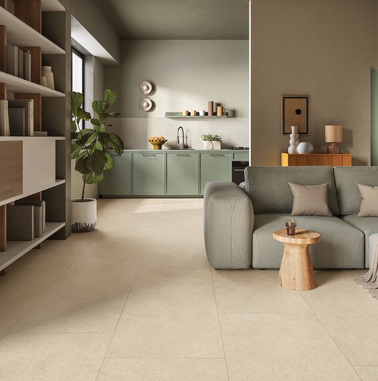Die Oberflächen von Lithora interpretieren den authentischen Charme von Kalkstein neu, mit strukturierten Details und natürlichen Farbtönen, die eine visuelle Kontinuität zwischen Böden und Wandverkleidungen gewährleisten. Erhältlich in den rektifizierten Formaten 60x120, 60x60 und 30x60, bietet sie maximale gestalterische Vielseitigkeit und eine einfache, präzise Verlegung.