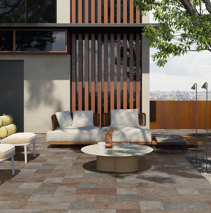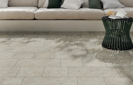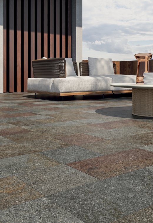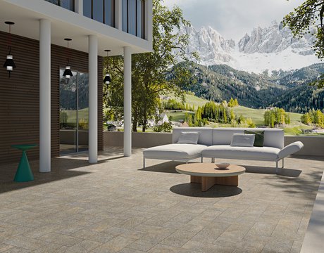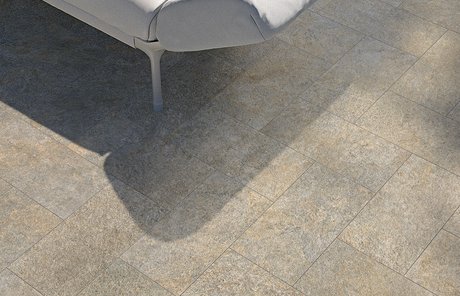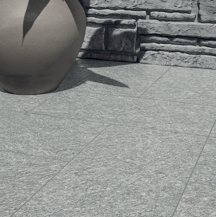 Vie della Pietra überträgt die authentische Schönheit des Natursteins auf zwei neue, nicht rektifizierte Formate: 22,5x22,5 und 22,5x45. Sie verleihen allen Außenbereichen des Wohnraums einen modernen Charakter, vom kleinen Garten bis zur Terrasse, vom privaten Schwimmbad bis hin zu großen Flächen im Objektbereich. Diese Lösung für den Bodenbelag ist in 8 unterschiedlichen Oberflächenausführungen erhältlich: Chianca, Falesia, Foehn, Altavalle, Quarzite, Oriente, Alpinia e Galassia. Sie unterscheiden sich jeweils durch ihre unterschiedliche grafische Inspiration und den Materialcharakter und sind jeweils in einem exklusiven Farbton erhältlich. Die 8 ausgewählten neutralen Farbtöne schaffen eine ebenso vielseitige wie ausgewogene Farbpalette. Aufgrund der naturgetreuen Nachahmung der Materialien, die als Vorbild dienten, den gewollten grafischen Farbschattierungen, der Zusammenstellbarkeit der angebotenen Formate und der Tatsache, dass die Fliesen in zwei verschiedenen Stärken, 9 und 20 mm, erhältlich sind, wird Vie della Pietra zu einer unglaublich vielseitigen Lösung. Die beiden Formate von Vie della Pietra sind so konzipiert, dass eine zusammenstellbare Verlegung möglich wird: es wird eine 3 mm breite Fuge für die Fliesen mit 9 mm Stärke und eine 4 mm breite Fuge für die Ausführung der HiThick Version empfohlen.