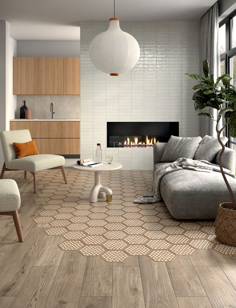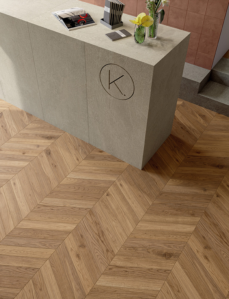 Unter den verschiedenen, mit Fliesen machbaren Optionen bleibt Feinsteinzeug in Holzoptik das beliebteste und gefragteste Material, und zwar dank seines Designs und seiner vielseitigen Formate, die die Eigenschaften des Ausgangsmaterials mit der Pflegeleichtigkeit und Langlebigkeit von Keramikoberflächen verbinden.