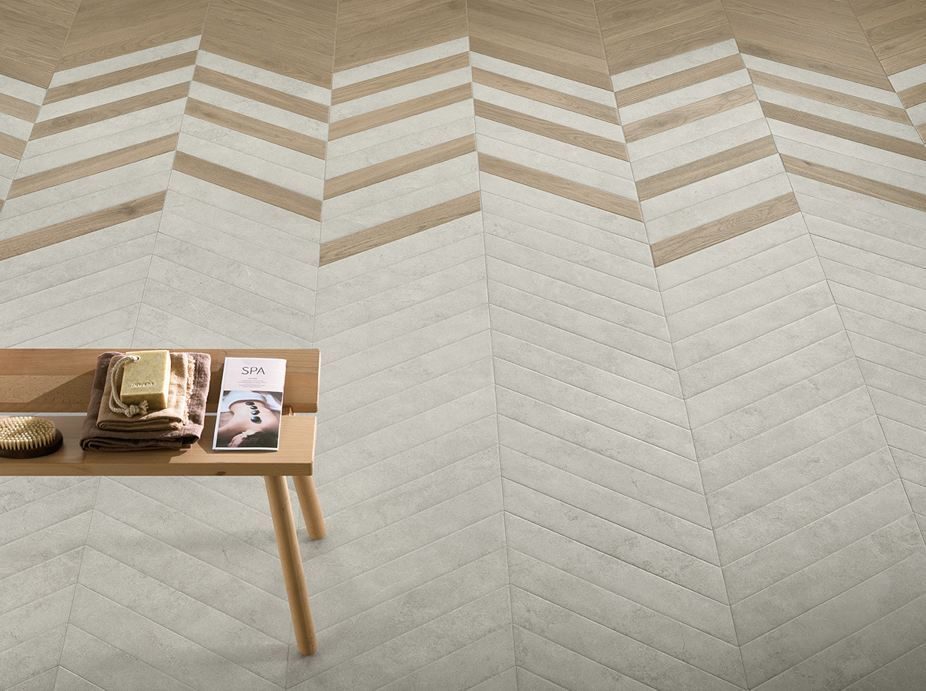 Jede davon nutzt dabei das Feinsteinzeug in Holzoptik im Format 7,5x60 cm und 7,5x45 cm, das je nach Anordnung einen anderen Stil und andere Besonderheiten annimmt.