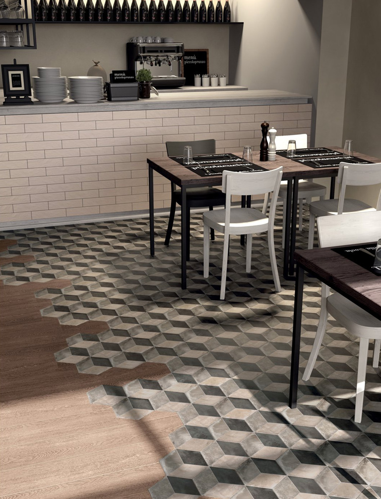 Auch in diesem Fall zeigen die Kollektionen Elisir Touch und Elisir Royal, die ebenfalls in den Formaten 7,5x60 cm und 7,5x45 cm erhältlich sind, ihr Potenzial als idealer Bodenbelag für kleine Räume.