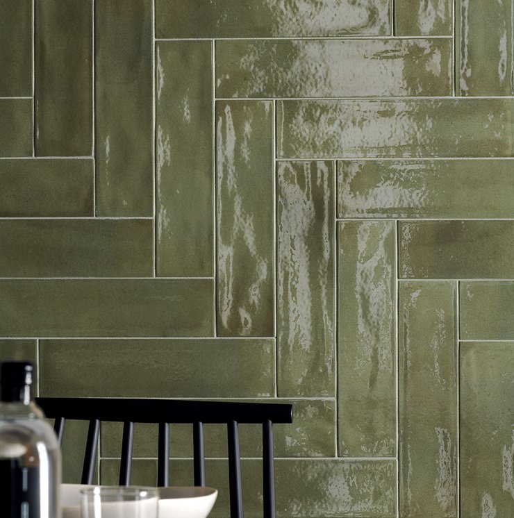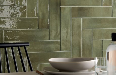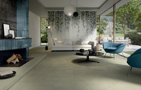 Feinsteinzeug und Industrial Green: Modernes Wohnen färbt sich grün