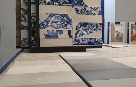 In dieser Hinsicht war der Erfolg von Natur und Farbe auf der Messe überraschend. Von große Platten, Feinsteinzeug mit Kunstharzoptik über Dliesen mit von der Natur inspirierten Tapetenoptik bis zu Platten mit Kalksteinoptik: Der Trend zielt darauf ab, die Räume mit realistischen Bezügen zu Landschaften, üppigen Gärten und Blumendekorationen zu gestalten.