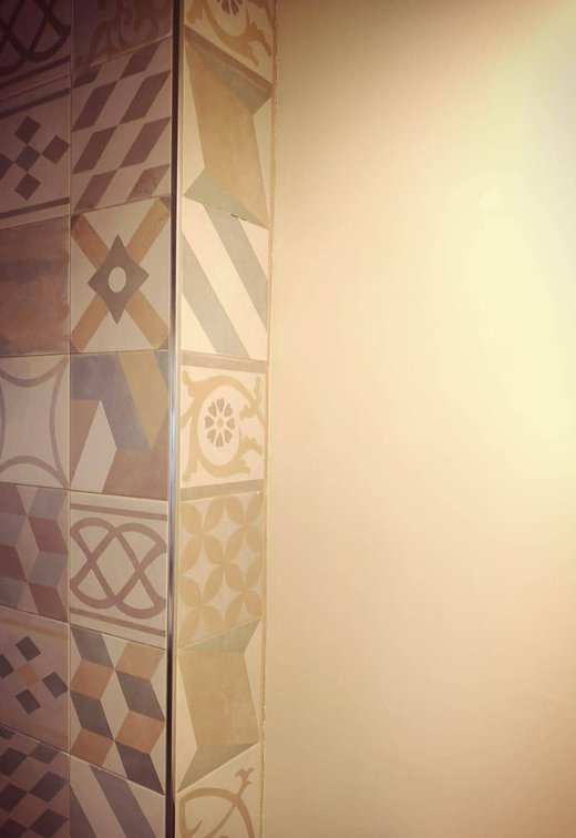 Ein junges, informelles und einladendes Bistrot, das perfekte Lokal, um unsere Zementfliesen Chalk 1741 unterzubringen. Die gipsartigen Farben und die originelle Dekormischung der neuen Kollektion von Marca Corona verleihen den Wänden im Hauptsaal einen frischen, ausgesuchten Akzent und schaffen dadurch eine fröhliche, entspannte Atmosphäre für die Gäste mit einer Vorliebe für den unverfälschten Geschmack.
