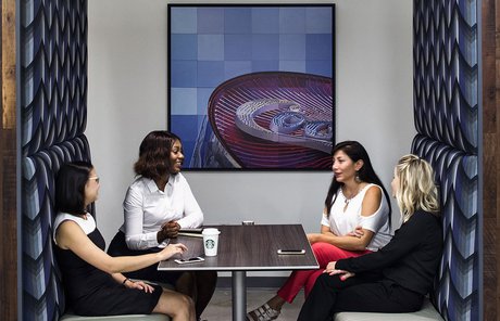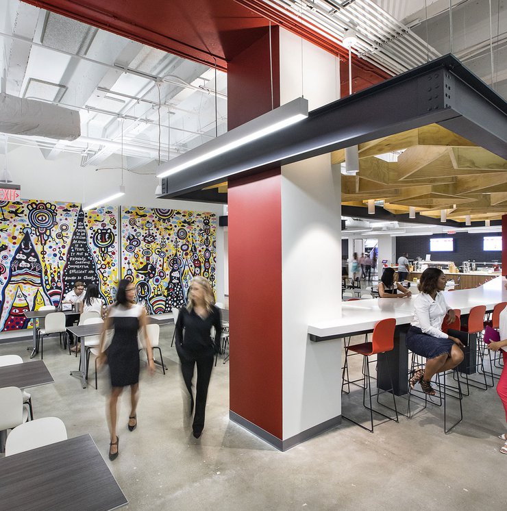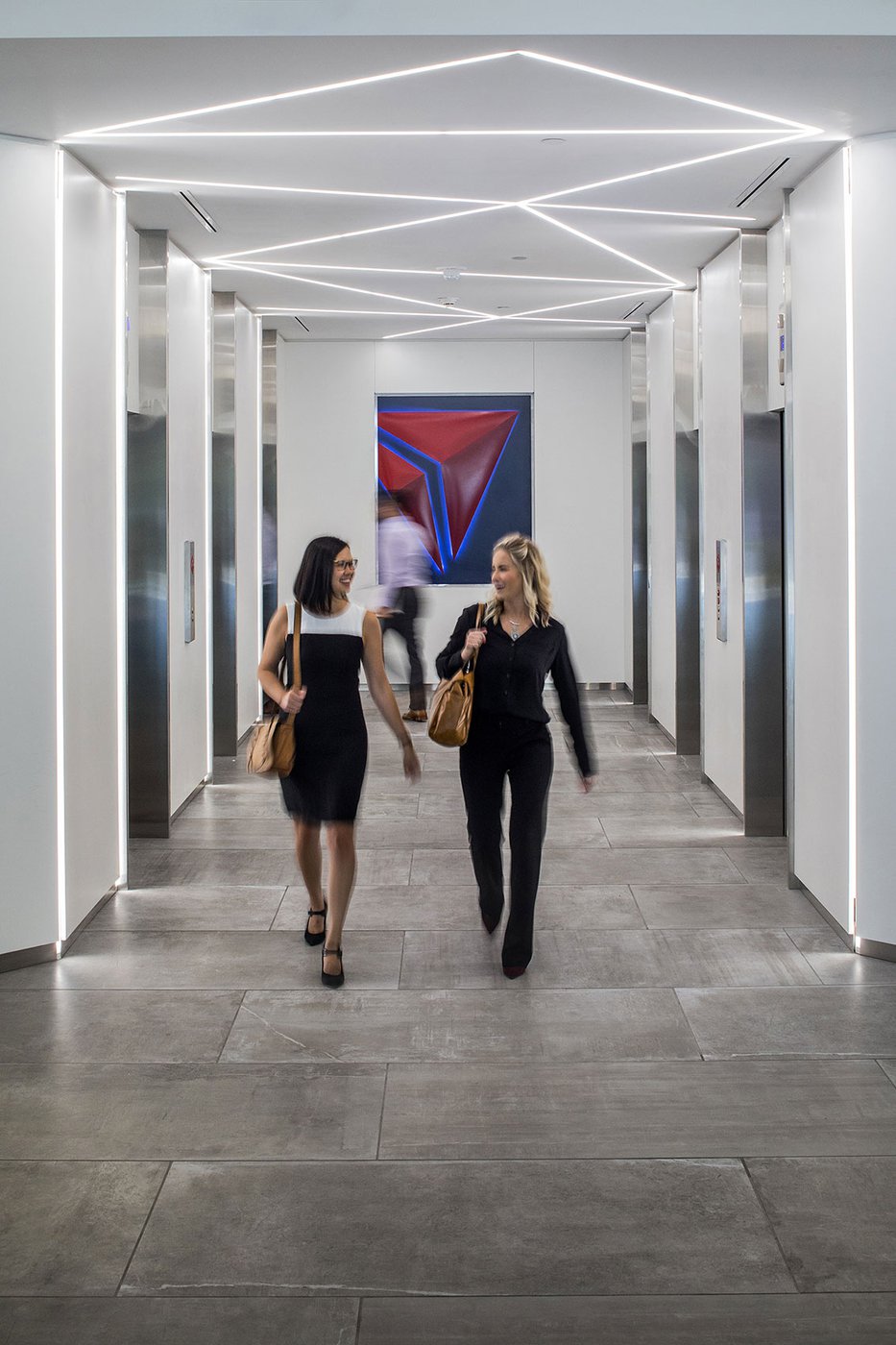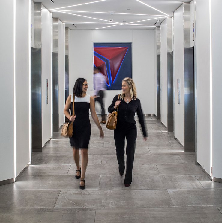 Für den neuen Hauptsitz von Delta Air Lines, der 2017 in Atlanta, Georgia, eingeweiht wurde, hat sich Studio Idea Span für die Kollektion Stone mit starkem Materialcharakter im Farbton Silber und im Format 75x150 cm entschieden: Dank der natürlichen Äderung und der authentischen Wirkung verleihen diese Bodenbeläge in Stein- und Zementoptik dem Eingang, den Büros, der Kantine, dem Fitnessstudio und den Gemeinschaftsräumen des neuen Hauptsitzes ein modernes und zwangloses Erscheinungsbild.