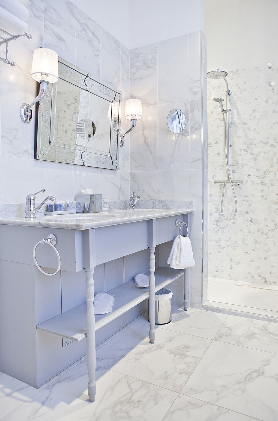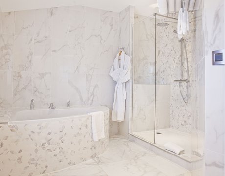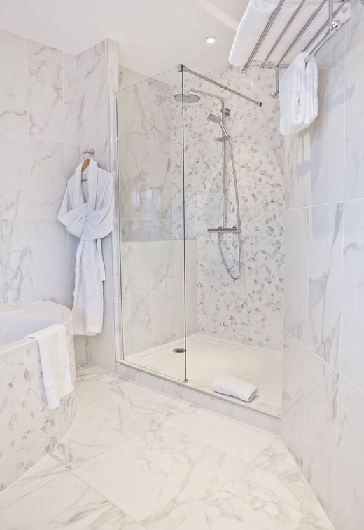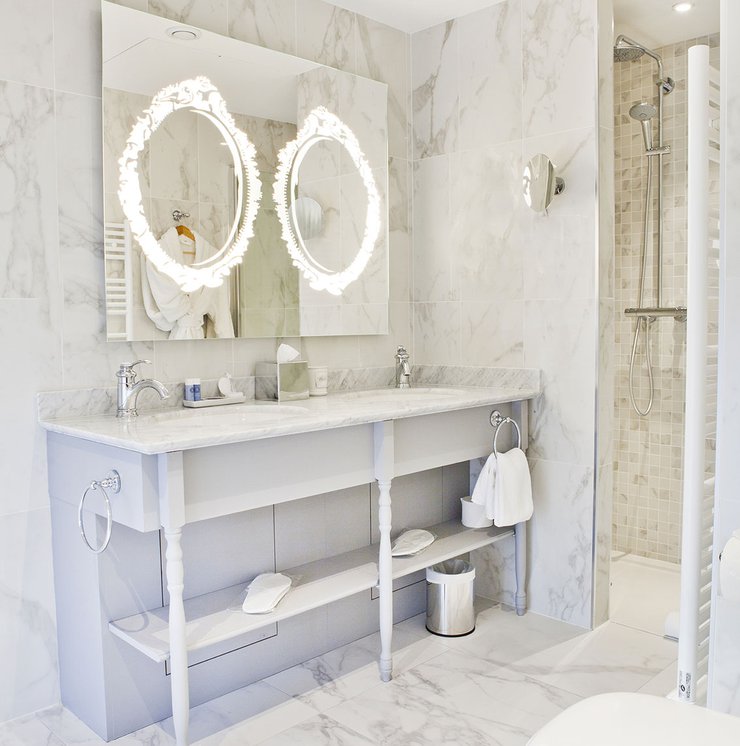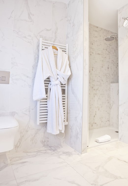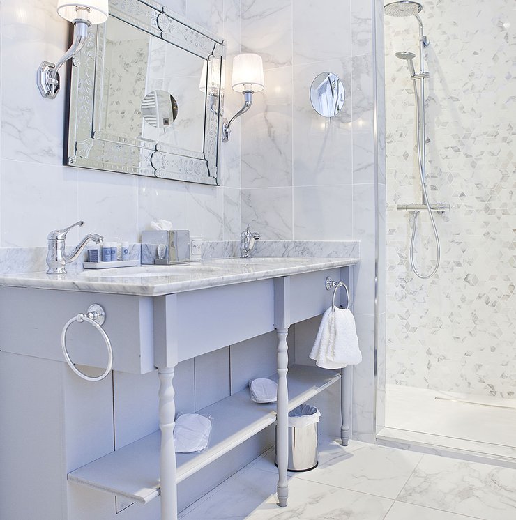 Für die Renovierung dieses alten Schlosses, das jetzt in ein luxuriöses Hotel und Restaurant umgewandelt wurde, hat das Ph2B Studio die raffinierte Kollektion Deluxe in Marmor-Optik ausgewählt. Das Hotel zeichnet sich durch luxuriösen weißen Marmor und exklusive Mosaike mit matter Oberfläche und in der Ausführung Reflex aus. Sie sind in allen 17 Suiten zu finden: sowohl als Bodenbelag als auch als Wandfliesen. Die Kollektion Deluxe in Marmoroptik schmückt die großen und freundlichen privaten Bäder mit einer Gesamtfläche von fast 1200 Quadratmetern.
