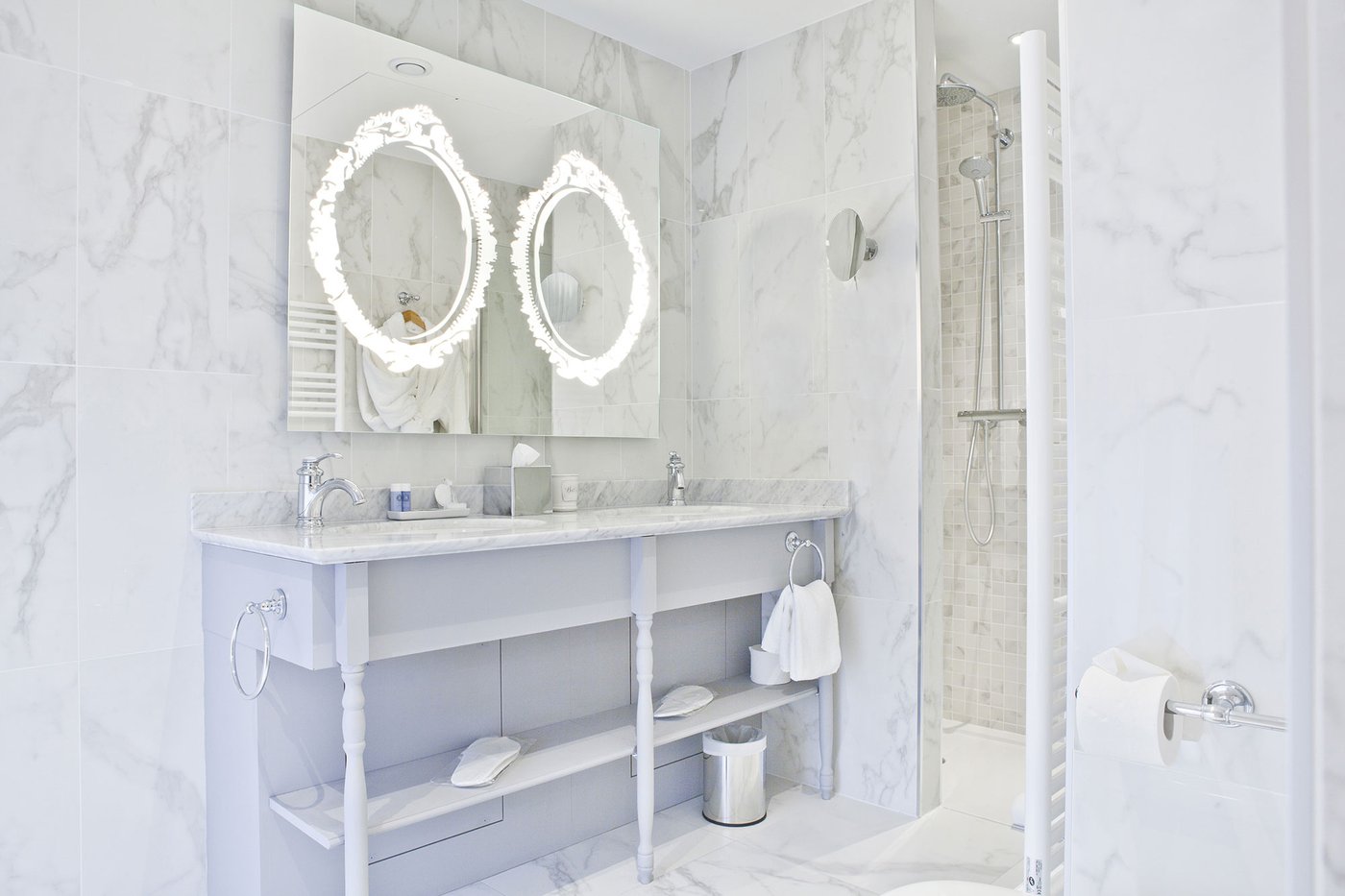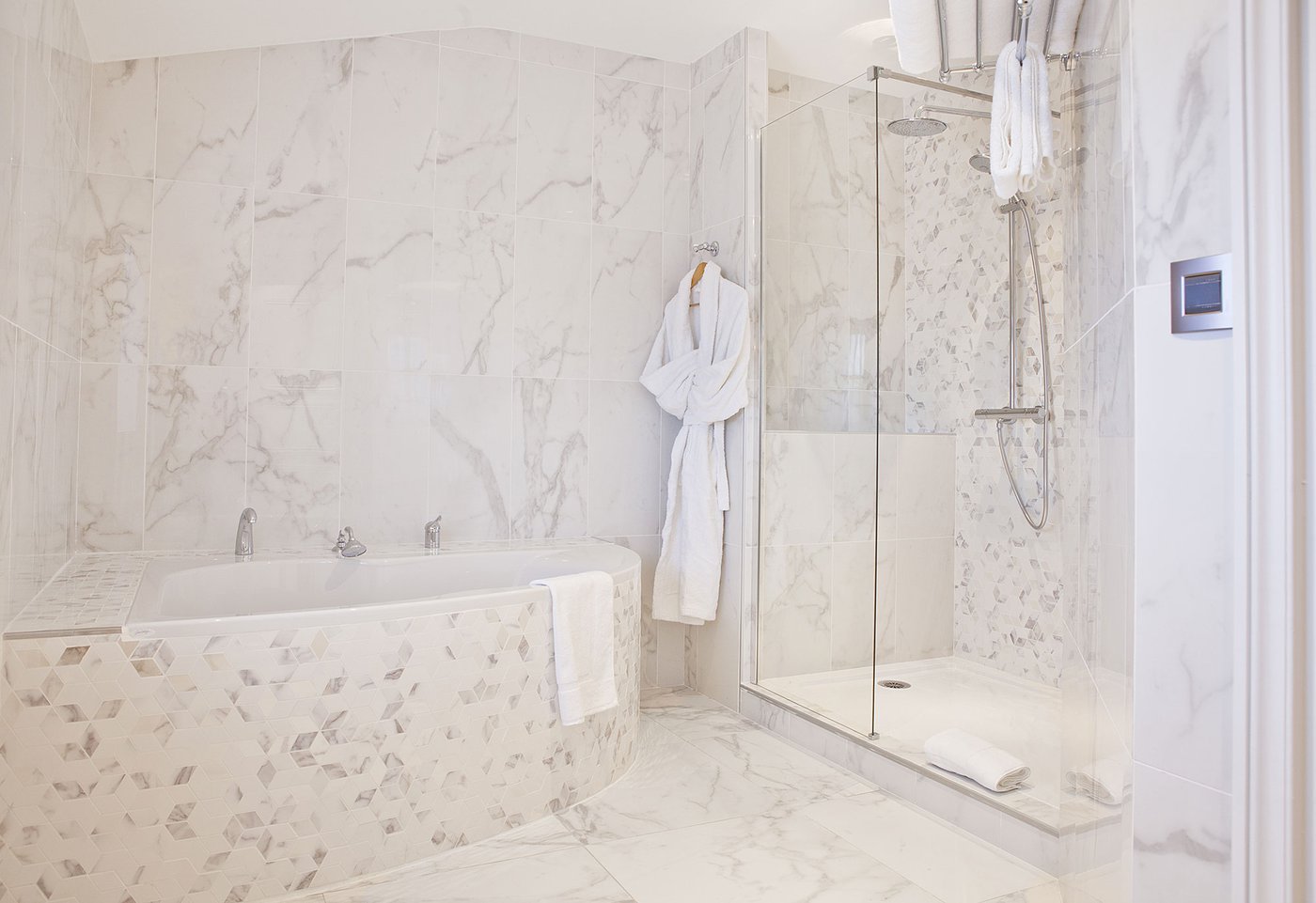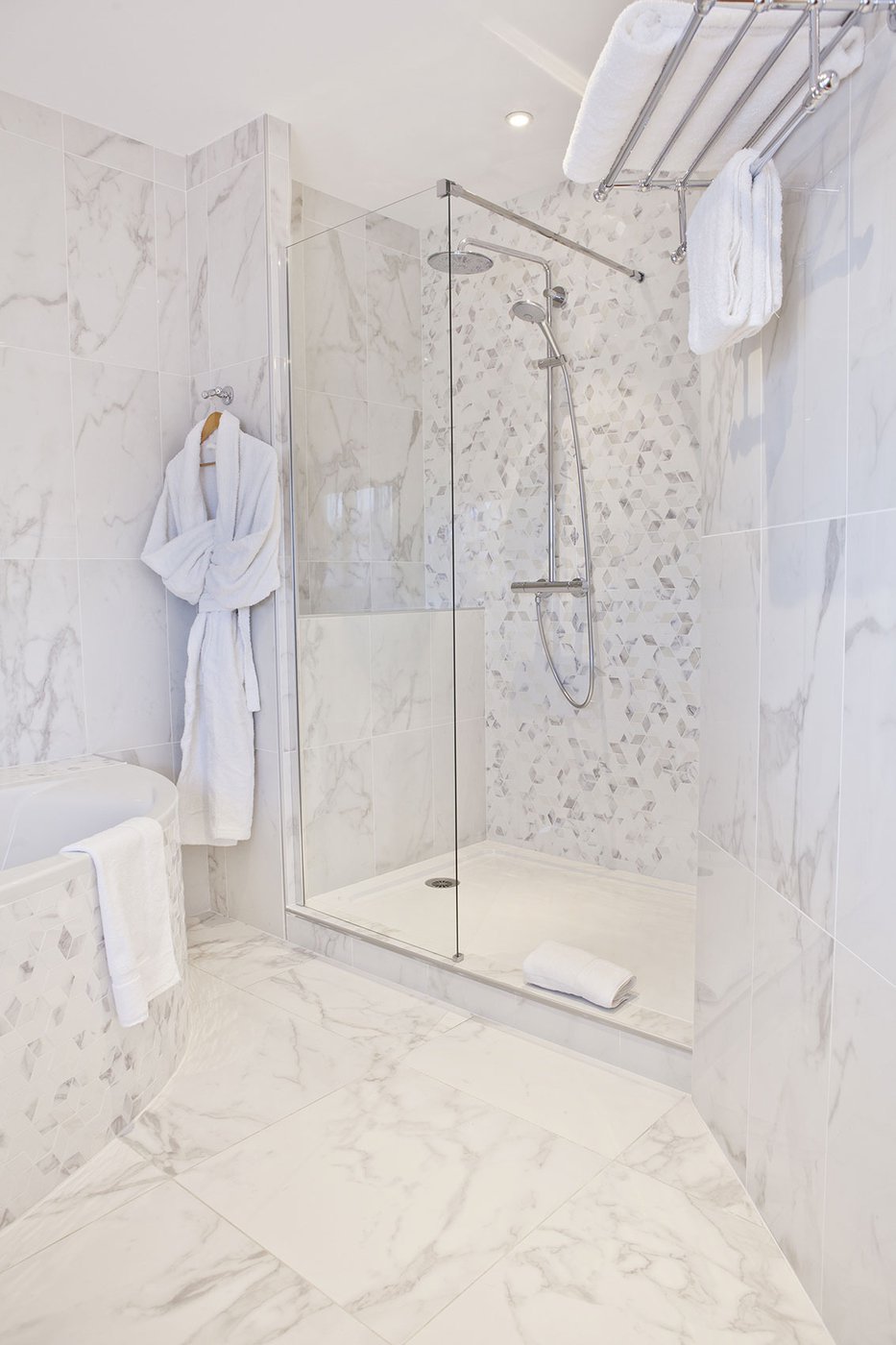 Für die Renovierung dieses alten Schlosses, das jetzt in ein luxuriöses Hotel und Restaurant umgewandelt wurde, hat das Ph2B Studio die raffinierte Kollektion Deluxe in Marmor-Optik ausgewählt. Das Hotel zeichnet sich durch luxuriösen weißen Marmor und exklusive Mosaike mit matter Oberfläche und in der Ausführung Reflex aus. Sie sind in allen 17 Suiten zu finden: sowohl als Bodenbelag als auch als Wandfliesen. Die Kollektion Deluxe in Marmoroptik schmückt die großen und freundlichen privaten Bäder mit einer Gesamtfläche von fast 1200 Quadratmetern.