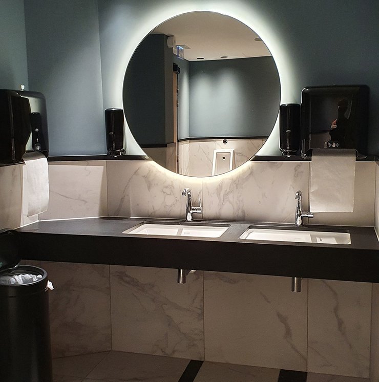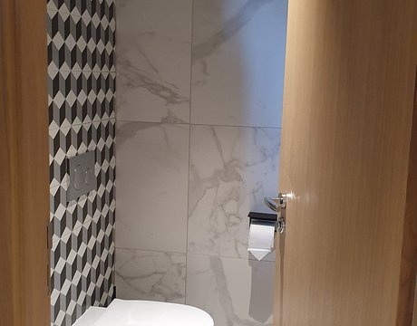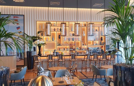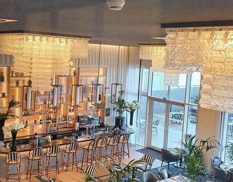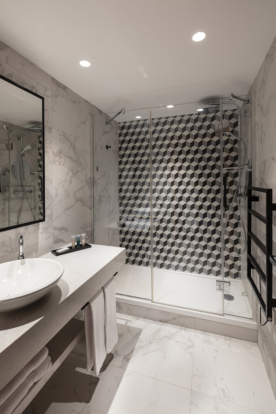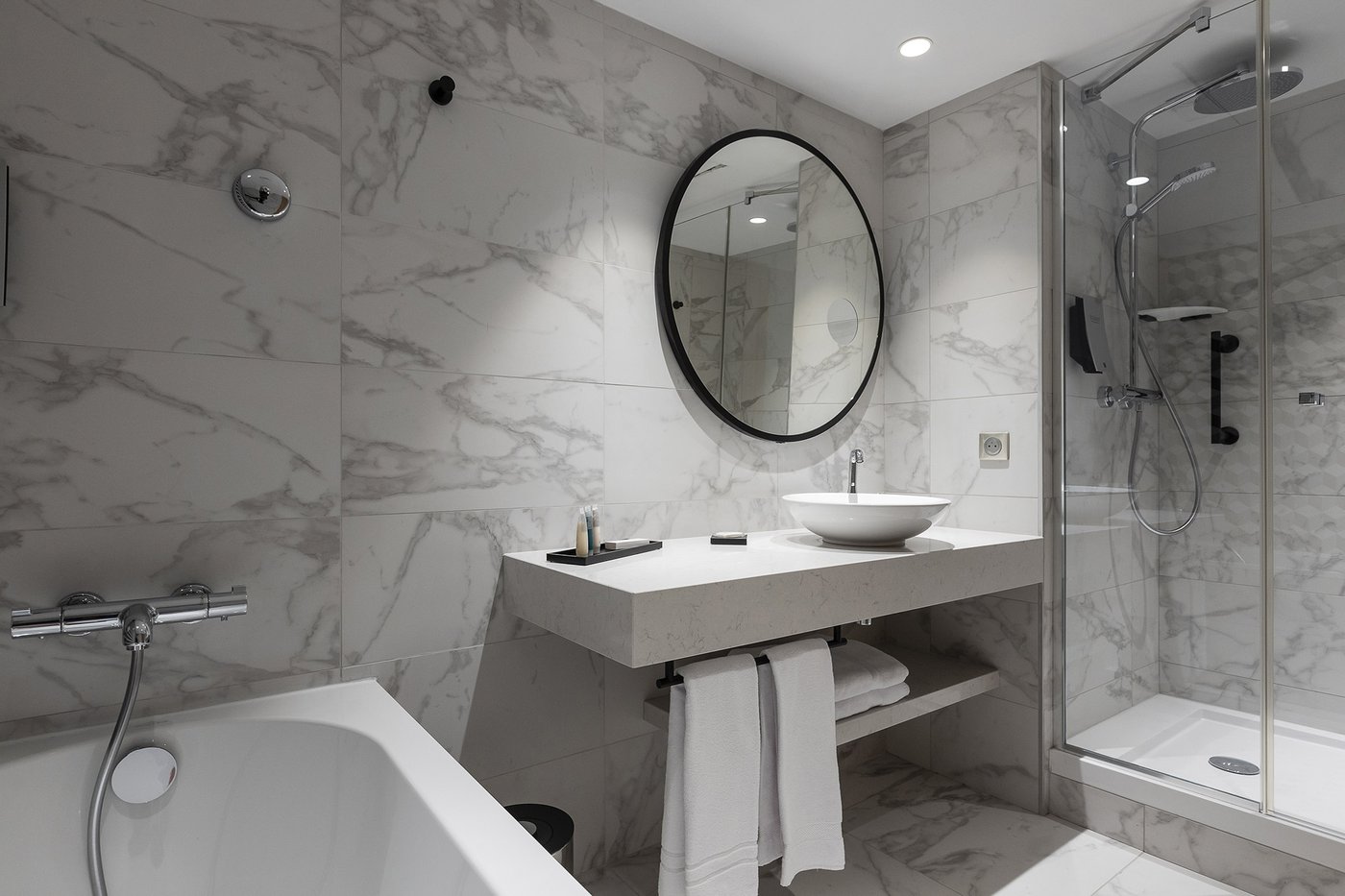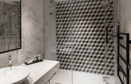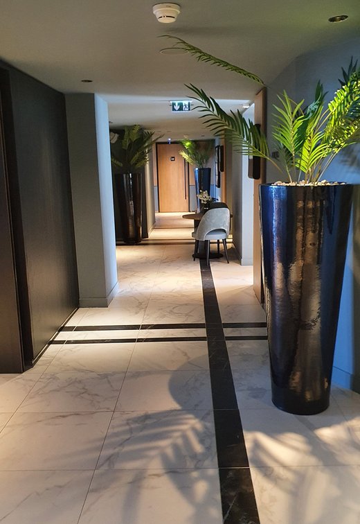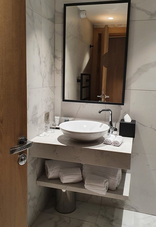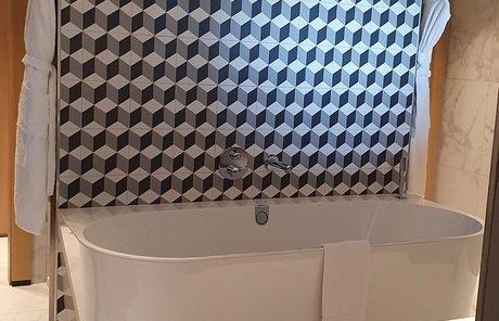 Um den Räumen Glanz und einen Hauch von Glamour zu verleihen, wurden die Feinsteinzeugserie Deluxe, eine Hommage an den luxuriösesten und eklektischsten Marmor, und Motif Extra, eine erhabene Neuinterpretation des Calacatta-Marmors, ausgewählt. Beide Kollektionen wurden an den Wänden und auf den Böden der Zimmer, im exklusiven Restaurant und in den Massagekabinen des Thalasso-Spa verlegt, wobei originelle Strukturteppiche und echte Design-Ecken entstanden sind: eine auffällige und zugleich unglaublich wirksame Lösung, die jede stilistische Entscheidung unterstreicht und die Wahrnehmung von Licht und Raum vervielfacht, ohne dabei die glamouröse und opulente Ausstrahlung zu verlieren.