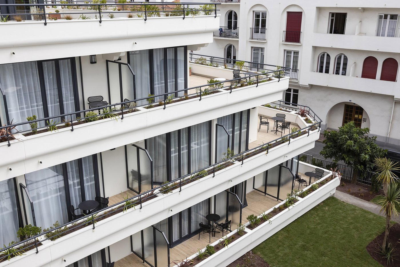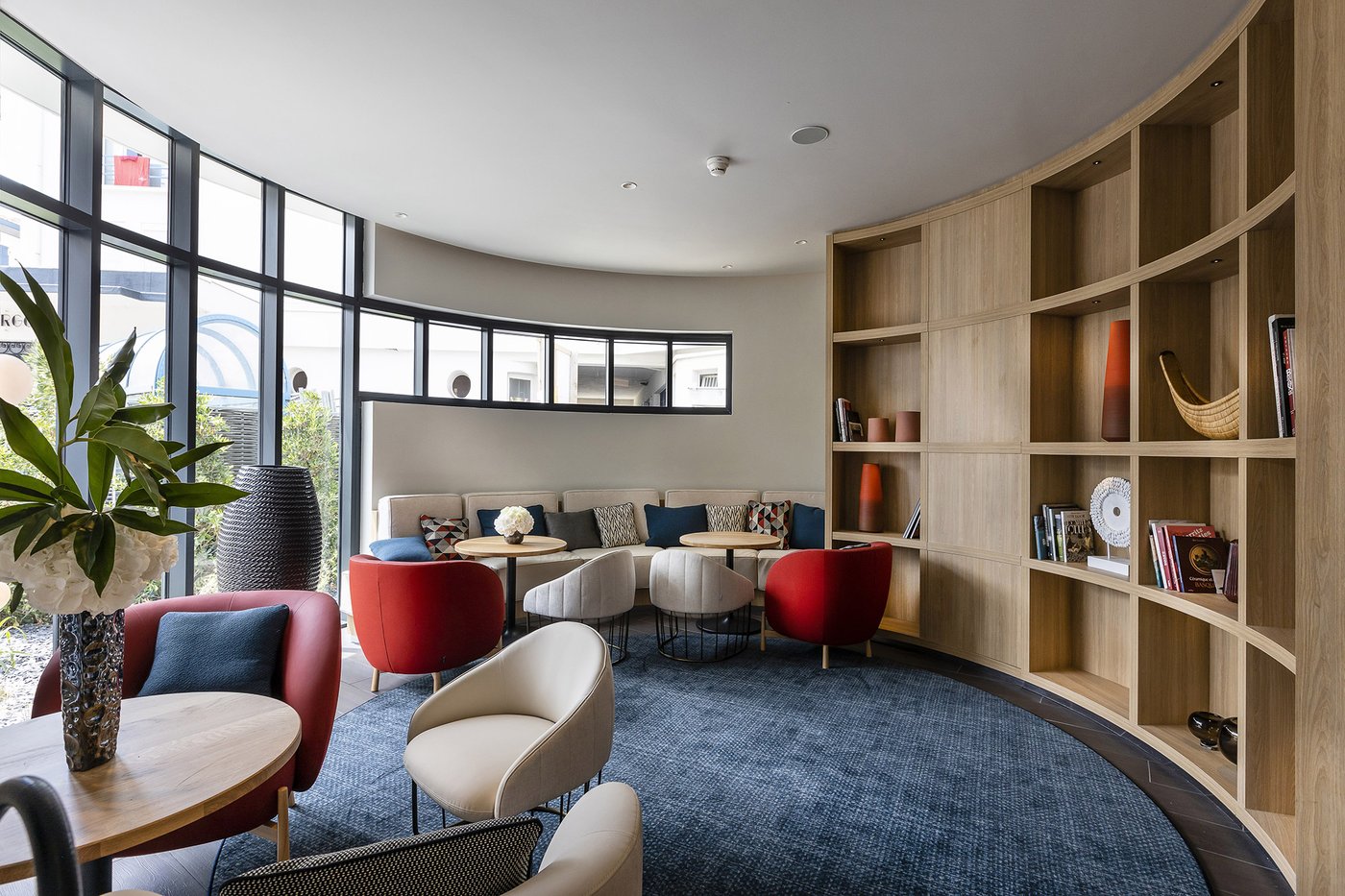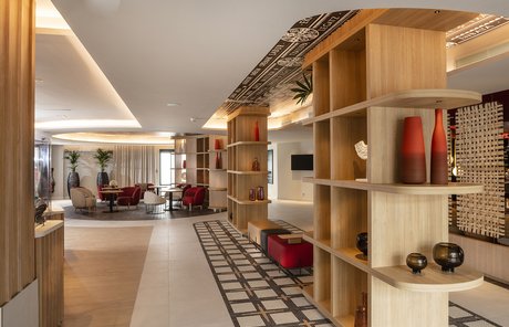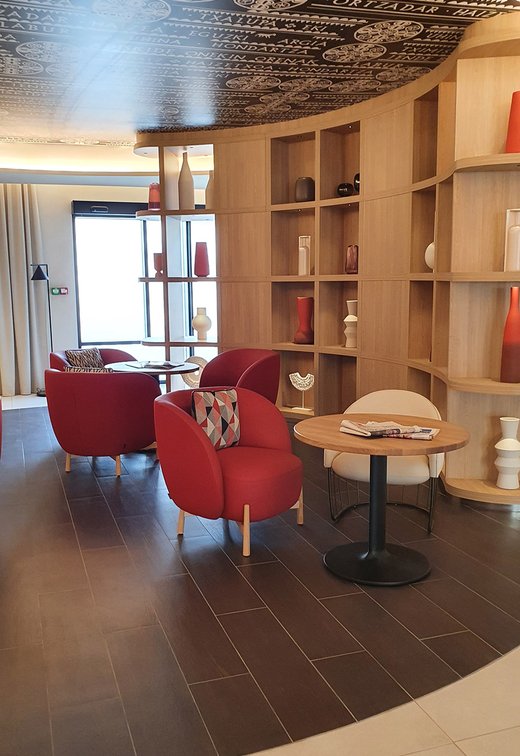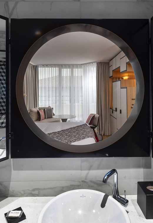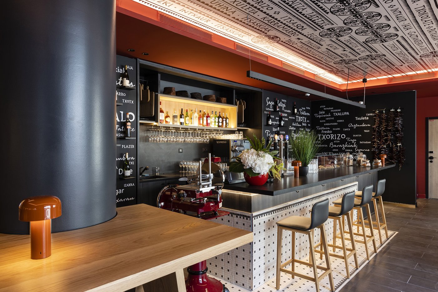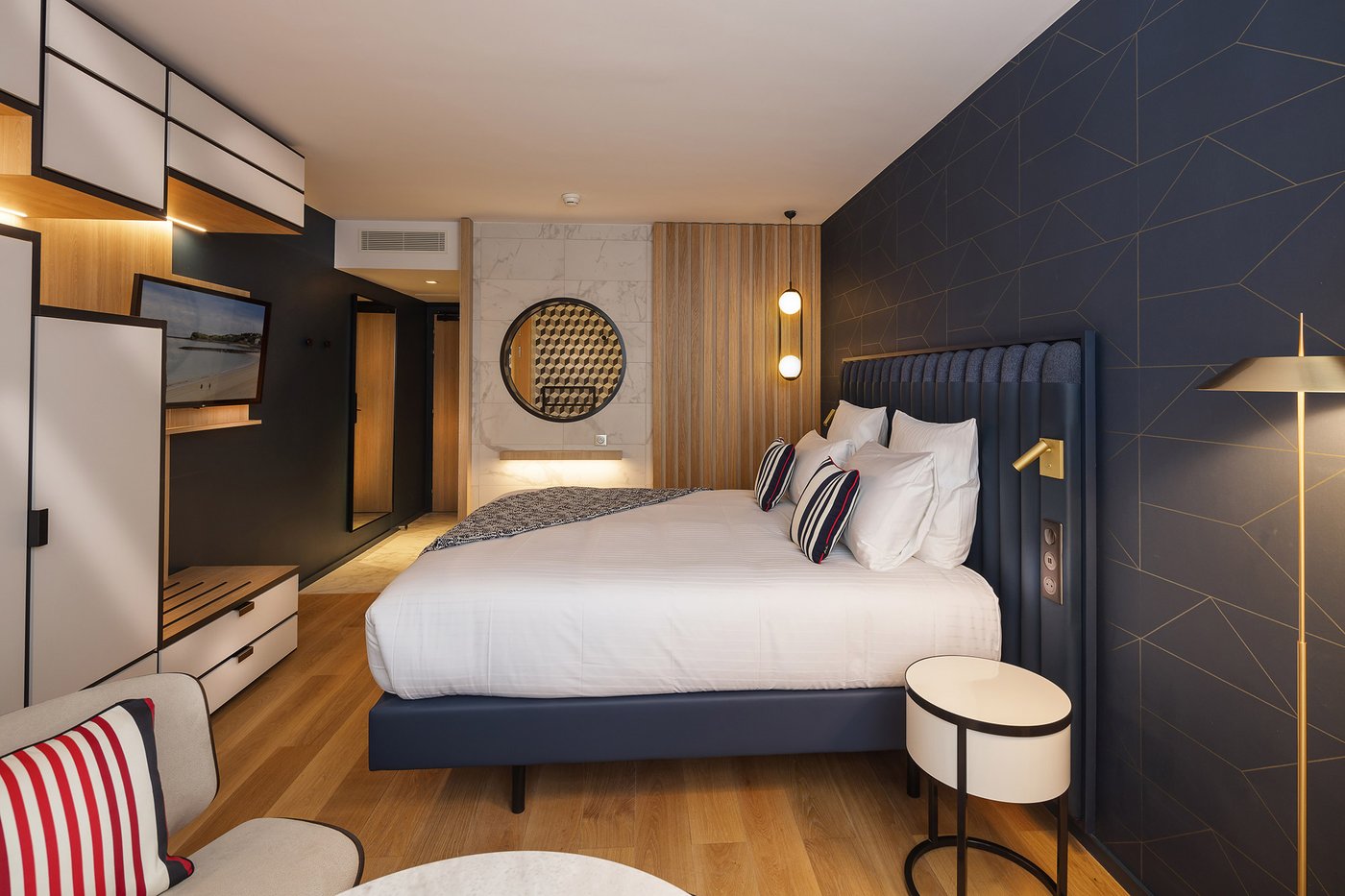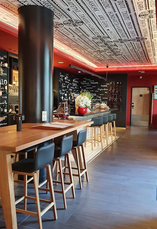 Die Wette wurde sozusagen gewonnen, um es vorsichtig auszudrücken! Die baskische Identität und die Art-Déco-Kontaminationen des Gebäudes werden in den Gemeinschaftsbereichen und den 106 Zimmern des Hotels durch die Wahl von emblematischen Elementen wie die Farben der Region (rot und blau) und der Präsenz von Gegenständen und Dekorationen aus dem lokalen Kunsthandwerk respektiert und aufgewertet. Eklektische, designorientierte Möbel wurden mit Oberflächen und Verarbeitungen von zeitloser Eleganz und Exklusivität kombiniert, die mit natürlichen, von der Umwelt inspirierten Materialien kombiniert wurden.