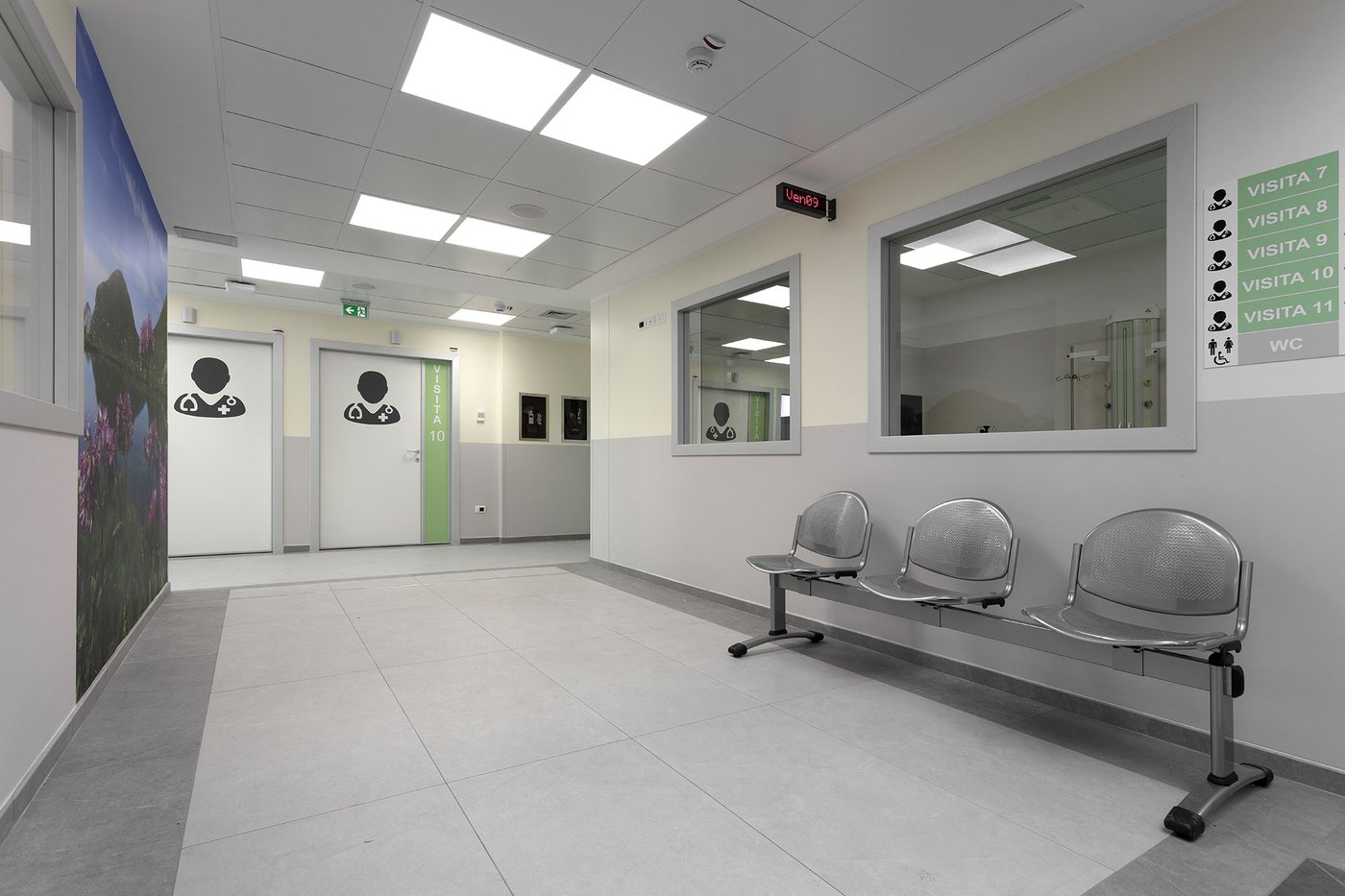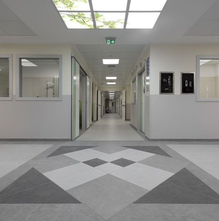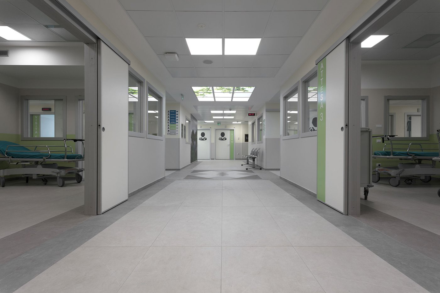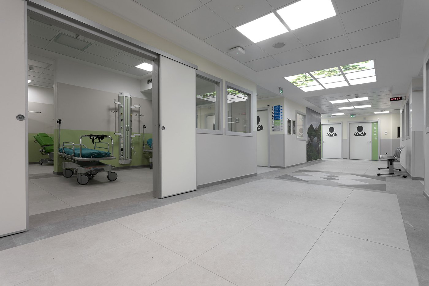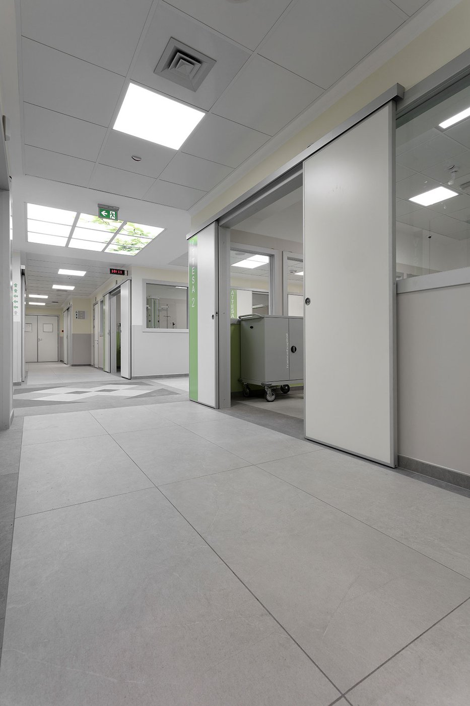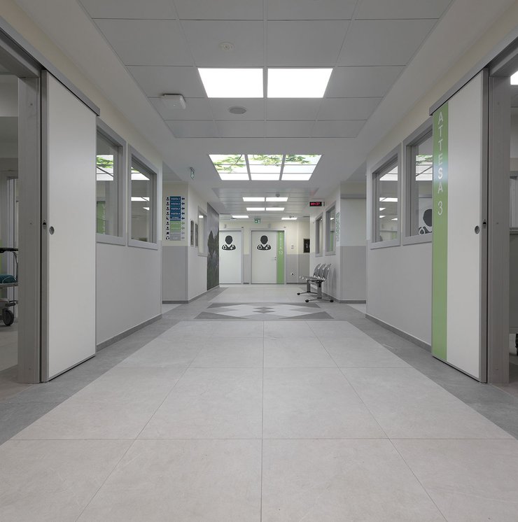 Für das ehrgeizige Projekt zur Erweiterung der Notaufnahme des Krankenhauses San Paolo in Mailand wurden die Keramikprodukte von Marca Corona gewählt – Fußböden und Verkleidungen aus Feinsteinzeug, die in der Lage sind, ein Maximum an Sicherheit, Hygiene, Widerstandsfähigkeit und Reinigungsfreundlichkeit zu gewährleisten. Der neue Flügel des Krankenhauses wurde nach den Grundsätzen der optimalen Aufnahme, leichten Orientierung und Sicherheit der Patienten geplant. Die Einrichtung besteht aus einem großen Empfangsraum, 9 Untersuchungsräumen, 2 Operationsräumen, 1 Strahlenschutzraum, etlichen überwachten Wartesälen mit Krankenbahren, WC-Anlagen und Räumlichkeiten für die medizinische Unterstützung und administrative Verwaltung wie die Zimmer der Krankenpfleger, Lagerräume, Büros, Archive und ein Verpflegungsbereich.