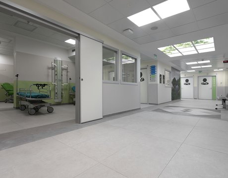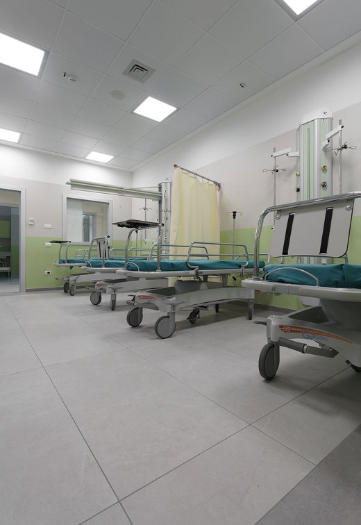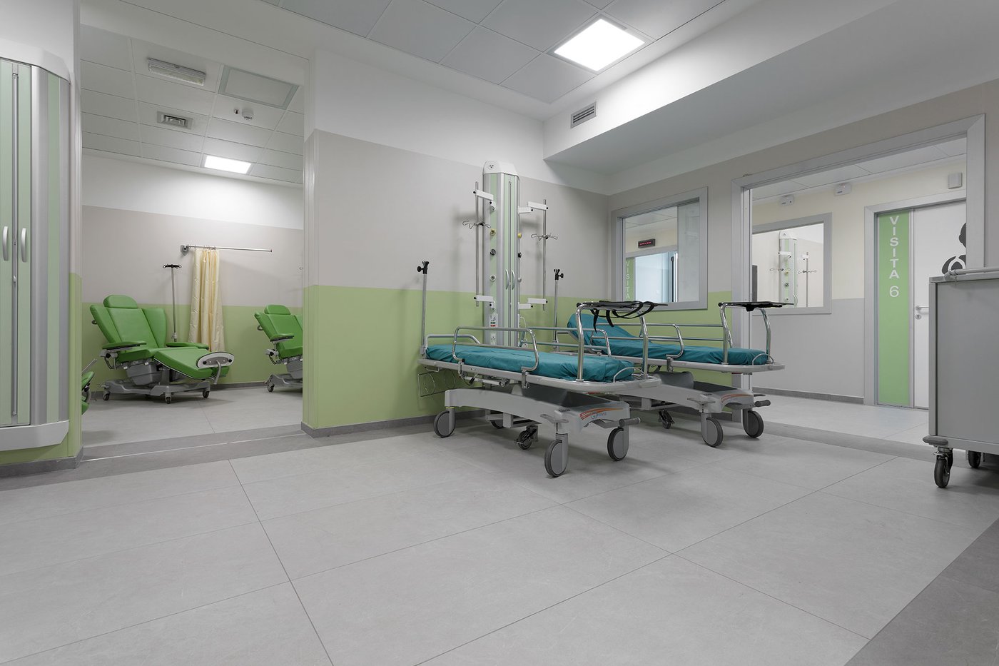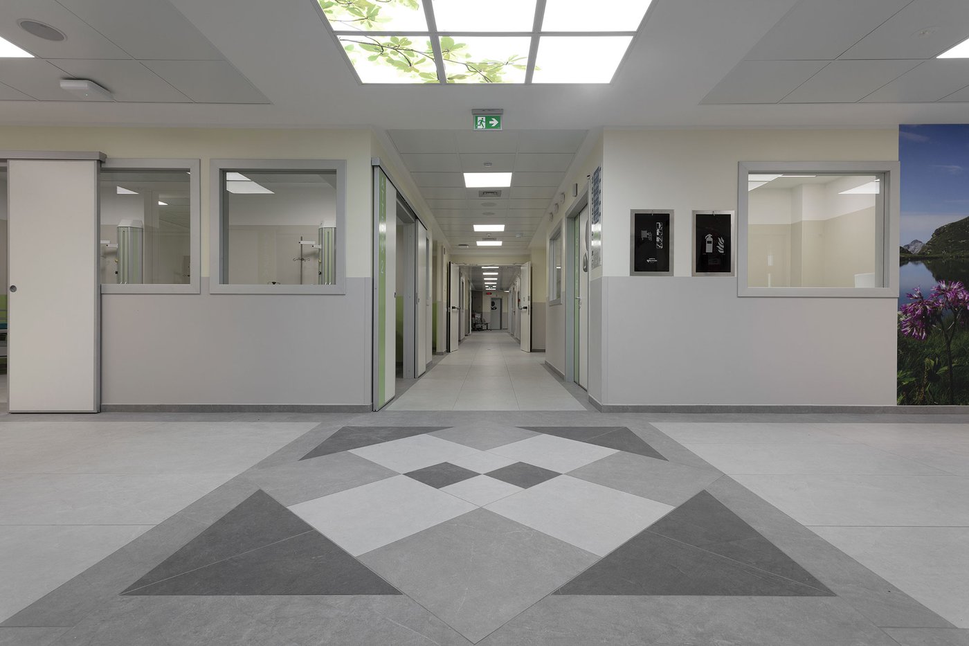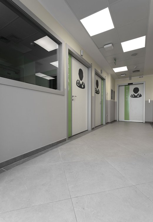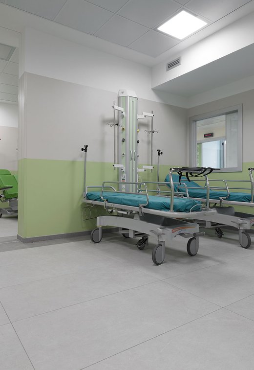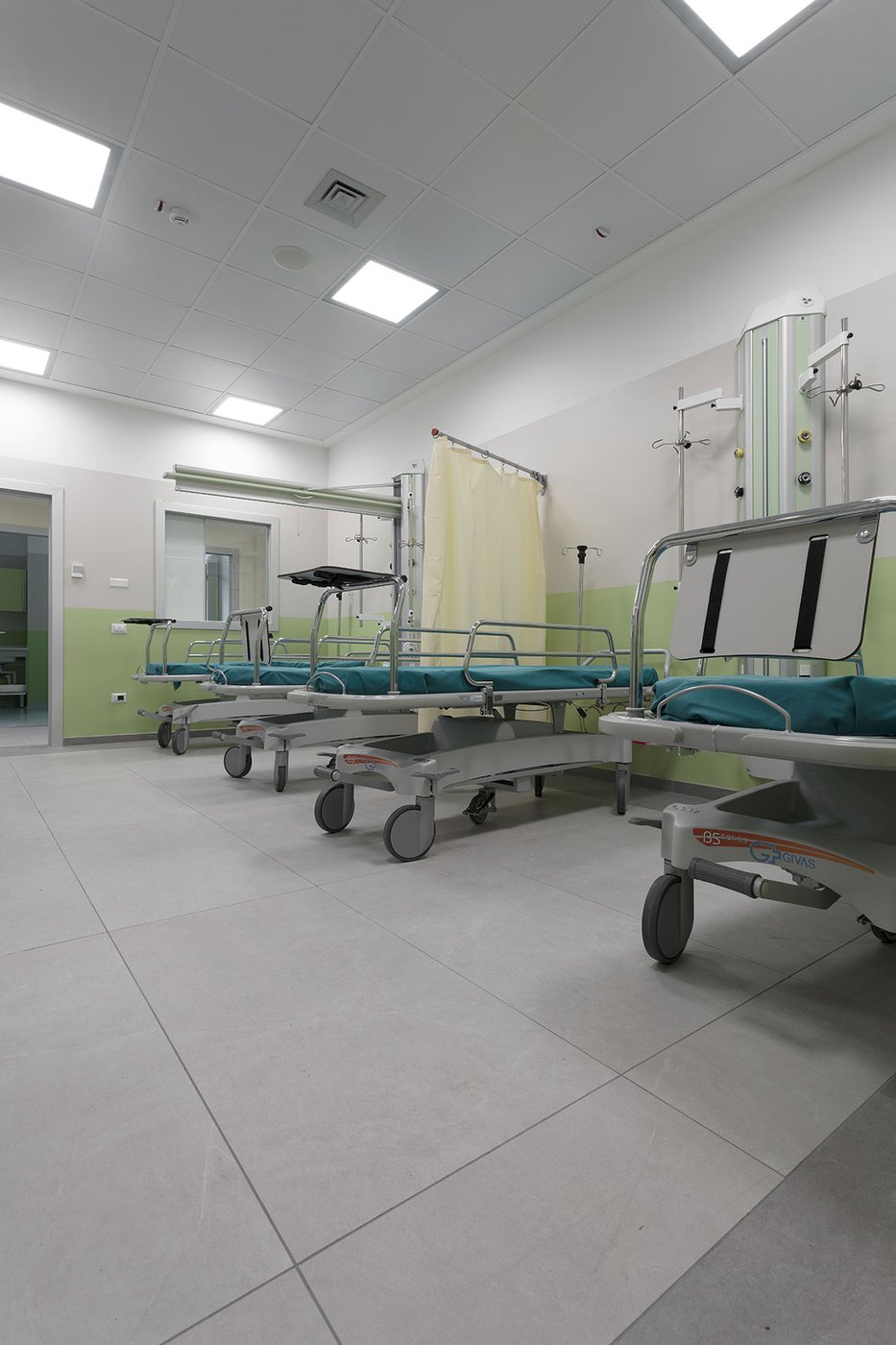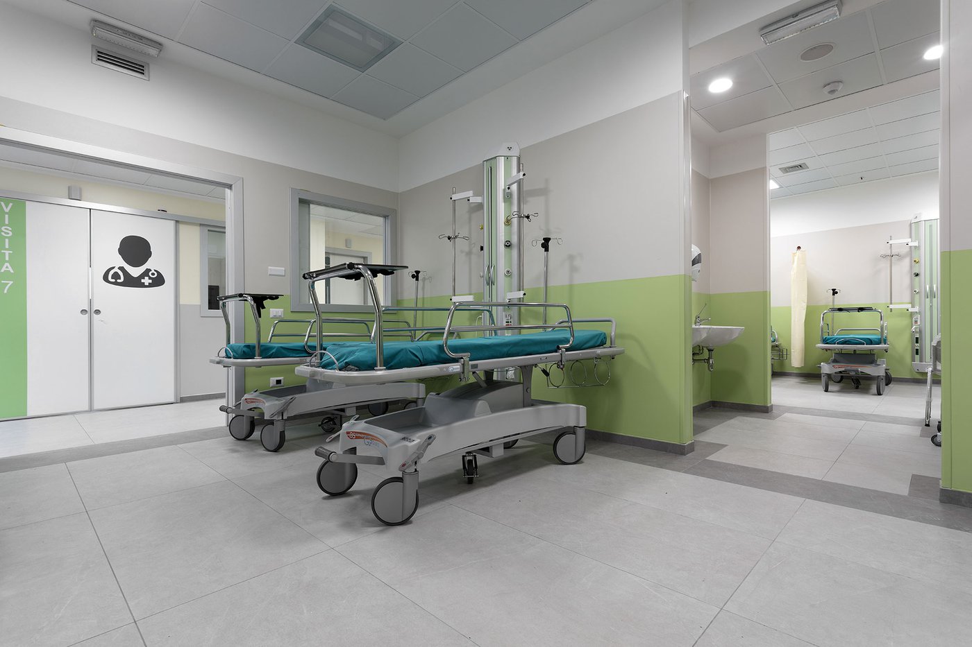 Für das ehrgeizige Projekt zur Erweiterung der Notaufnahme des Krankenhauses San Paolo in Mailand wurden die Keramikprodukte von Marca Corona gewählt – Fußböden und Verkleidungen aus Feinsteinzeug, die in der Lage sind, ein Maximum an Sicherheit, Hygiene, Widerstandsfähigkeit und Reinigungsfreundlichkeit zu gewährleisten. Der neue Flügel des Krankenhauses wurde nach den Grundsätzen der optimalen Aufnahme, leichten Orientierung und Sicherheit der Patienten geplant. Die Einrichtung besteht aus einem großen Empfangsraum, 9 Untersuchungsräumen, 2 Operationsräumen, 1 Strahlenschutzraum, etlichen überwachten Wartesälen mit Krankenbahren, WC-Anlagen und Räumlichkeiten für die medizinische Unterstützung und administrative Verwaltung wie die Zimmer der Krankenpfleger, Lagerräume, Büros, Archive und ein Verpflegungsbereich.