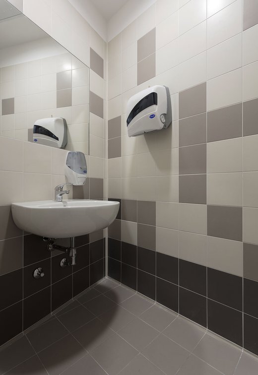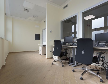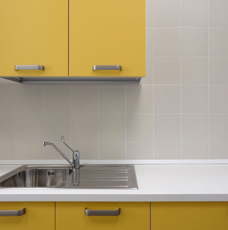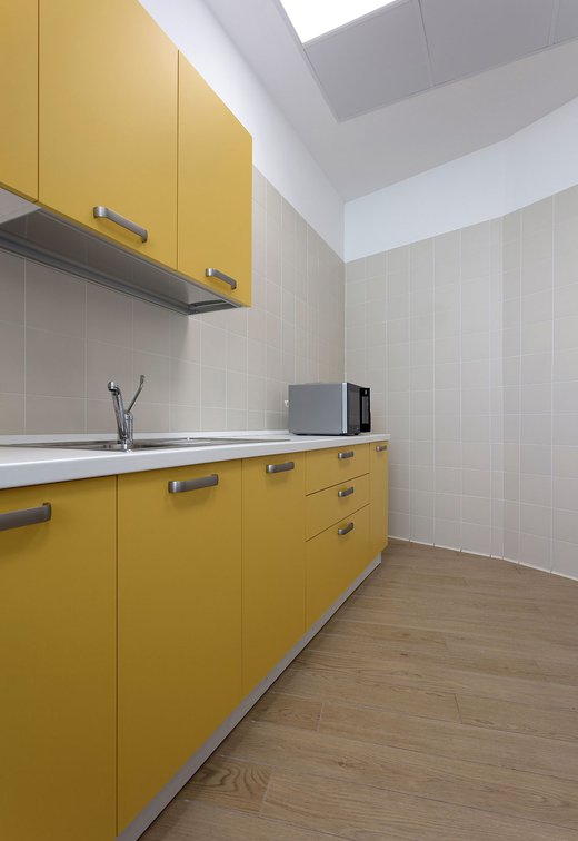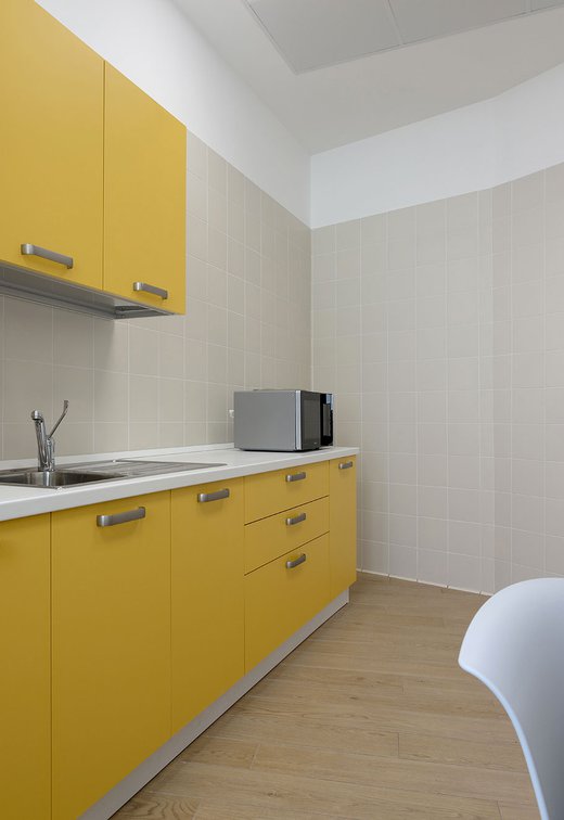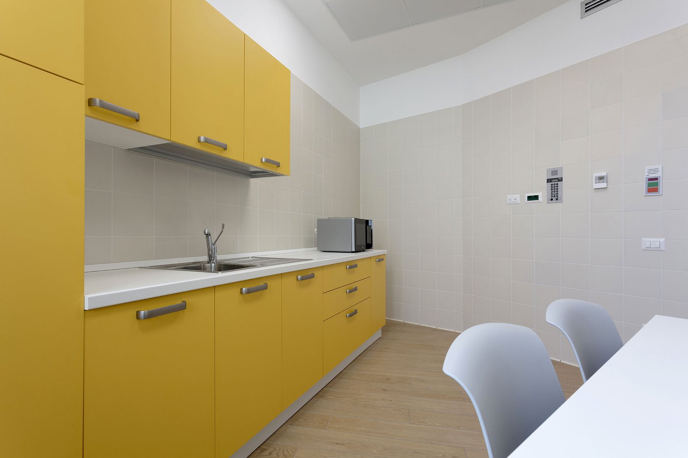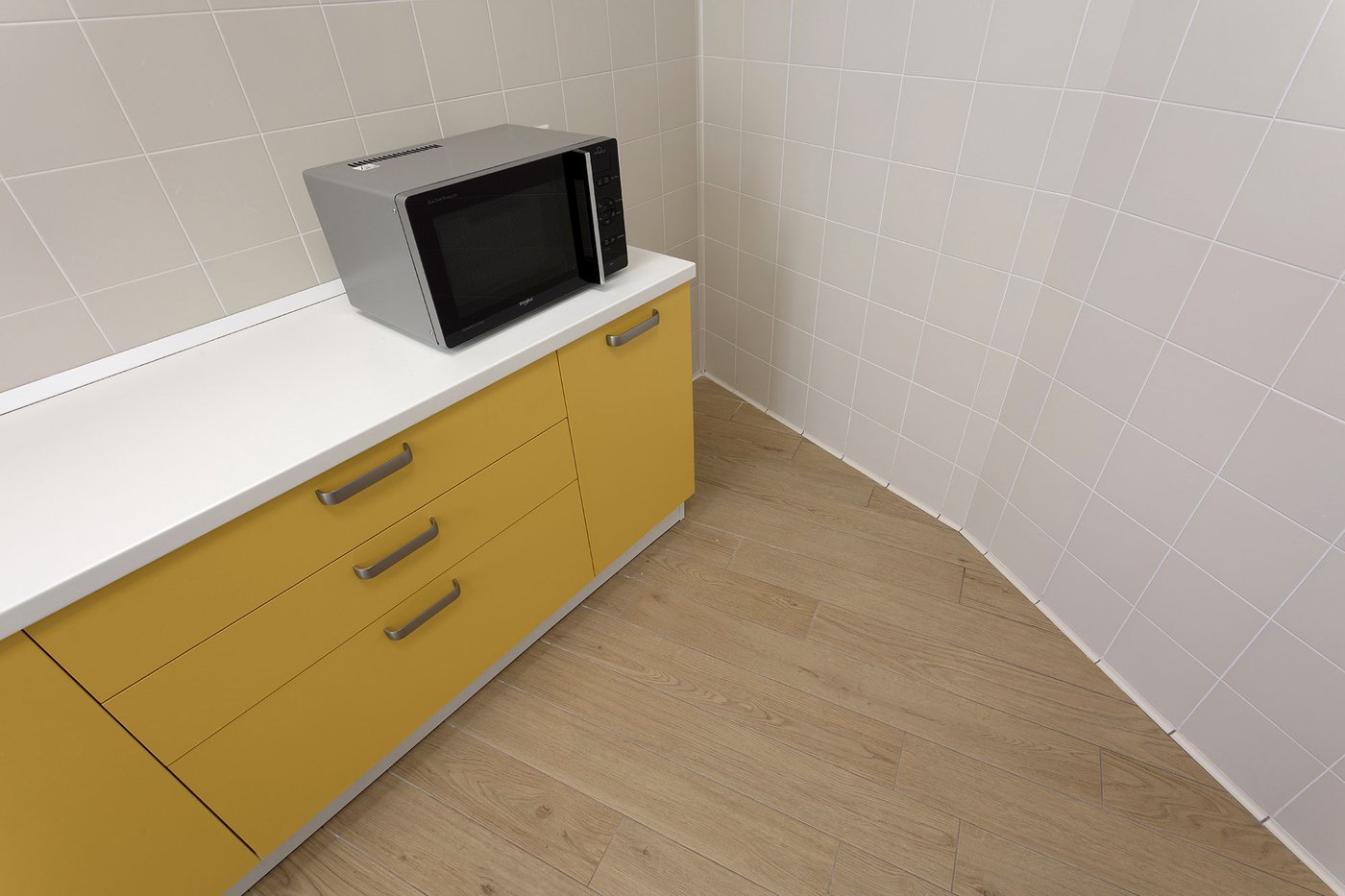 Die 3 gewählten Kollektionen von Marca Corona sind in allen Räumen der neuen Notfallabteilung zu finden. Die Fußböden mit Steinoptik von Arkistone sorgen im Empfangsbereich, den Gängen, Wartesälen und allen Behandlungsräumen der Patienten für ein angenehmes Spiel mit den Geometrien und der Farbe. In den für das Personal gedachten Räumen wie den Büros und der Küche hingegen wurden die Fußböden mit Holzoptik Lagom und die Verkleidungen Color Mix verlegt, die in warmen, neutralen Farbtönen gewählt wurden, um ein Gefühl der Intimität und Unbeschwertheit zu vermitteln. Die Toiletten zeichnen sich hingegen durch die in originellen Farbkombinationen vorgeschlagenen Fußböden und Verkleidungen Color Mix aus.