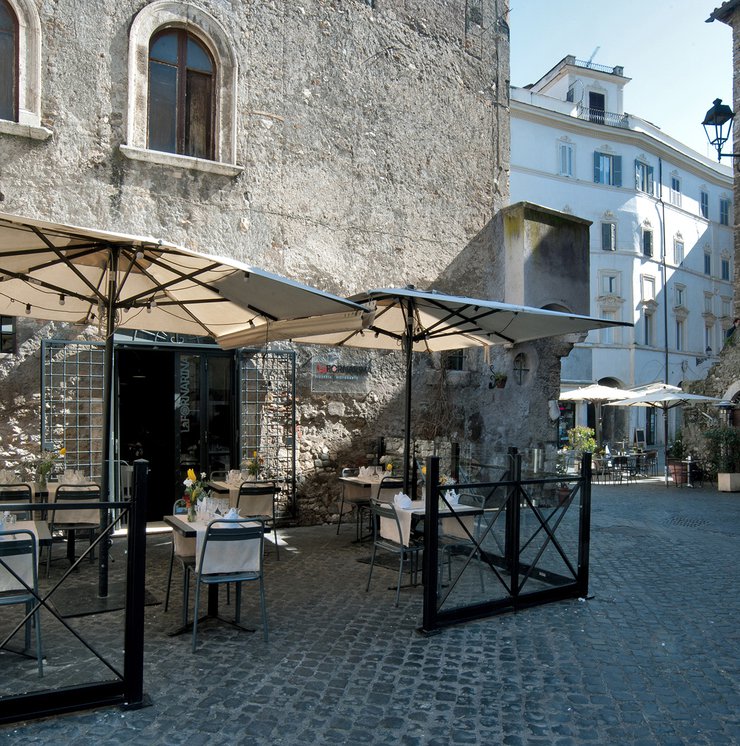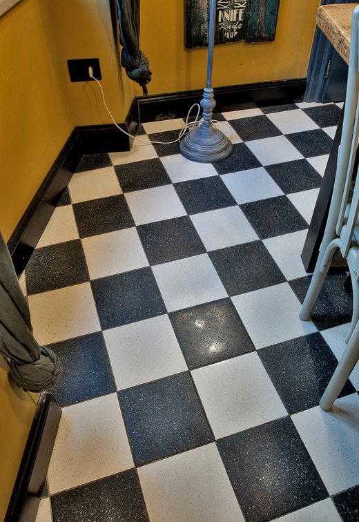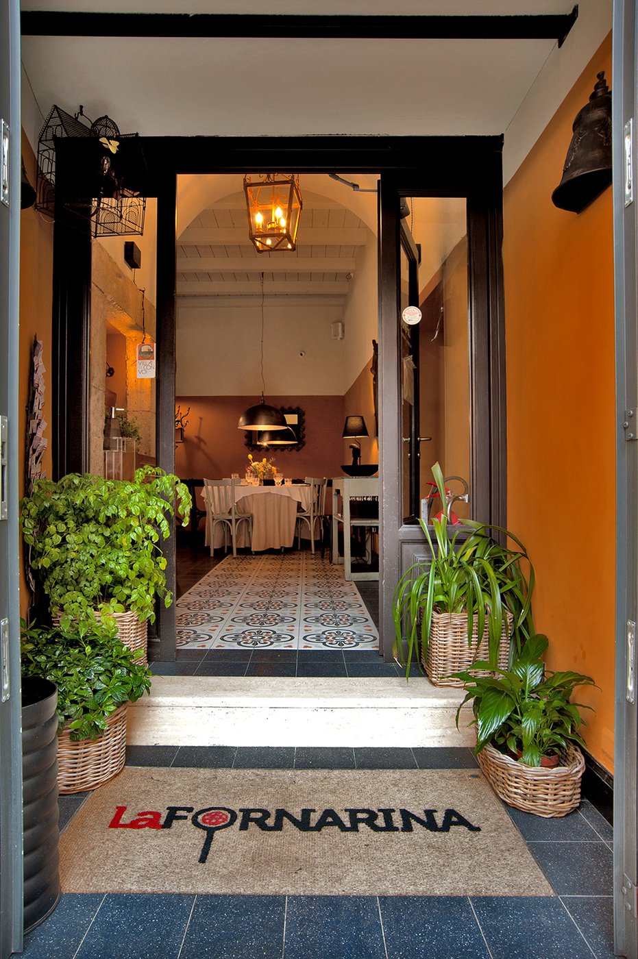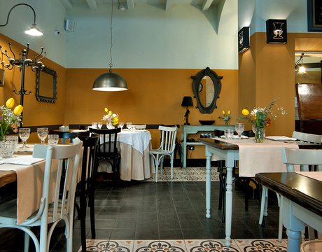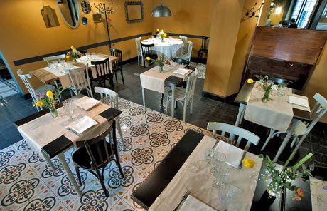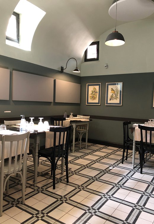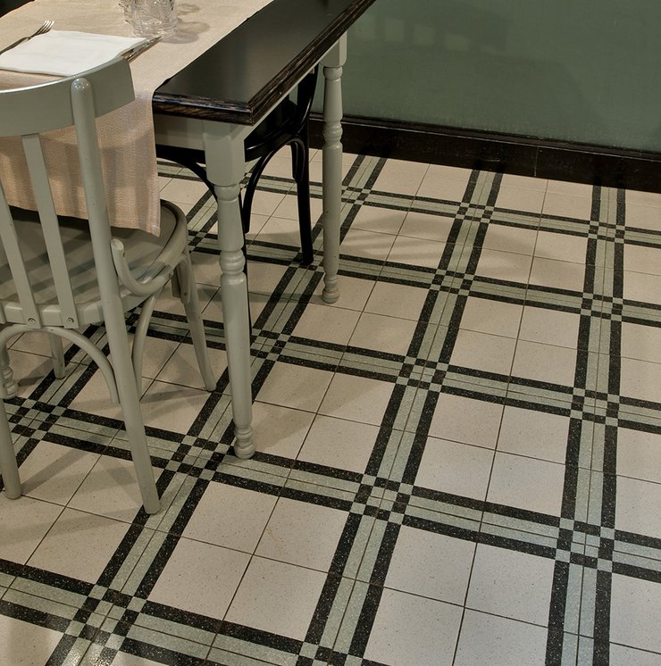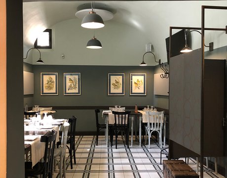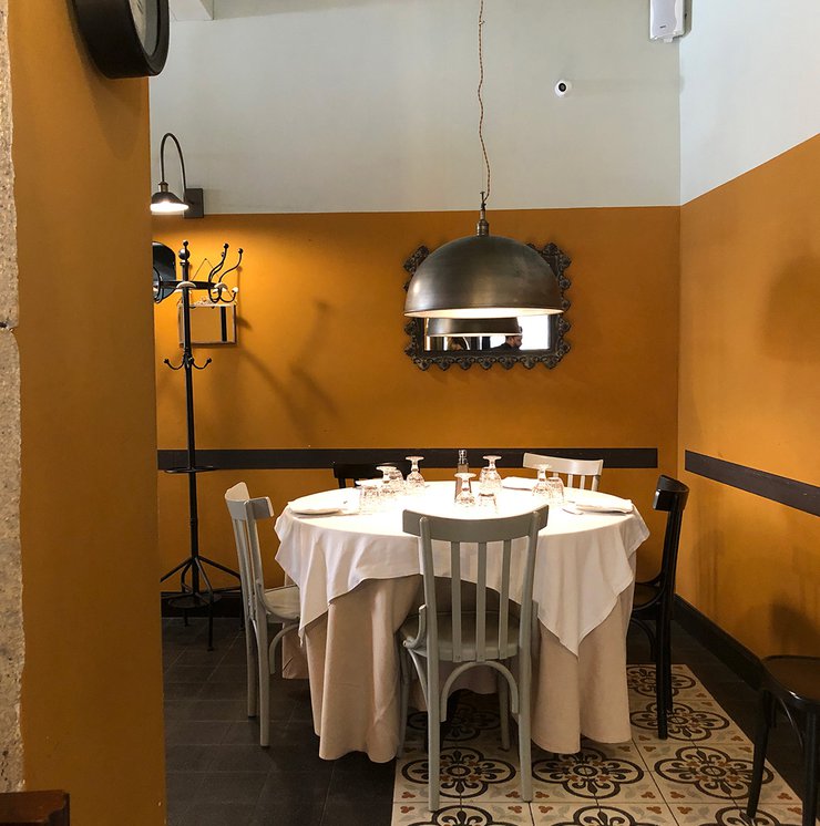 Um dieses Restaurant im Zentrum von Tivoli mit einem intimen Retrocharakter zu prägen, wurden die Zementfliesen mit Terrazzo-Optik von Forme gewählt. Die Fußböden und Verkleidungen aus Feinsteinzeug von Marca Corona geben zweifellos den Ton in diesem raffinierten Lokal an: Sie empfangen die Gäste bereits beim Eingang und begleiten sie in die verschiedenen Säle, in den Tresen- und Ofenbereich bis hin zu den Toiletten.