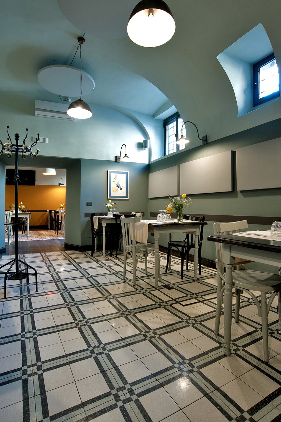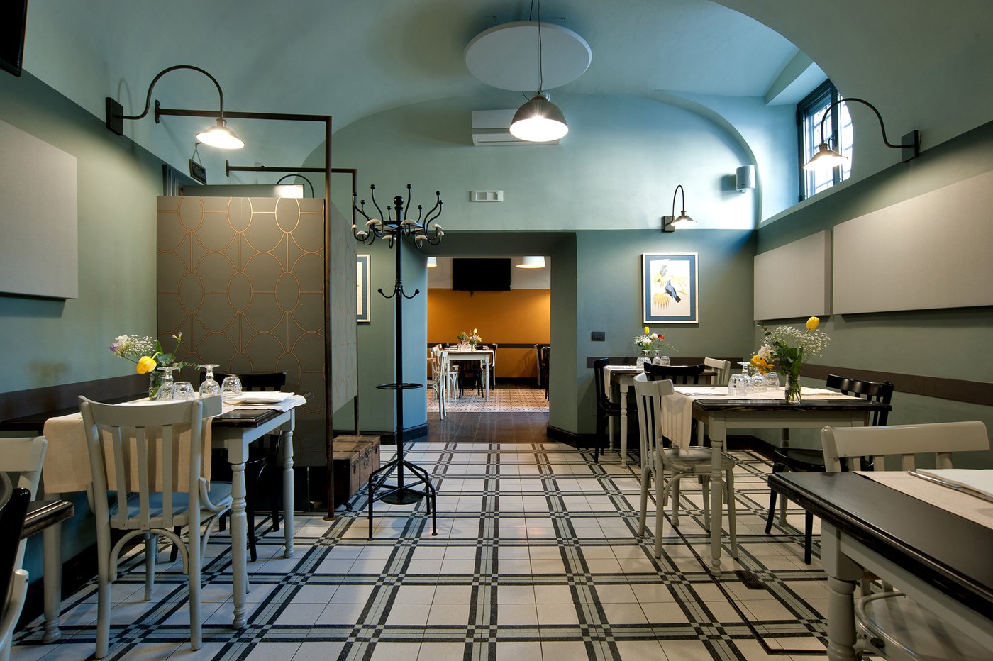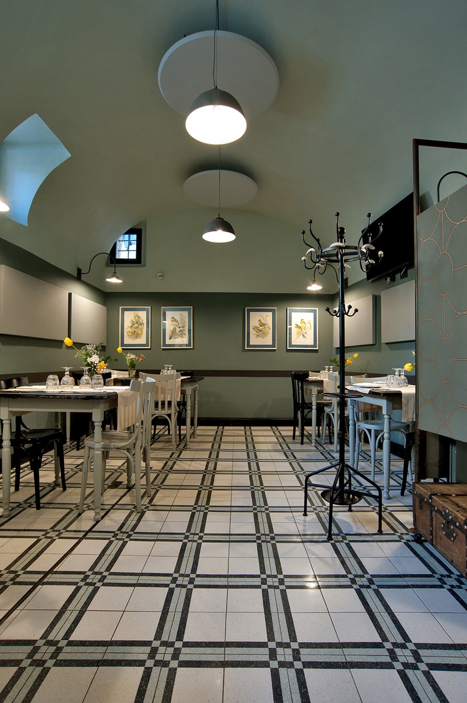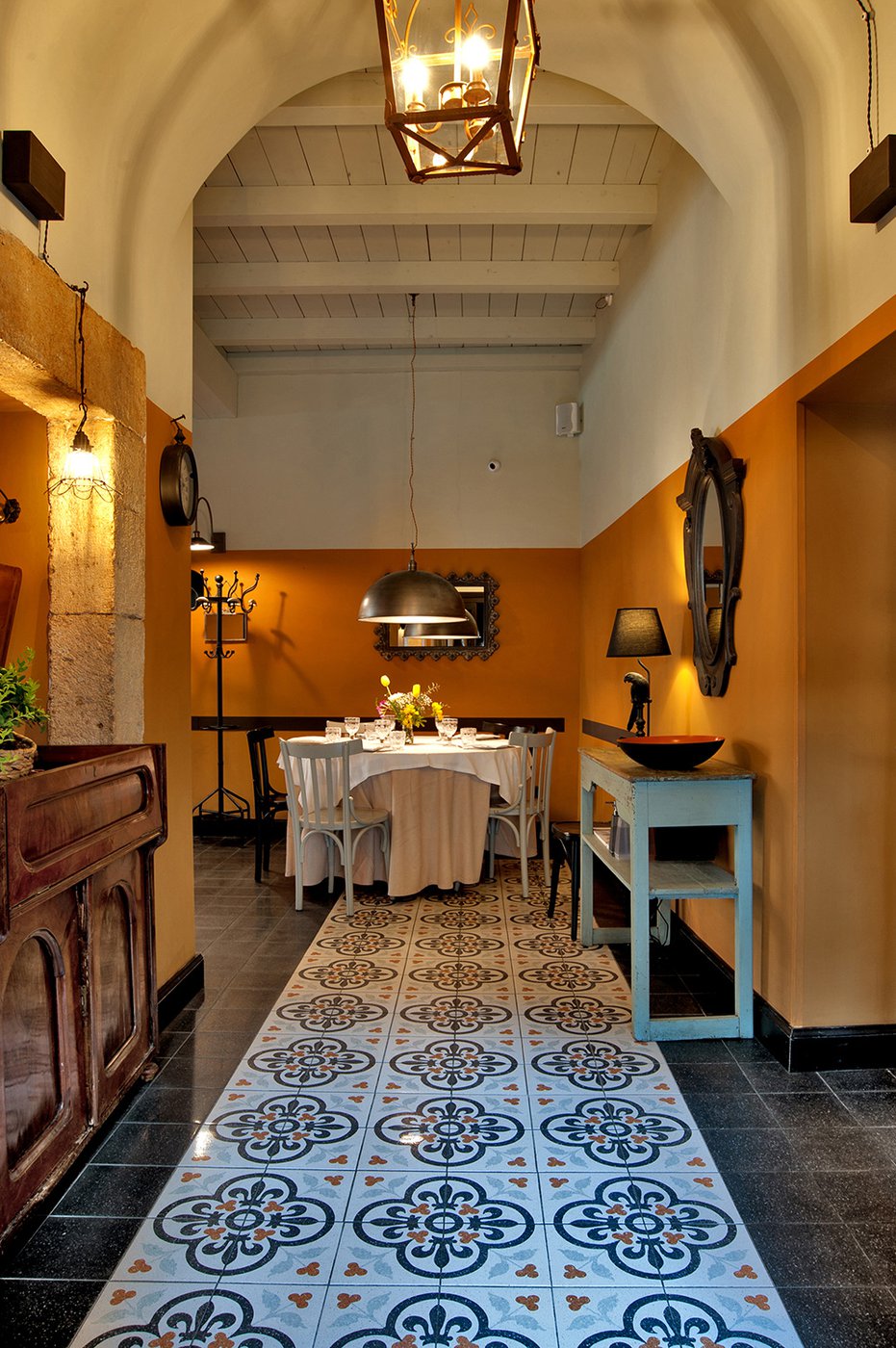 Das raffinierte Design und die exzentrischen Details des Lokals werden durch diese kleinen Formate mit Vintage-Chic-Persönlichkeit zur Geltung gebracht: Die einzelnen Räume sind durch jeweils unterschiedliche geometrische Muster und Blumenmuster geprägt, bei deren Auswahl mit ansprechenden aufeinander abgestimmten oder kontrastierenden Farbakzenten gespielt wurde.