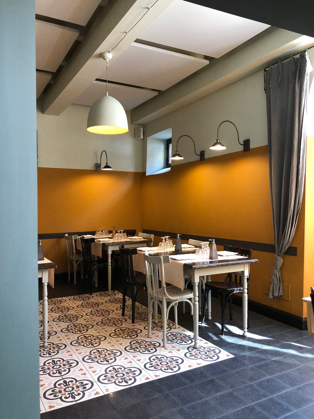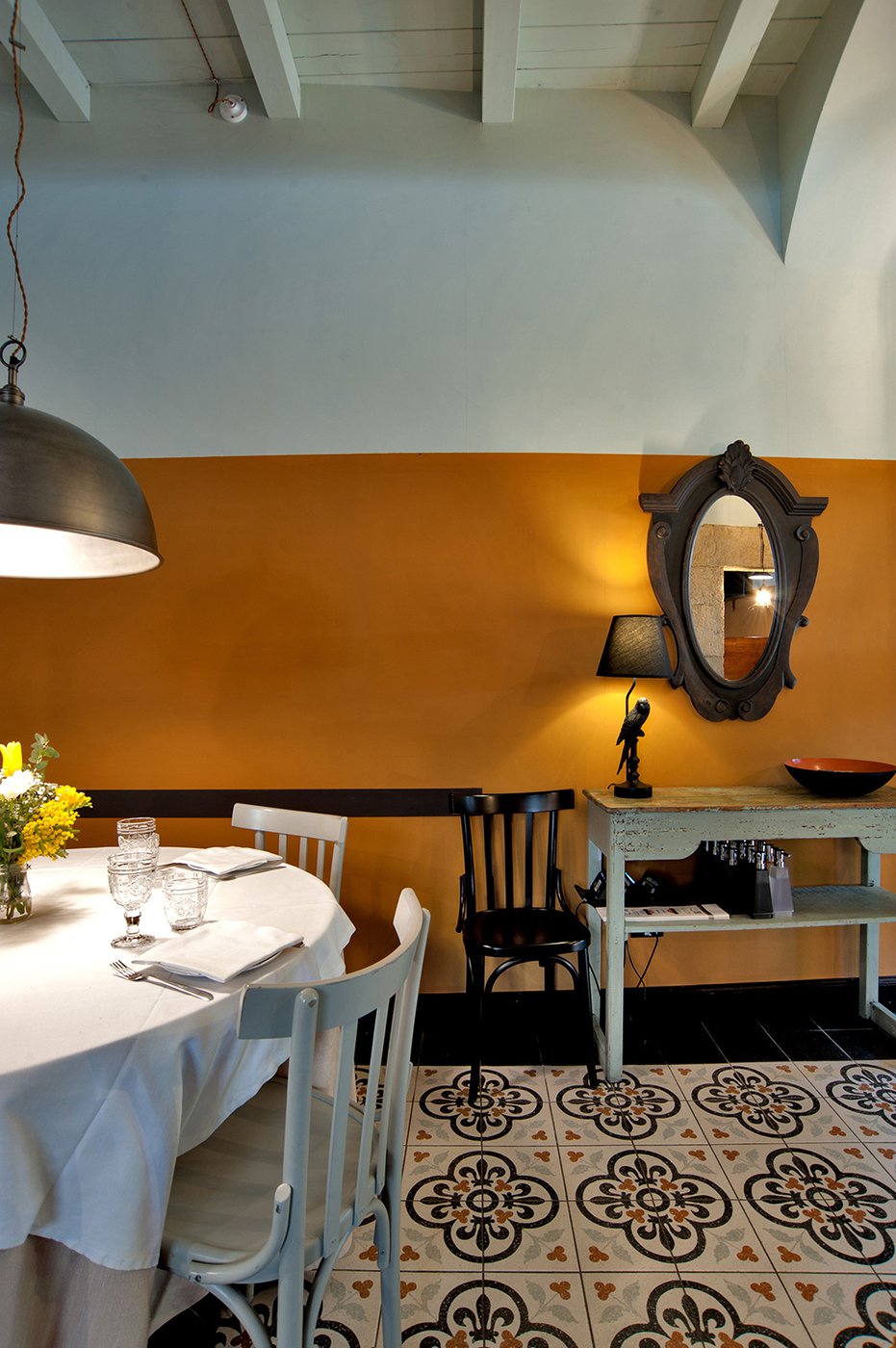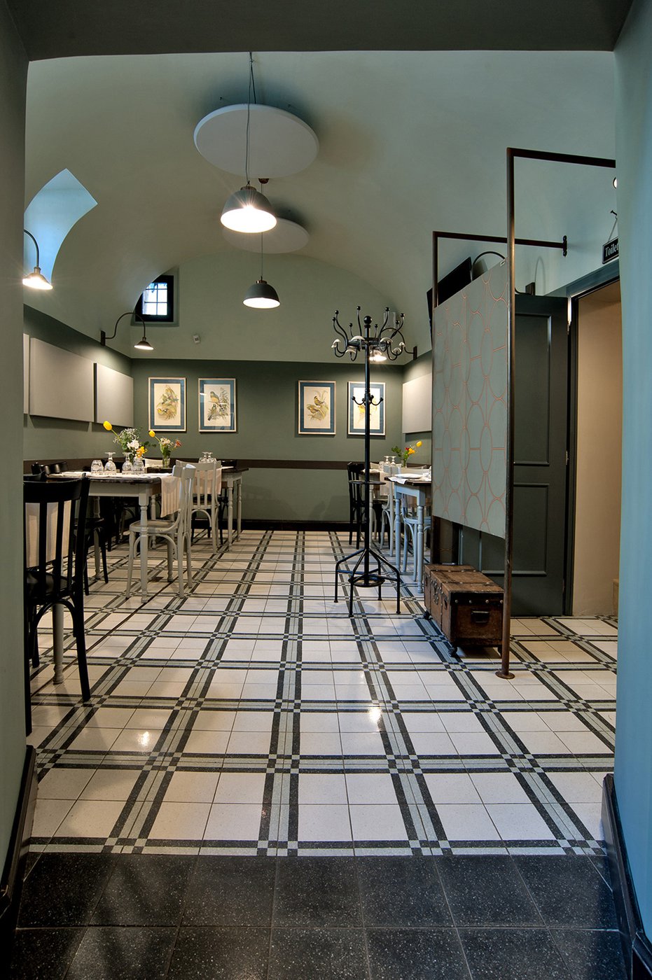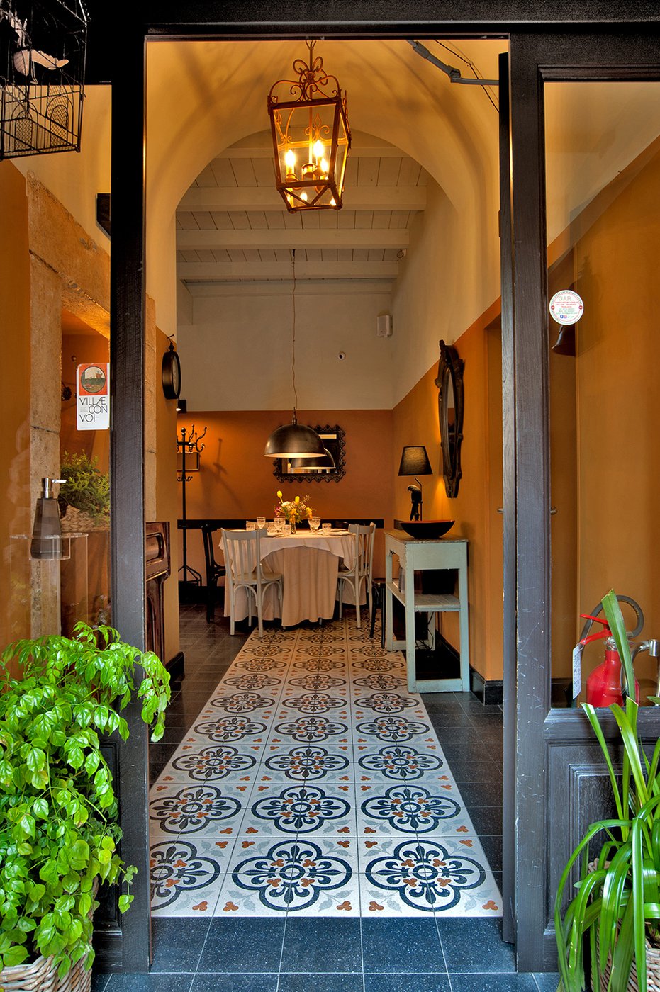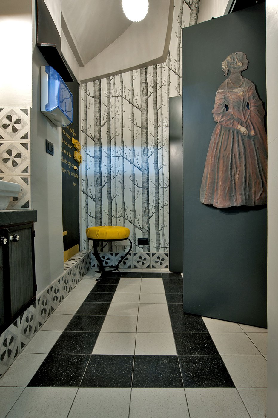 Das raffinierte Design und die exzentrischen Details des Lokals werden durch diese kleinen Formate mit Vintage-Chic-Persönlichkeit zur Geltung gebracht: Die einzelnen Räume sind durch jeweils unterschiedliche geometrische Muster und Blumenmuster geprägt, bei deren Auswahl mit ansprechenden aufeinander abgestimmten oder kontrastierenden Farbakzenten gespielt wurde.