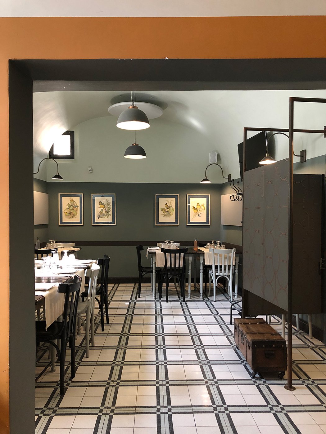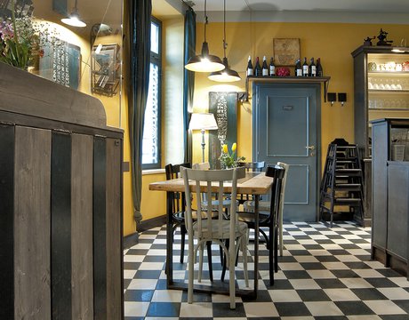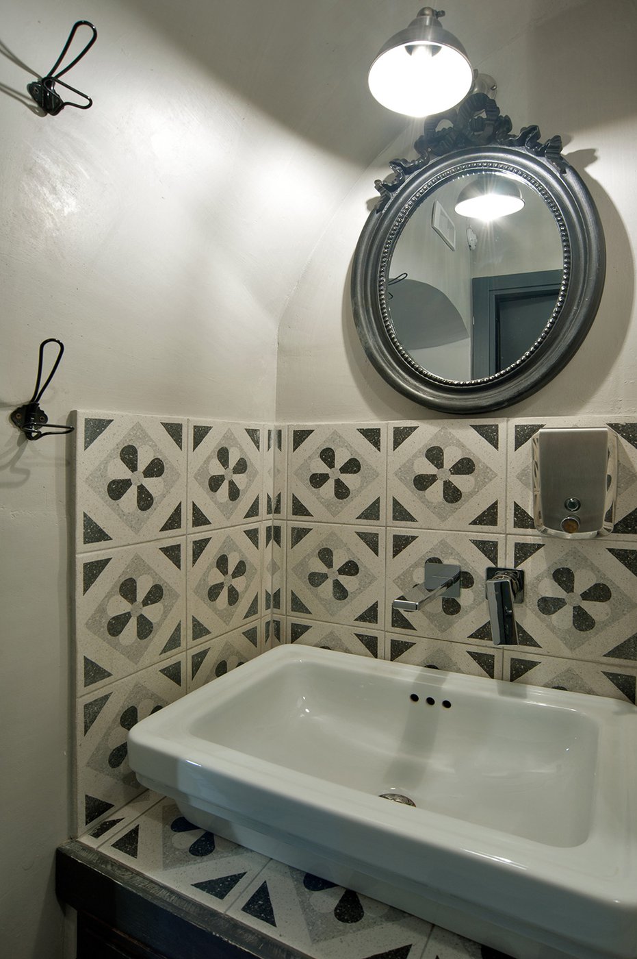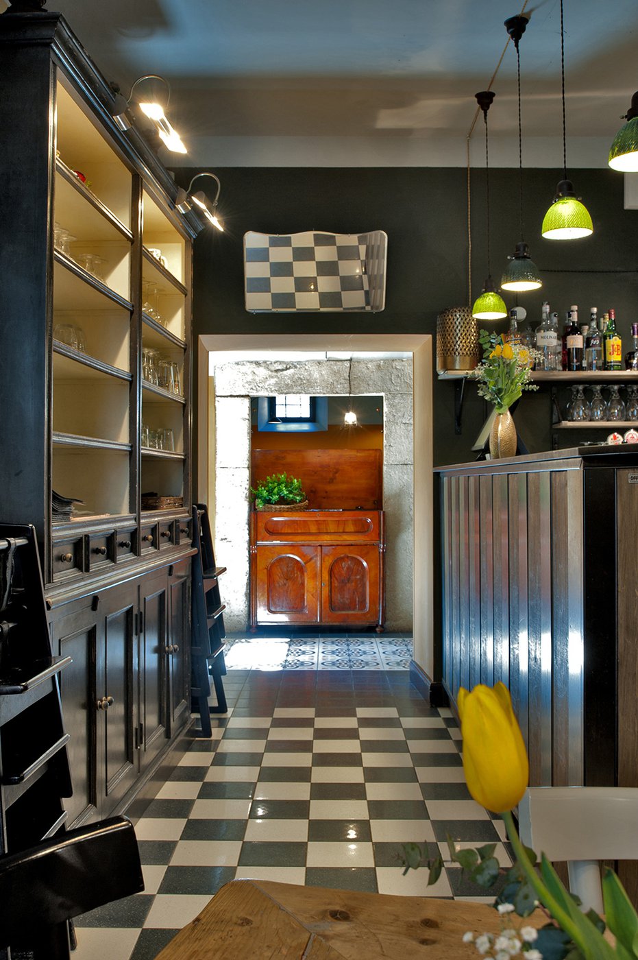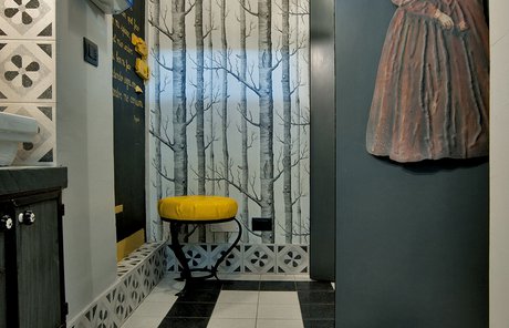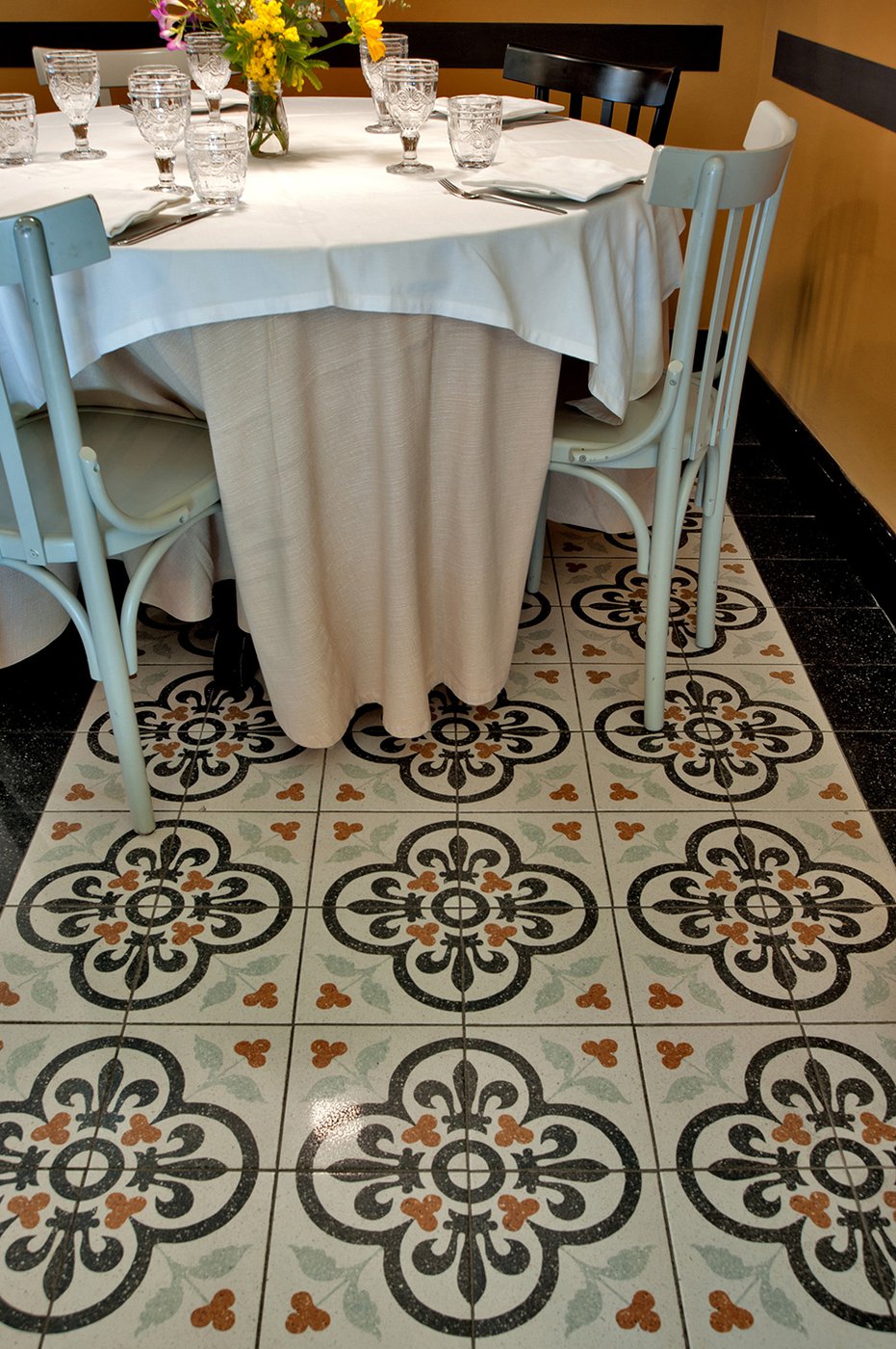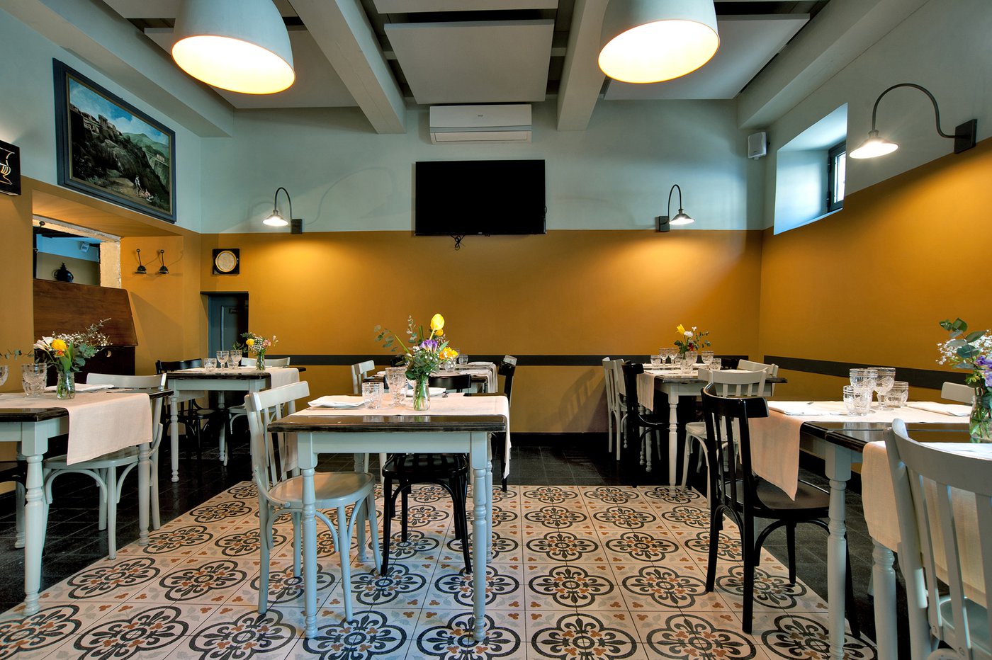 Das raffinierte Design und die exzentrischen Details des Lokals werden durch diese kleinen Formate mit Vintage-Chic-Persönlichkeit zur Geltung gebracht: Die einzelnen Räume sind durch jeweils unterschiedliche geometrische Muster und Blumenmuster geprägt, bei deren Auswahl mit ansprechenden aufeinander abgestimmten oder kontrastierenden Farbakzenten gespielt wurde.