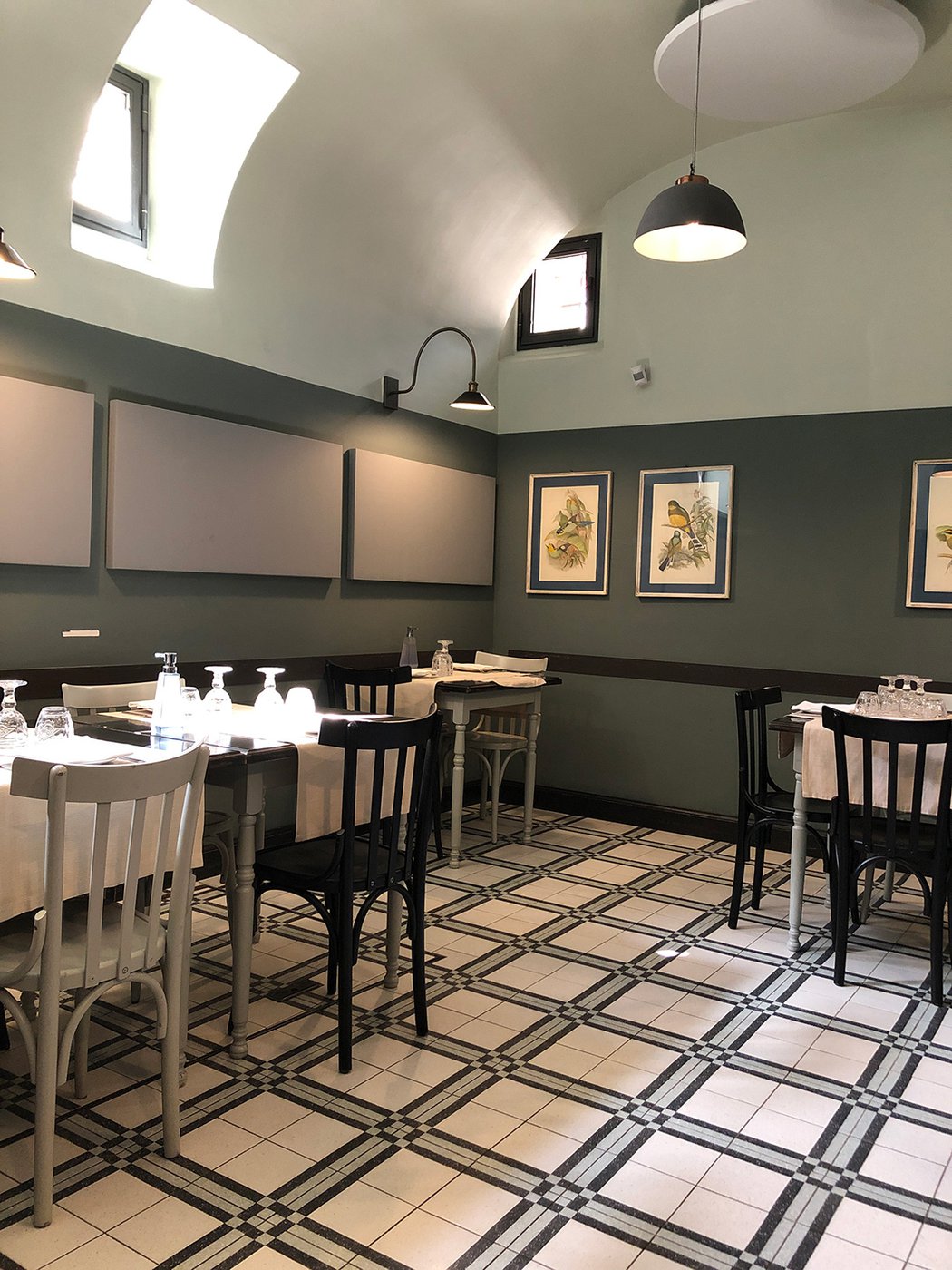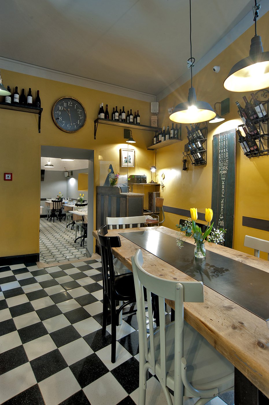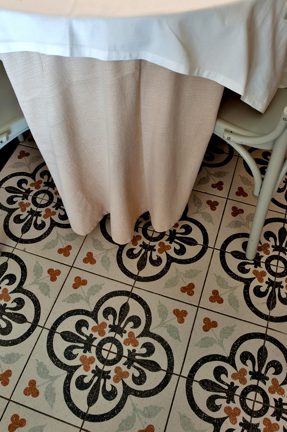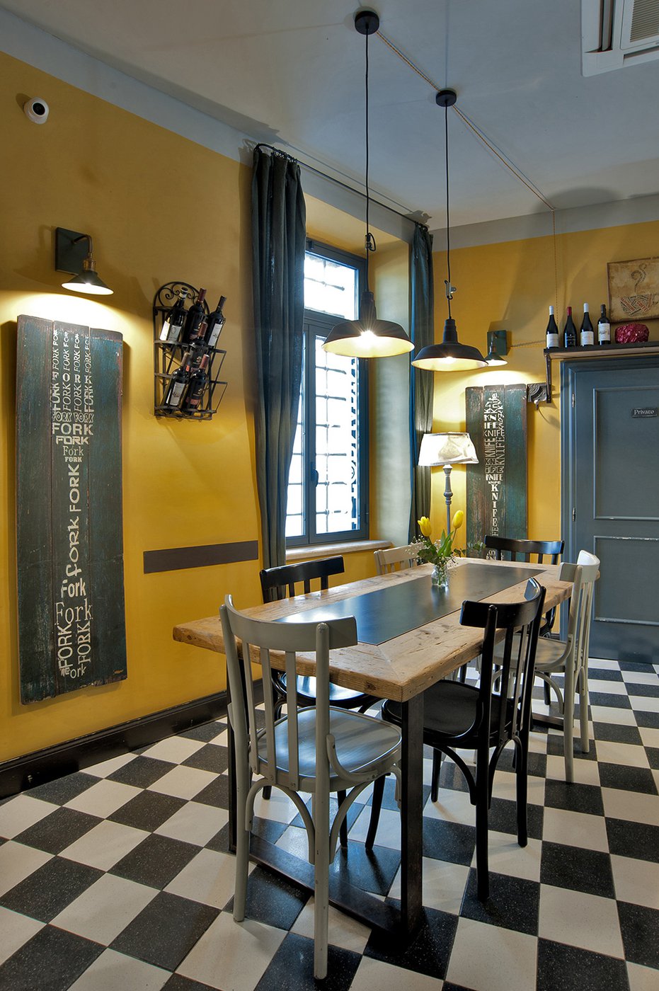 Das raffinierte Design und die exzentrischen Details des Lokals werden durch diese kleinen Formate mit Vintage-Chic-Persönlichkeit zur Geltung gebracht: Die einzelnen Räume sind durch jeweils unterschiedliche geometrische Muster und Blumenmuster geprägt, bei deren Auswahl mit ansprechenden aufeinander abgestimmten oder kontrastierenden Farbakzenten gespielt wurde.