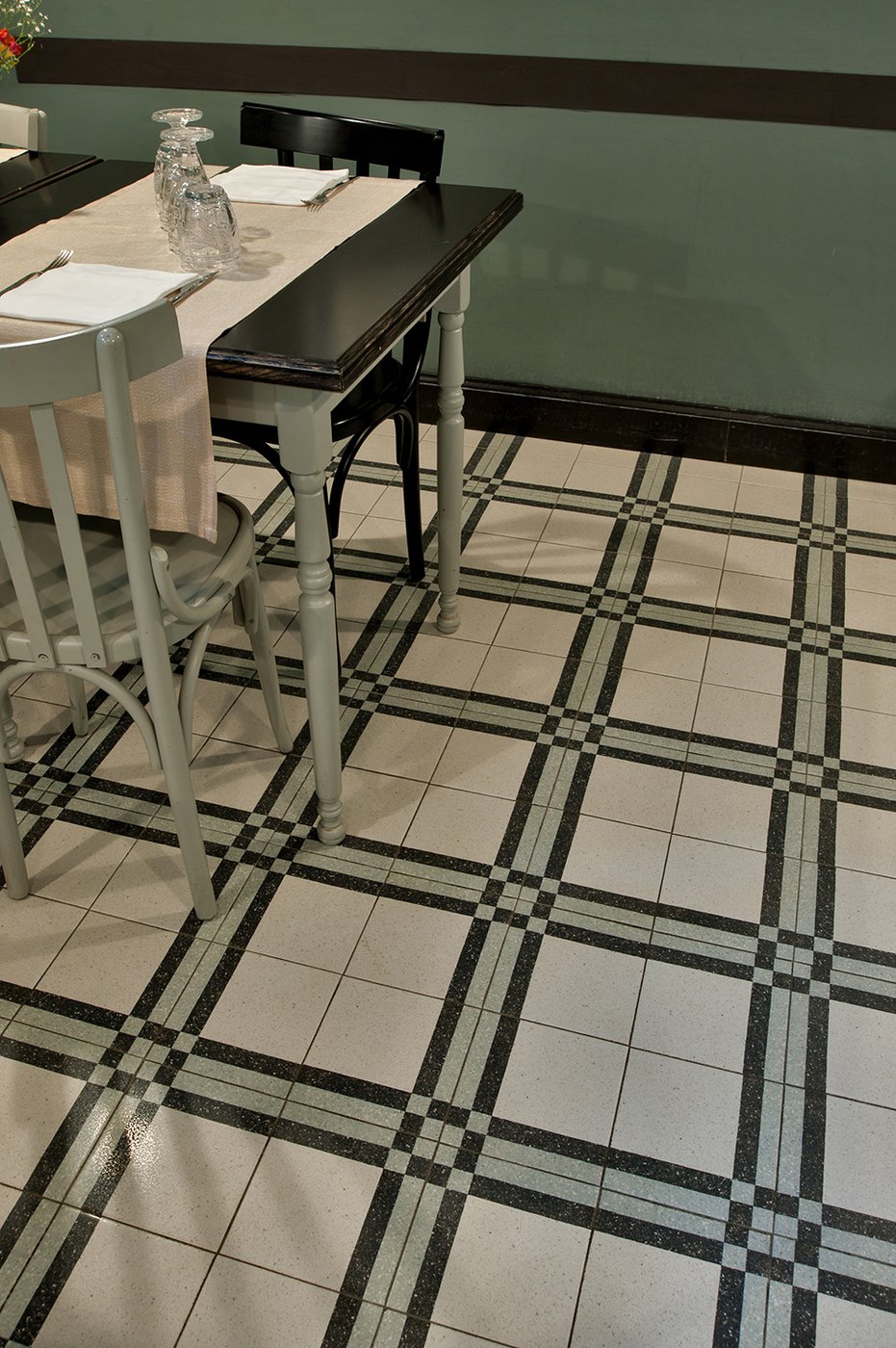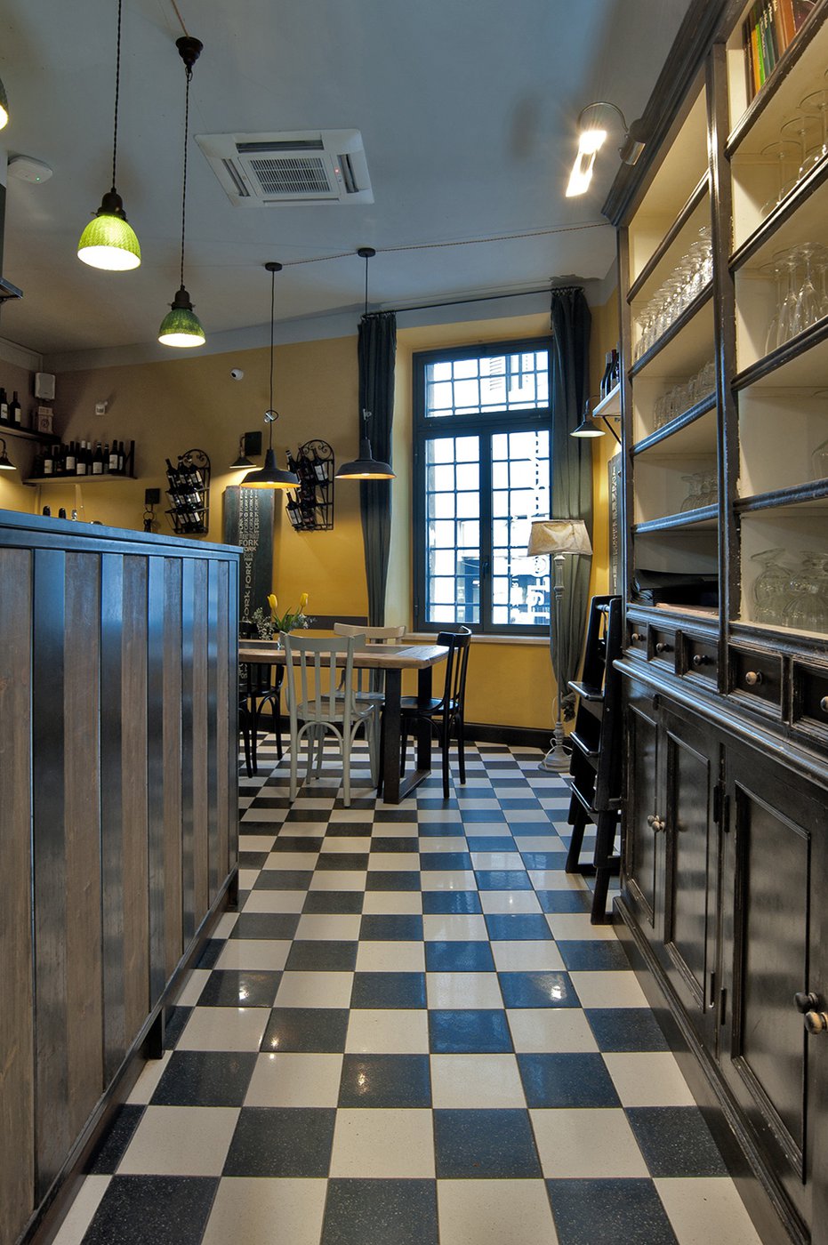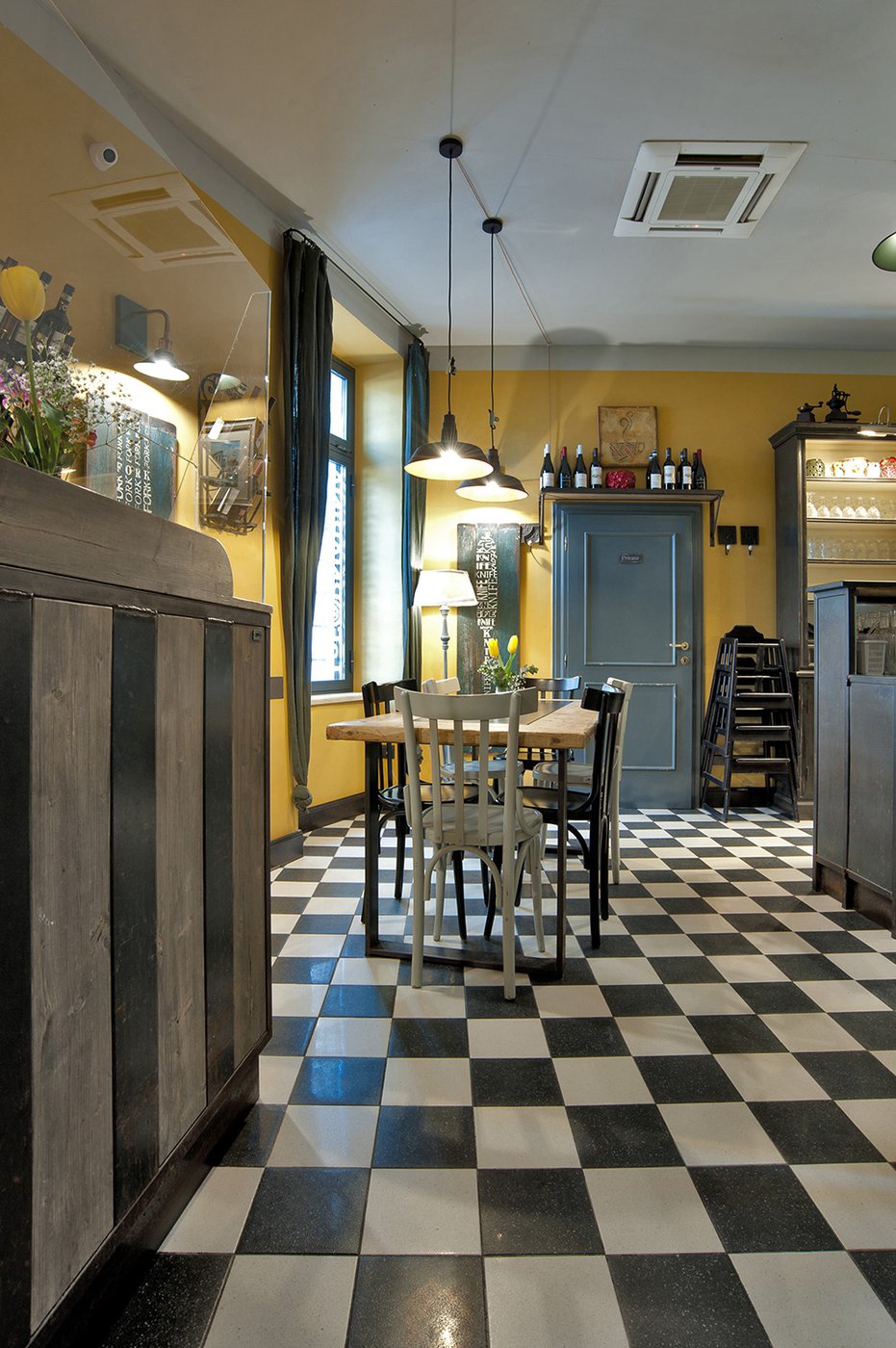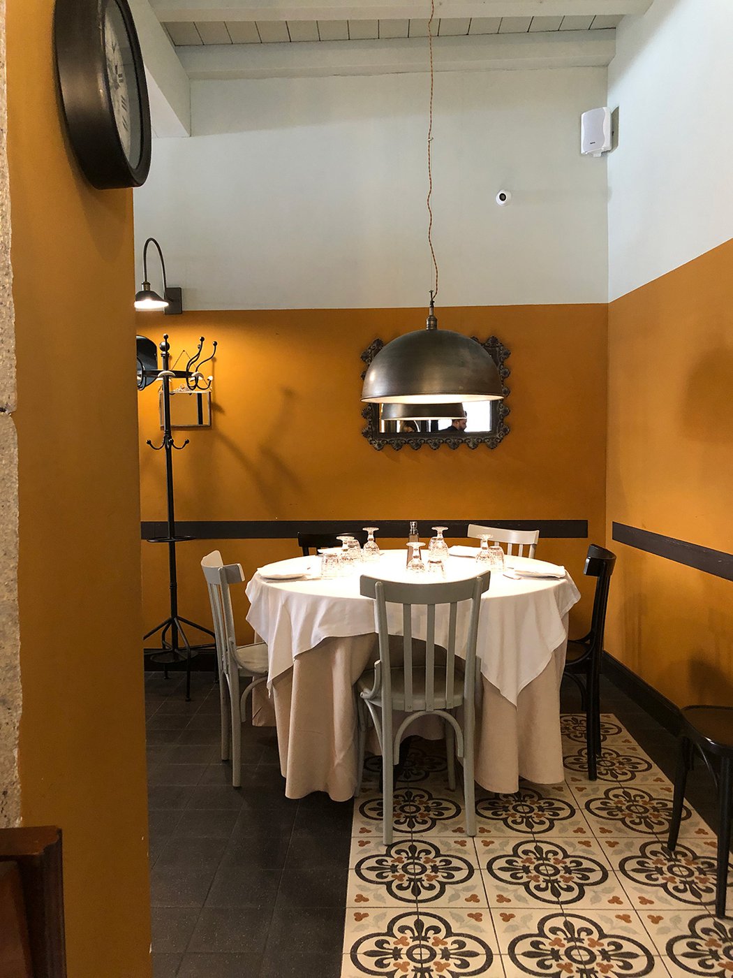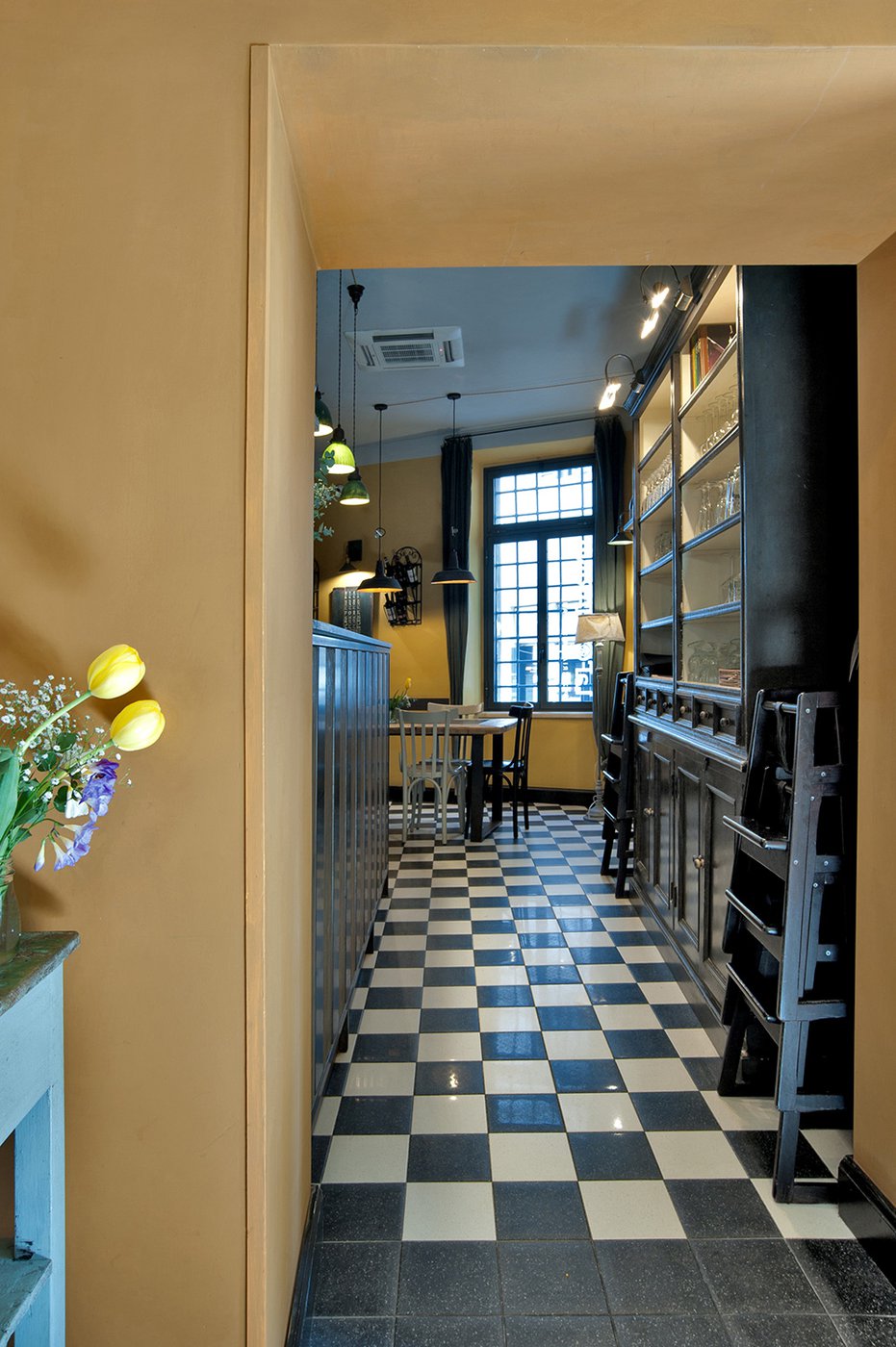 Das raffinierte Design und die exzentrischen Details des Lokals werden durch diese kleinen Formate mit Vintage-Chic-Persönlichkeit zur Geltung gebracht: Die einzelnen Räume sind durch jeweils unterschiedliche geometrische Muster und Blumenmuster geprägt, bei deren Auswahl mit ansprechenden aufeinander abgestimmten oder kontrastierenden Farbakzenten gespielt wurde.