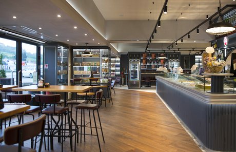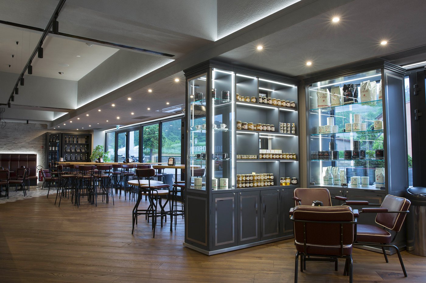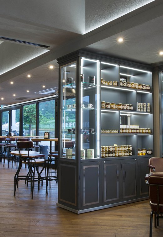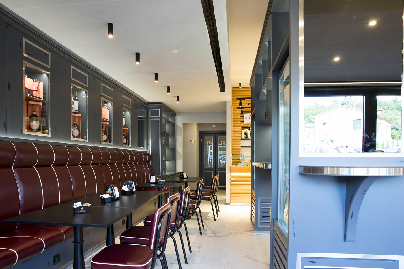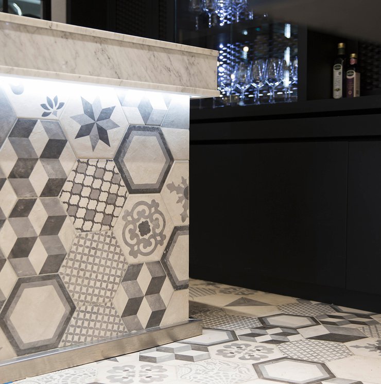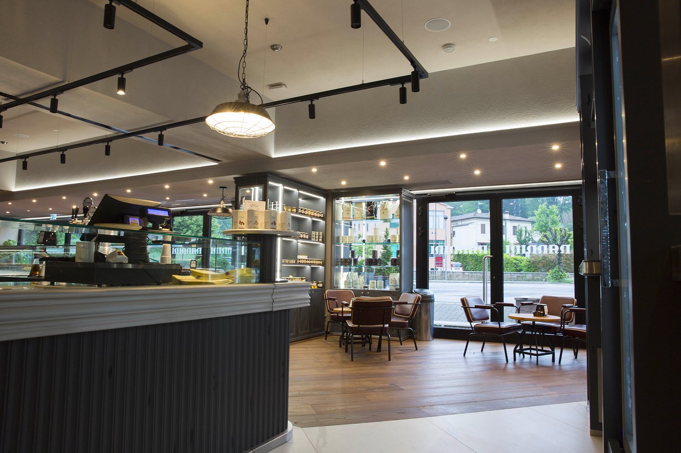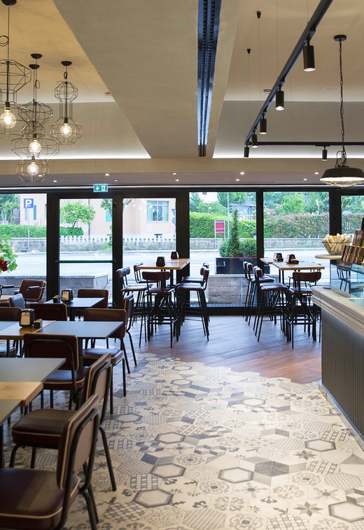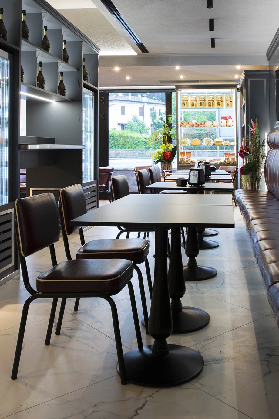 Die Geschichte, die die Barkette Nannini an die Stadt Siena bindet, ist hundert Jahre alt und begann mit einer revolutionären Dampfkaffeemaschine zu Beginn des vergangenen Jahrhunderts. Seither haben sich die Räumlichkeiten mehrmals gewandelt und zur meisterhaften italienischen Kunst der Kaffeerösterei sind die der Konditorei und der Likörproduktion gekommen. Außerhalb der Stadtmauern befindet sich eines dieser Lokale, Massetana, das mit seinen Innenausstattungen und -einrichtungen von diesen 100 Jahren voll Tradition, Genie und Qualität erzählen möchte. Einen Kontrast zum warmen, linearen Parkett und den kostbaren Äderungen des hellen Marmors bildet die Eleganz der Zementfliesen Terra, die beliebtesten kleinen Formate aus Feinsteinzeug von Marca Corona. Das Mix Decori im sechseckigen Format mit seinen eleganten grauen Nuancen, anthrazit und schwarz, und die originellen geometrischen Motiven und Blumenmotiven erinnern an Begeisterung des historischen Gründers, Guido Nannini, und sorgen für ein eindeutig einladendes und luftiges Ambiente.