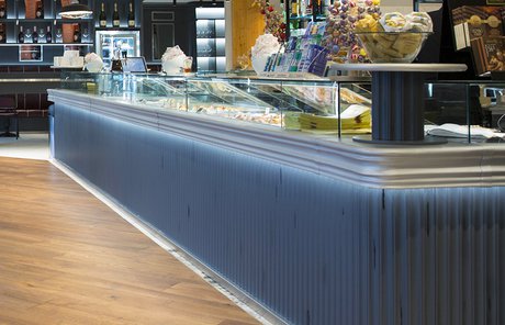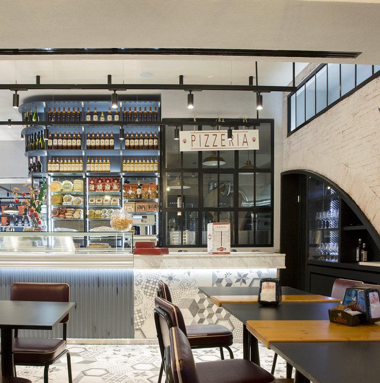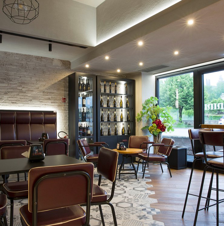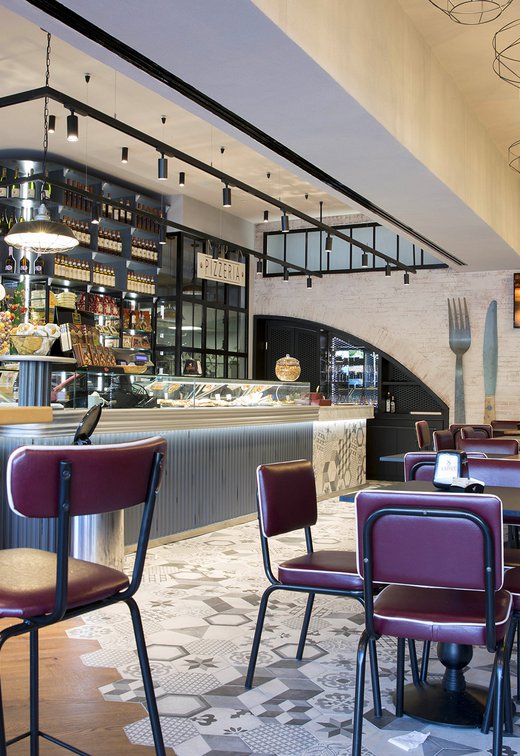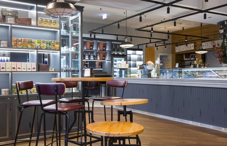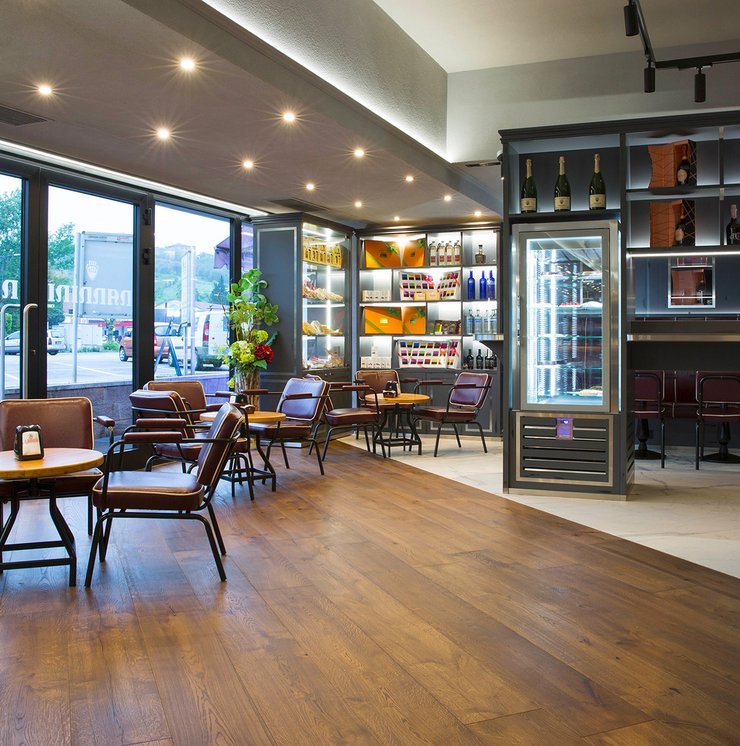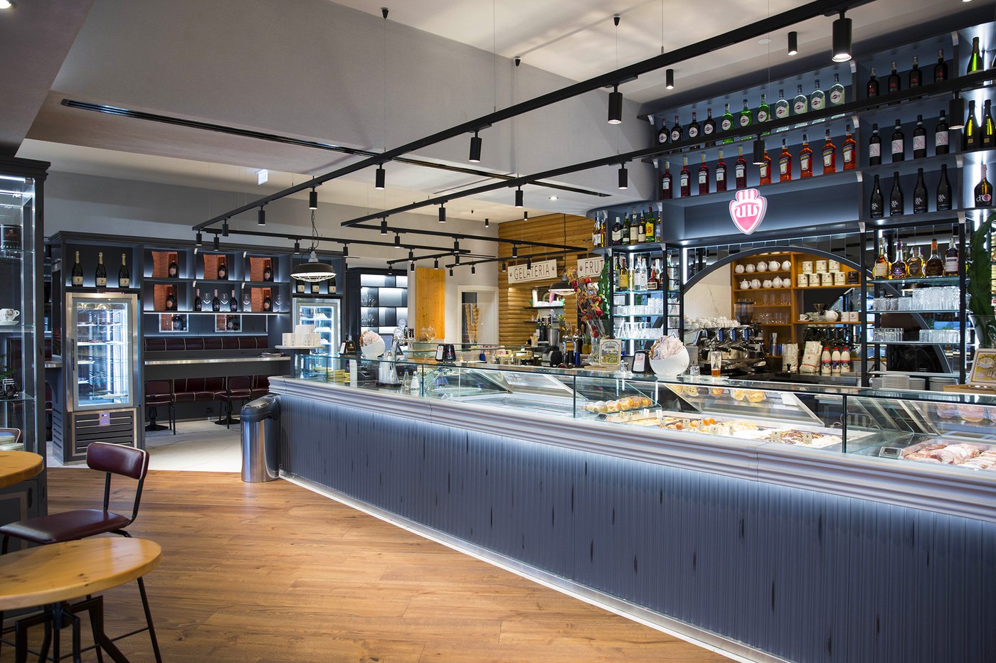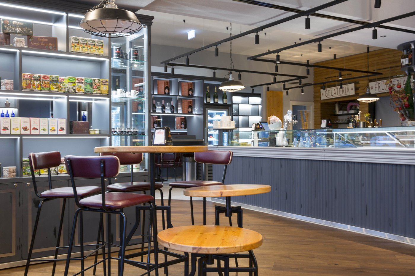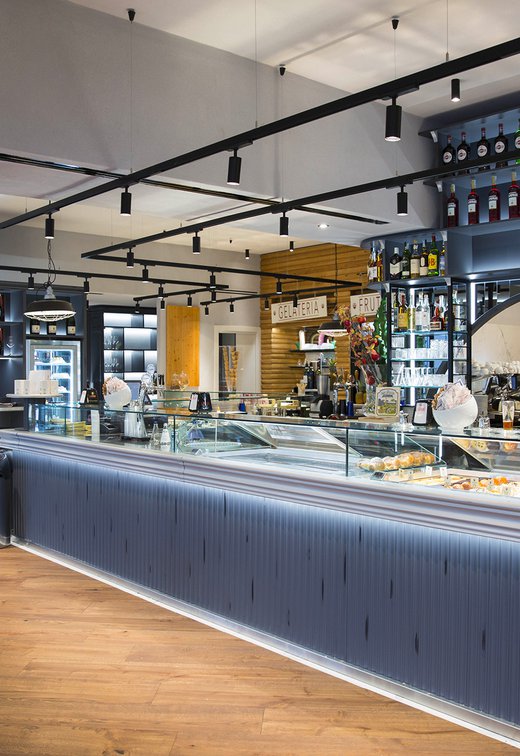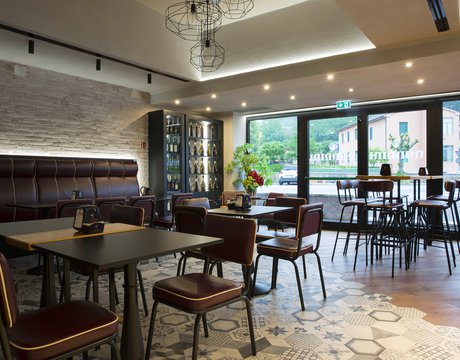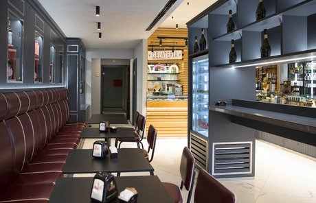 Die Geschichte, die die Barkette Nannini an die Stadt Siena bindet, ist hundert Jahre alt und begann mit einer revolutionären Dampfkaffeemaschine zu Beginn des vergangenen Jahrhunderts. Seither haben sich die Räumlichkeiten mehrmals gewandelt und zur meisterhaften italienischen Kunst der Kaffeerösterei sind die der Konditorei und der Likörproduktion gekommen. Außerhalb der Stadtmauern befindet sich eines dieser Lokale, Massetana, das mit seinen Innenausstattungen und -einrichtungen von diesen 100 Jahren voll Tradition, Genie und Qualität erzählen möchte. Einen Kontrast zum warmen, linearen Parkett und den kostbaren Äderungen des hellen Marmors bildet die Eleganz der Zementfliesen Terra, die beliebtesten kleinen Formate aus Feinsteinzeug von Marca Corona. Das Mix Decori im sechseckigen Format mit seinen eleganten grauen Nuancen, anthrazit und schwarz, und die originellen geometrischen Motiven und Blumenmotiven erinnern an Begeisterung des historischen Gründers, Guido Nannini, und sorgen für ein eindeutig einladendes und luftiges Ambiente.