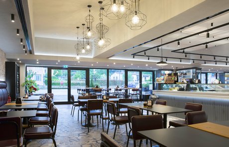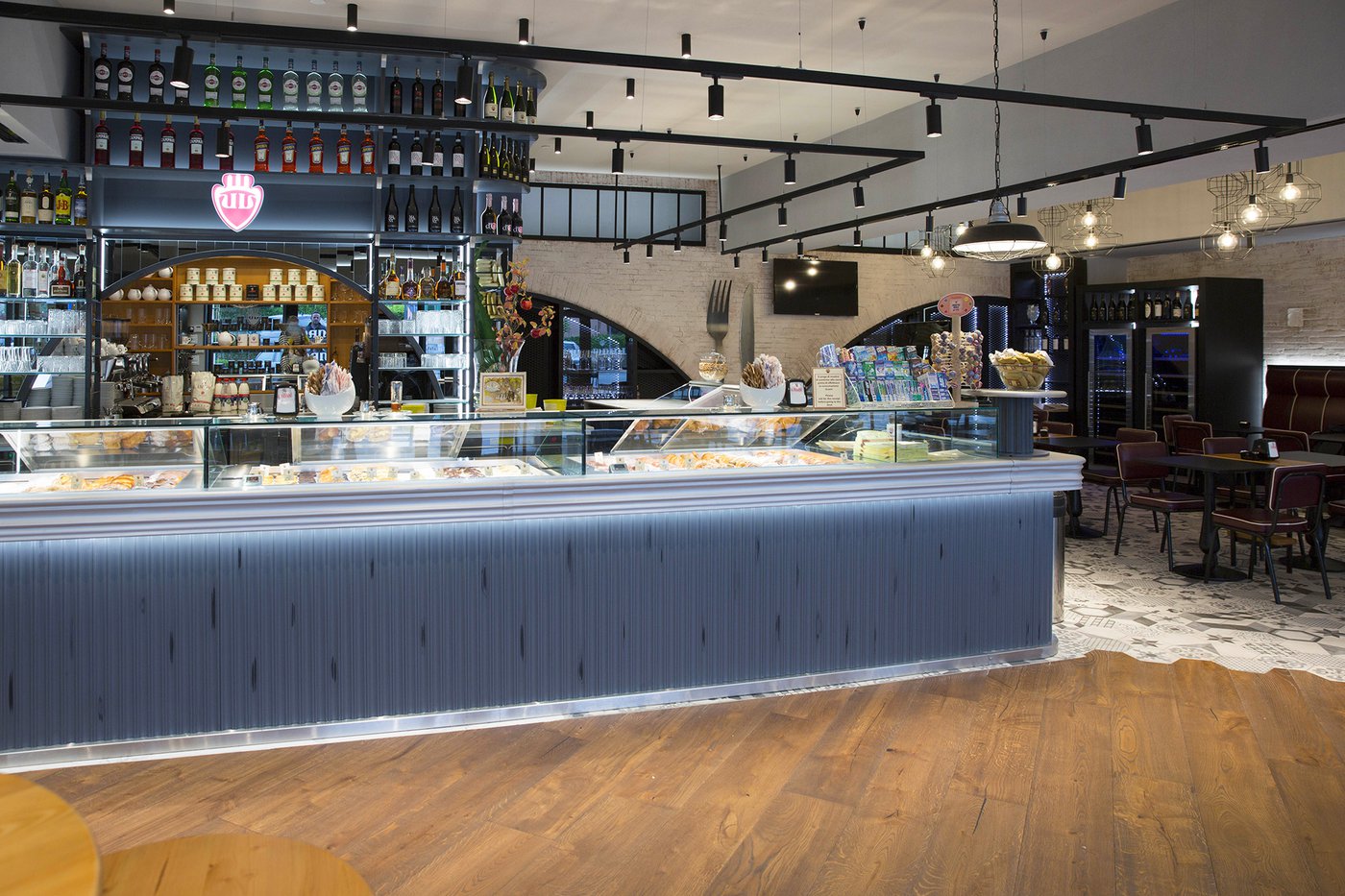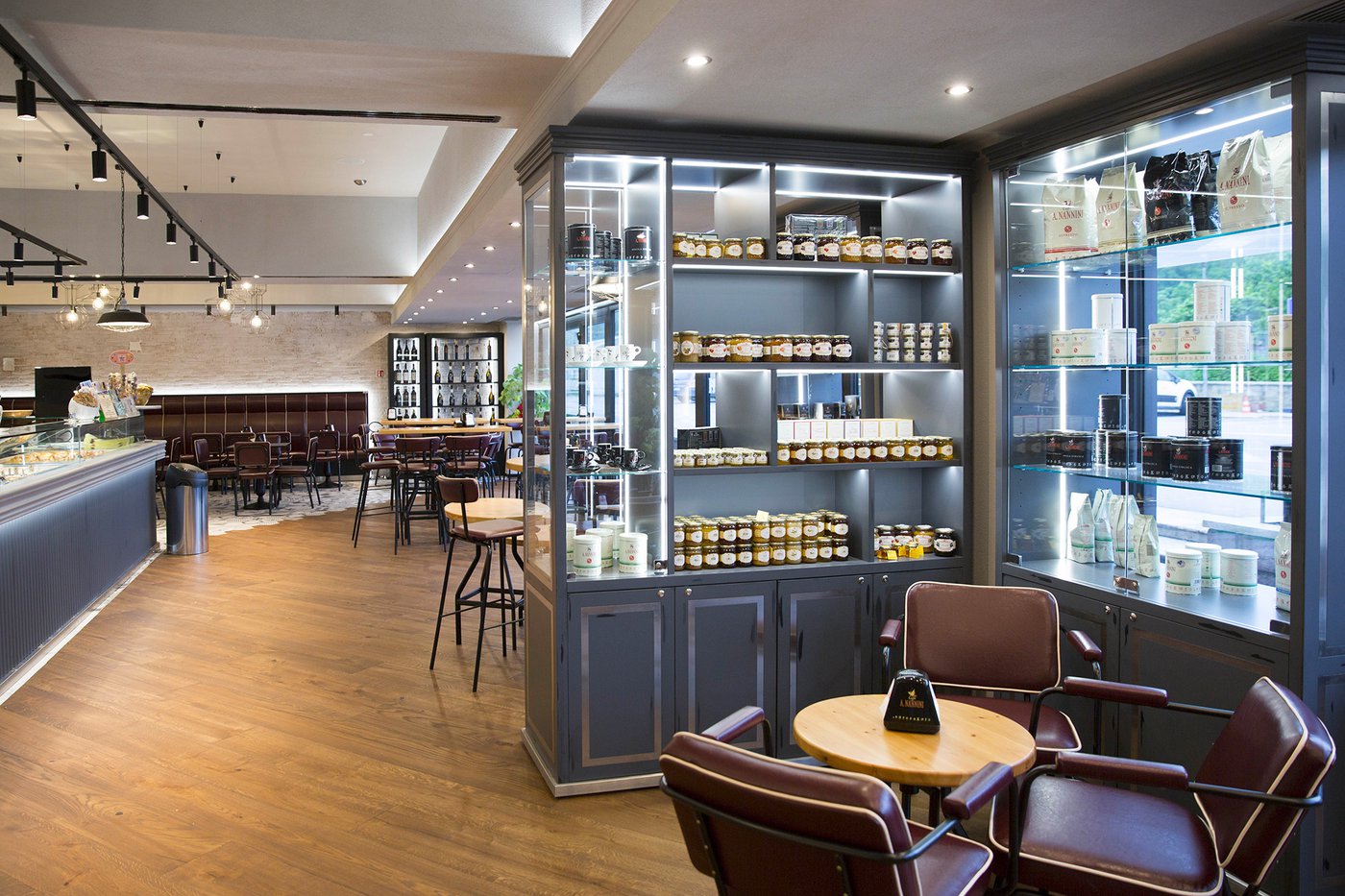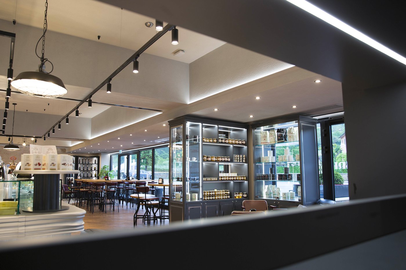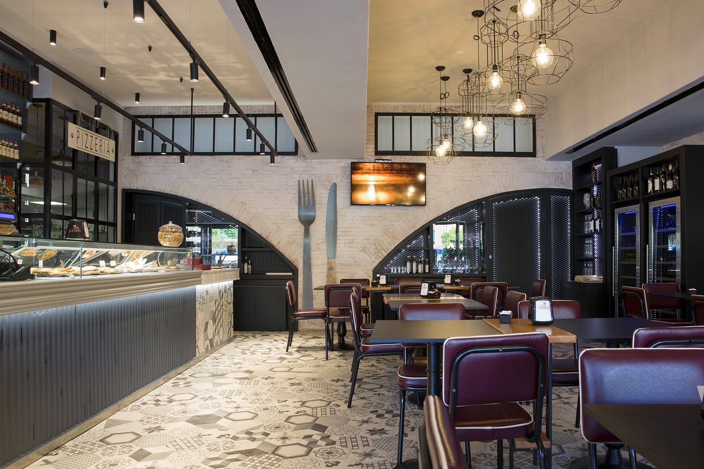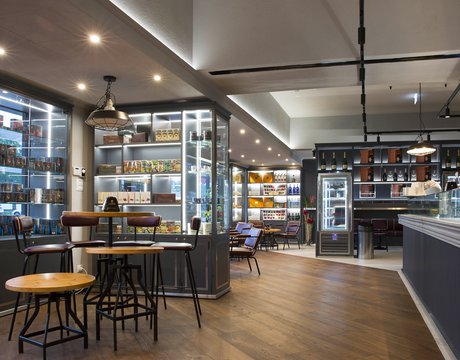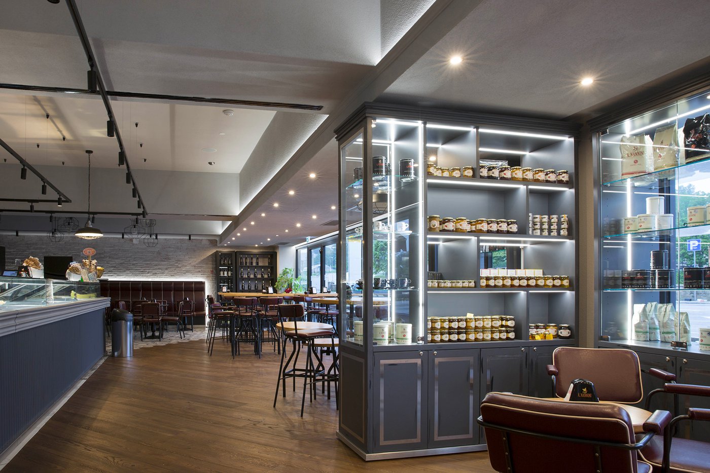 Die Geschichte, die die Barkette Nannini an die Stadt Siena bindet, ist hundert Jahre alt und begann mit einer revolutionären Dampfkaffeemaschine zu Beginn des vergangenen Jahrhunderts. Seither haben sich die Räumlichkeiten mehrmals gewandelt und zur meisterhaften italienischen Kunst der Kaffeerösterei sind die der Konditorei und der Likörproduktion gekommen. Außerhalb der Stadtmauern befindet sich eines dieser Lokale, Massetana, das mit seinen Innenausstattungen und -einrichtungen von diesen 100 Jahren voll Tradition, Genie und Qualität erzählen möchte. Einen Kontrast zum warmen, linearen Parkett und den kostbaren Äderungen des hellen Marmors bildet die Eleganz der Zementfliesen Terra, die beliebtesten kleinen Formate aus Feinsteinzeug von Marca Corona. Das Mix Decori im sechseckigen Format mit seinen eleganten grauen Nuancen, anthrazit und schwarz, und die originellen geometrischen Motiven und Blumenmotiven erinnern an Begeisterung des historischen Gründers, Guido Nannini, und sorgen für ein eindeutig einladendes und luftiges Ambiente.