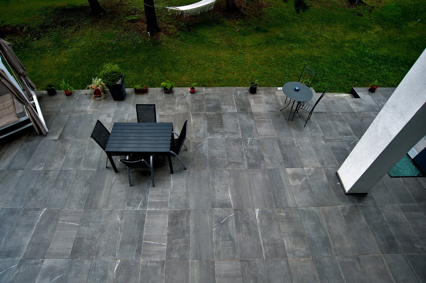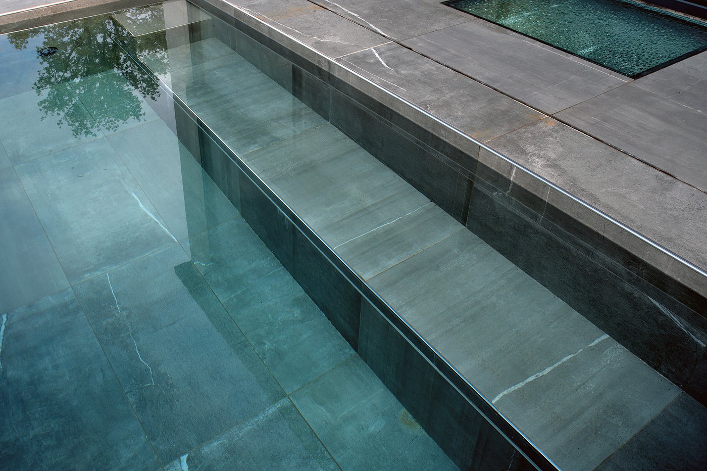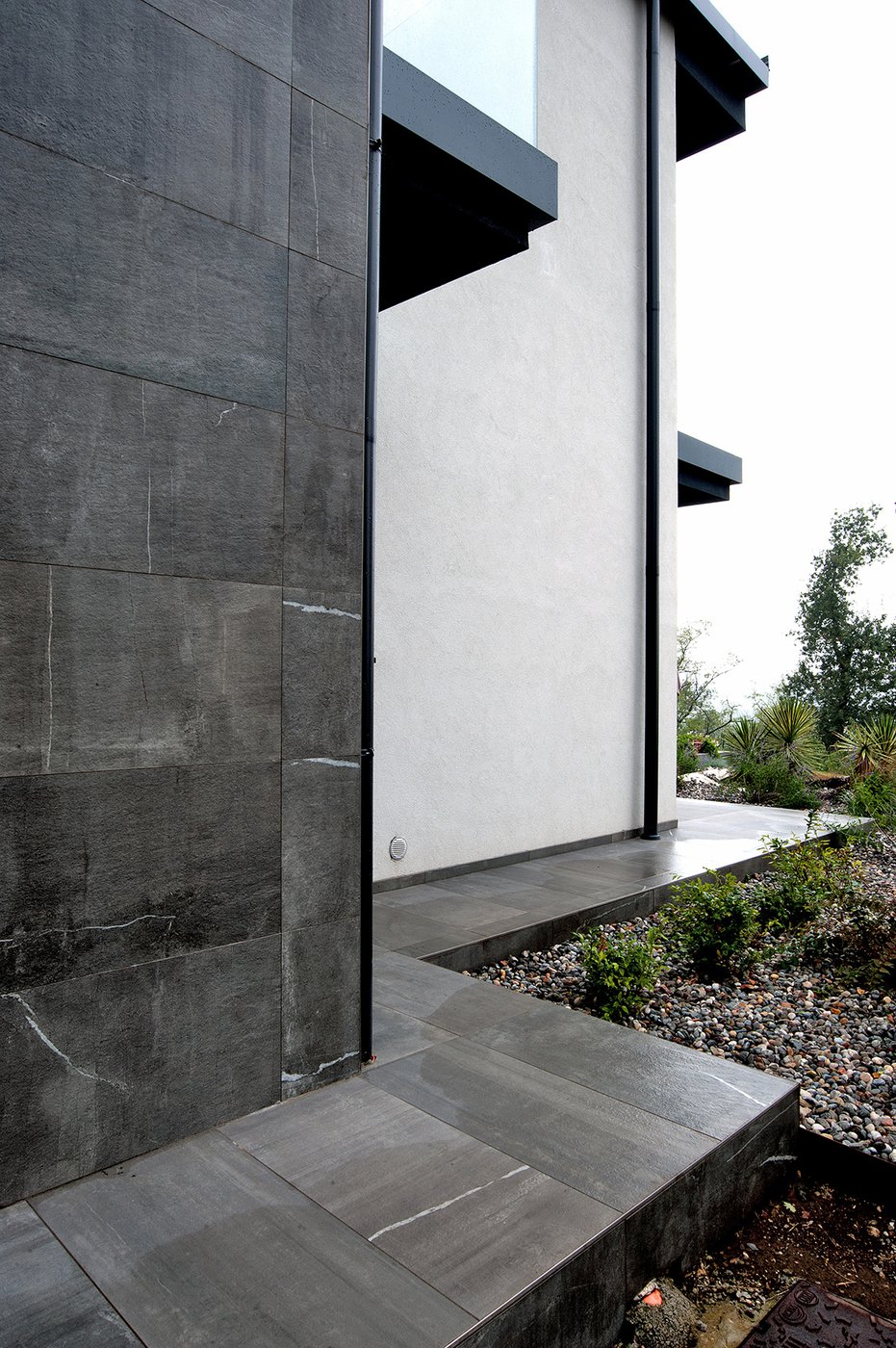 Die StoneOne-Keramiken werden sowohl an den Wänden durch das innovative System befestigter Wände zur Optimierung der Energieleistung des Gebäudes als auch auf dem Boden verwendet, um den Poolbereich, den Erfrischungs- und Entspannungsbereich und den gesamten Hausumfang abzudecken. Diese 2 cm dicken Feinsteinzeugböden gewährleisten eine extreme Widerstandsfähigkeit gegen Witterungseinflüsse, absolute Rutschsicherheit und maximale visuelle Kontinuität mit den Außenfassaden.