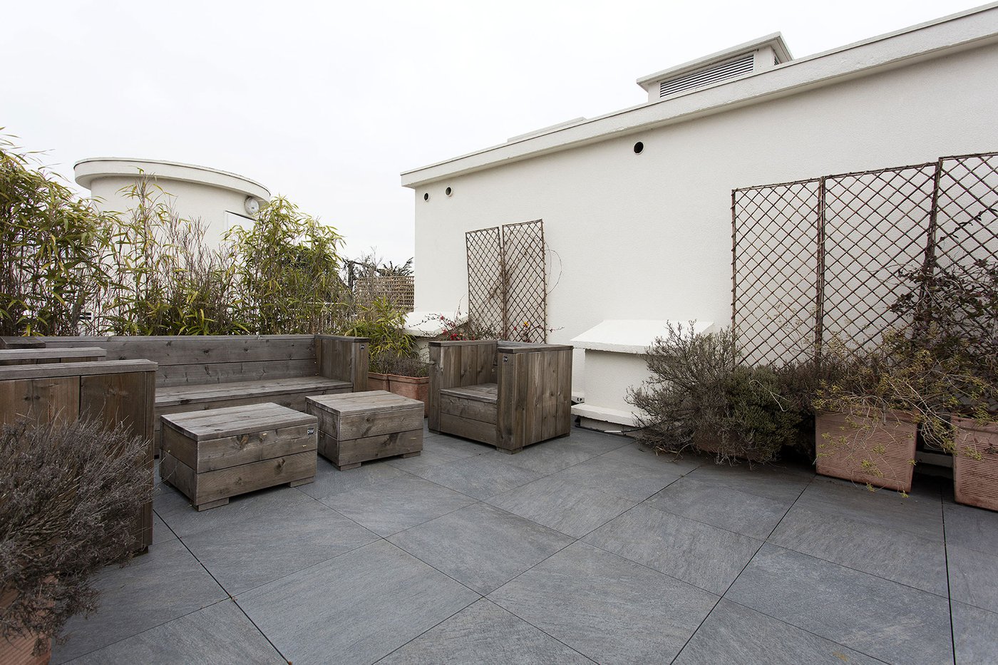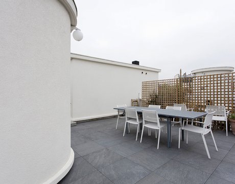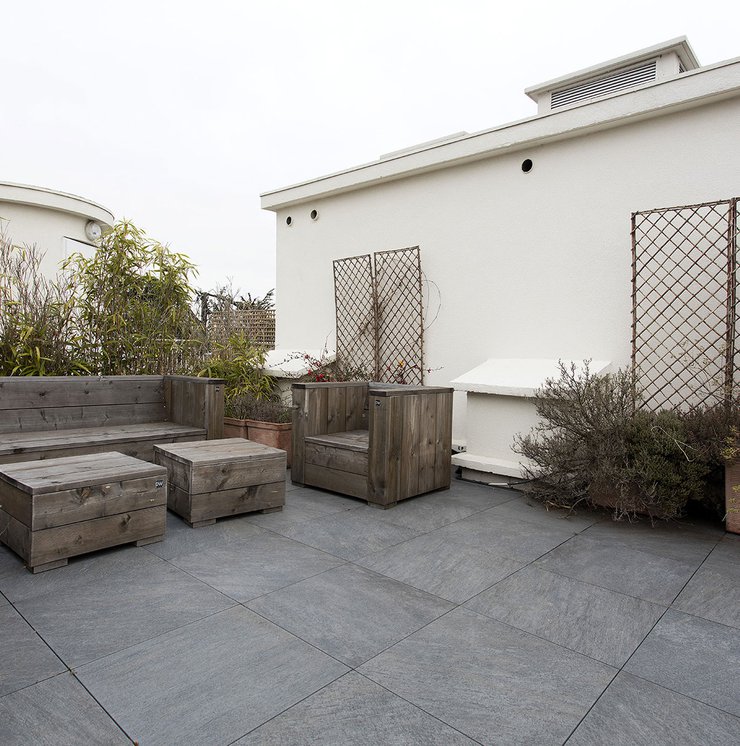 Die Kollektion Stoneline wurde für die Terrasse eines französischen Wohnhauses in der Nähe der Seine gewählt. Die extrastarken Platten von Marca Corona mit Natursteinoptik verbinden Zuverlässigkeit und Witterungsbeständigkeit mit einer markanten und modernen Ästhetik: Der Farbton Silver macht diesen Außenbereich zu einer praktischen und einladenden Ecke zum geselligen Beisammensein und Entspannen.