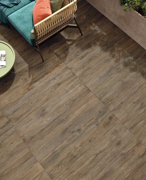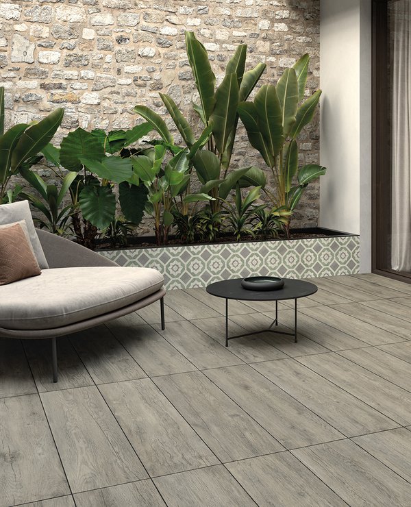 Inspiriert von einem der beliebtesten Materialien der Natur, eignet sich Feinsteinzeug in Holzoptik auch für Böden im Außenbereich.