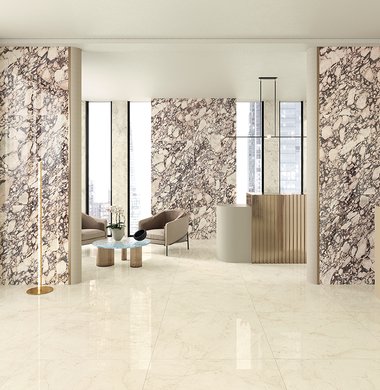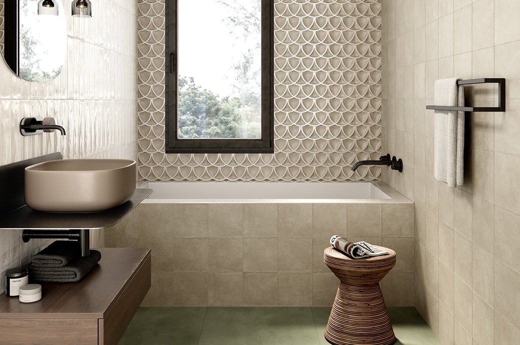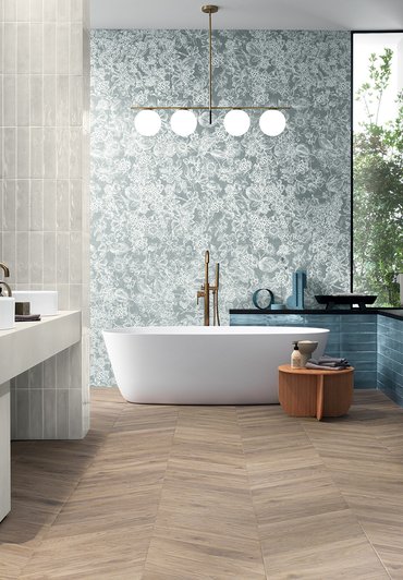 Eccentric, vivacious and trendy tones intermingle to create surprising matches. Coloured tiles offer private purchasers and designers the possibility to express their creativity to the full and in full colour! White body floor and wall tiles gain bold and enveloping tones, such as burgundy, sage green, mustard yellow and deep blue, which become the outstanding and irresistible features of bathrooms, kitchens, living rooms and bedrooms with an ultra-glam flair.
