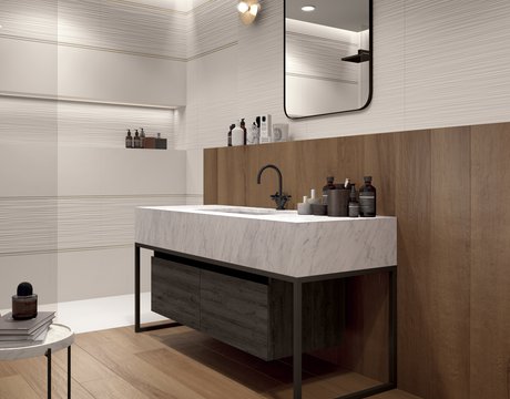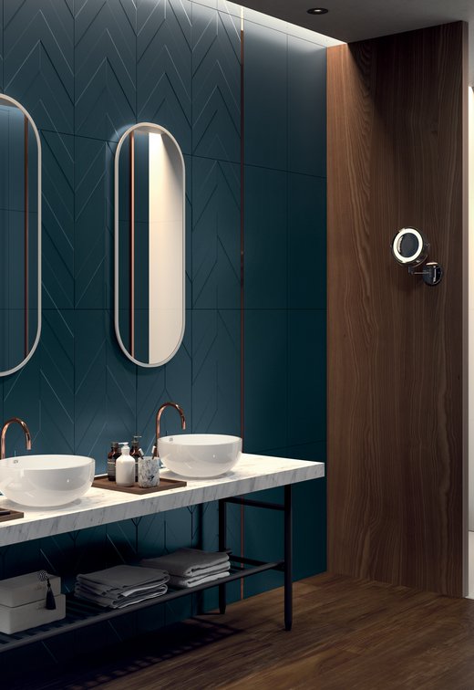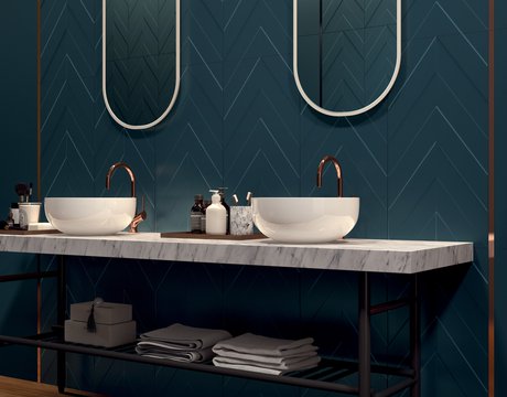 This 3D style tiles collection includes fine white body and glazed porcelain wall tiles with a modern three-dimensional look. In both the White and Deep Blue versions, the Natural and geometric decorations of 4D give shape, refinement and character to any room. Despite the aesthetic impact being rather bold, these wall tiles with their 3D patterns combine perfectly with different materials and styles, to give life to original and sophisticated interiors in any residential and commercial project.