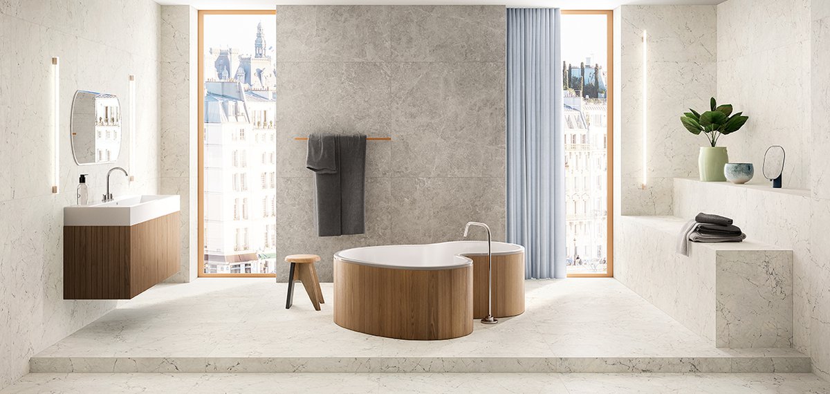 Porcelain stoneware offers an ideal combination of style, practicality and durability for covering a bathroom, transforming it into a real home spa. Marca Corona ceramic tiles are non-slip, ensuring safety and comfort even in humid environments such as the bathroom.