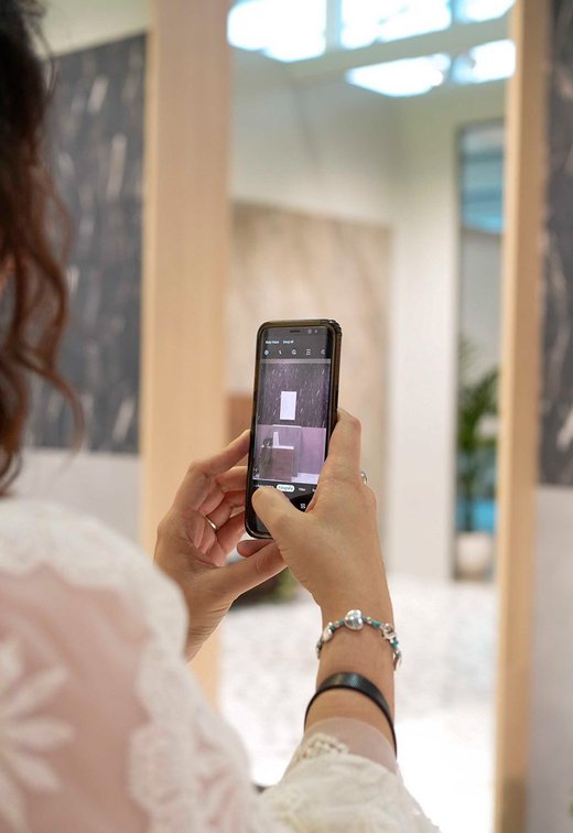 In the case of Iridea, the particular aesthetic proposal with a woven wallpaper effect, the different installation methods with enveloping shades with gradual transition, and the underlying avant-garde inspiration were decisive in the decision.