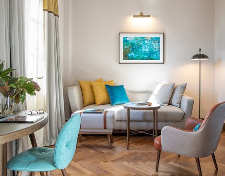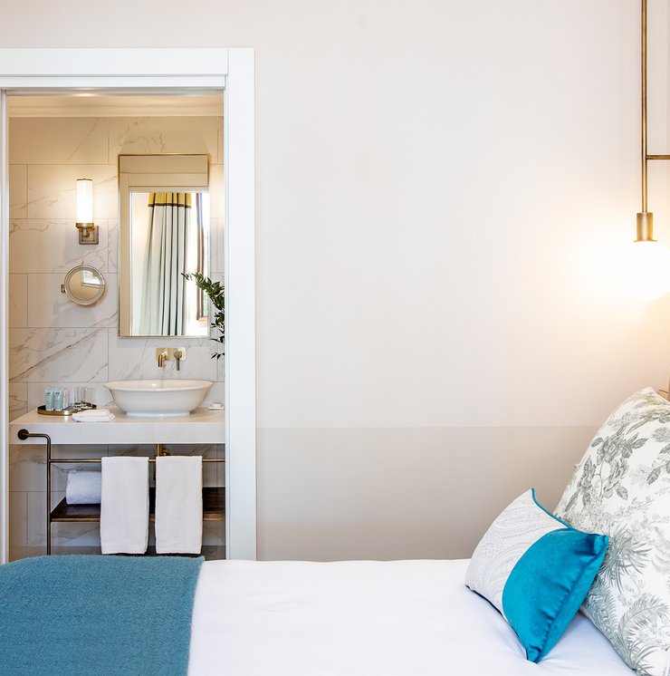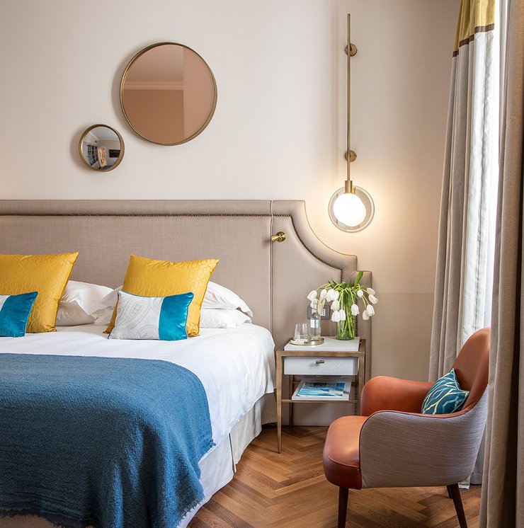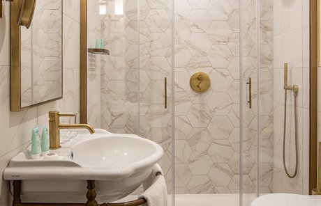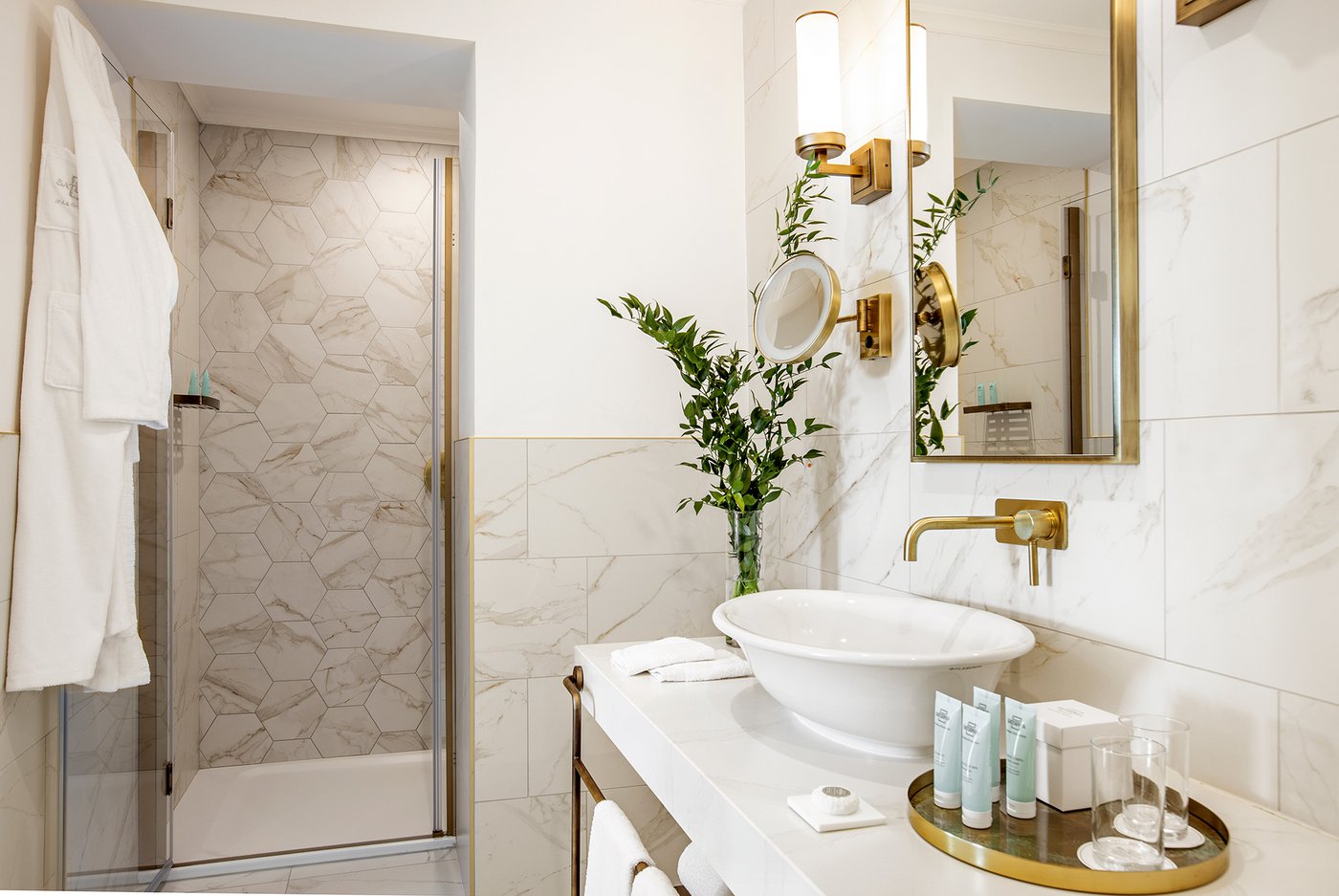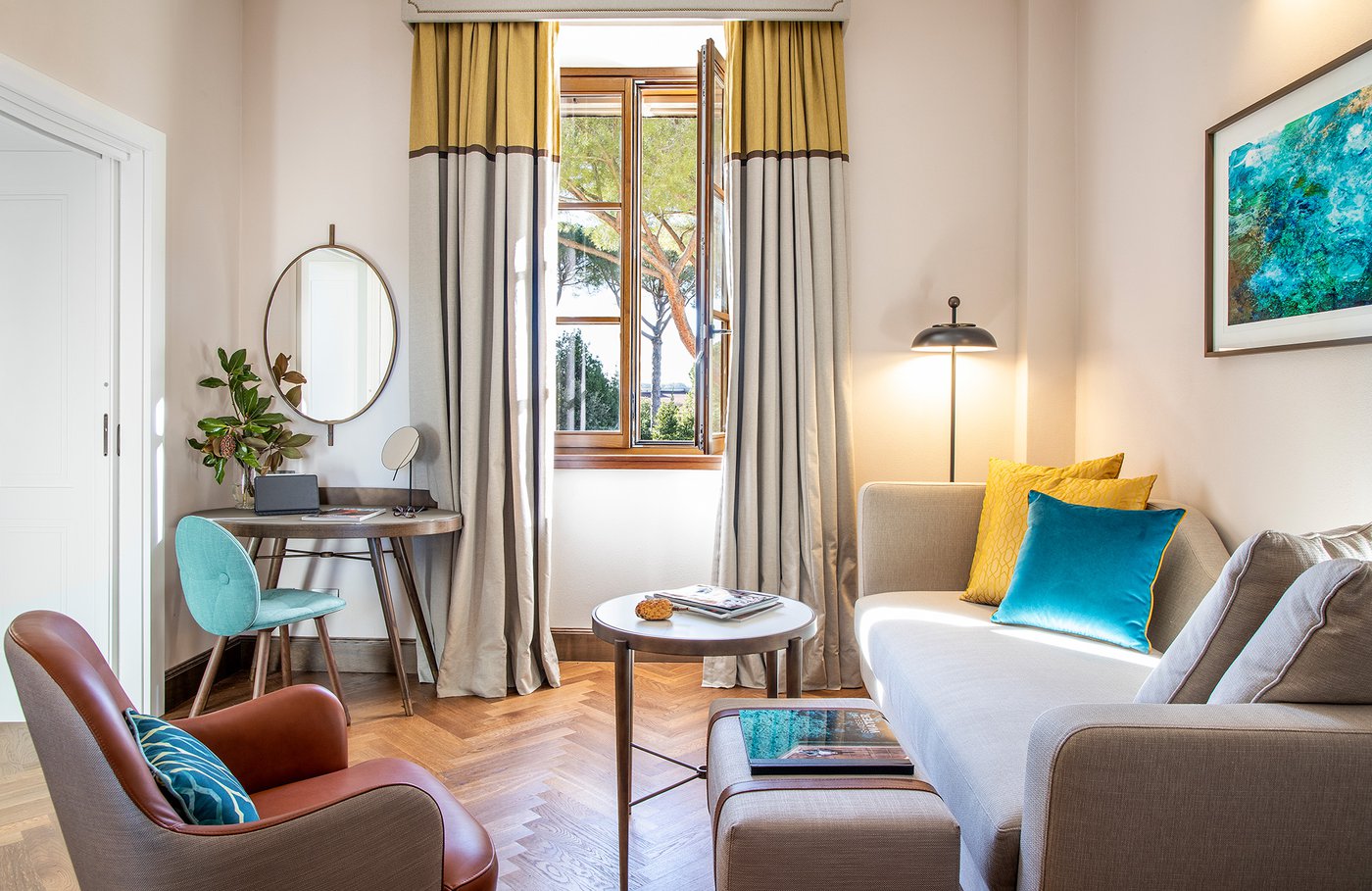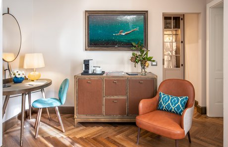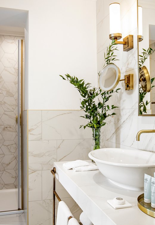 For exclusive yet inviting bedrooms, the choice fell to elegant parquet flooring and the bright marble effect porcelain tiles of Marca Corona: Motif Extra and Motif stoneware flooring and coverings bring a cosy, refined allure and timeless charm to the private bathrooms, turning them into the perfect places to regenerate the body and mind.