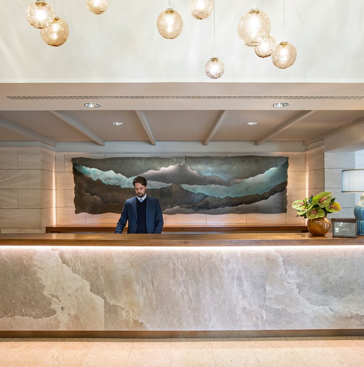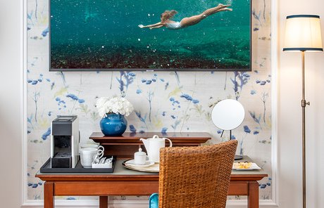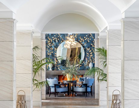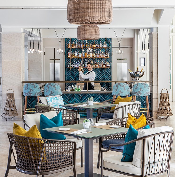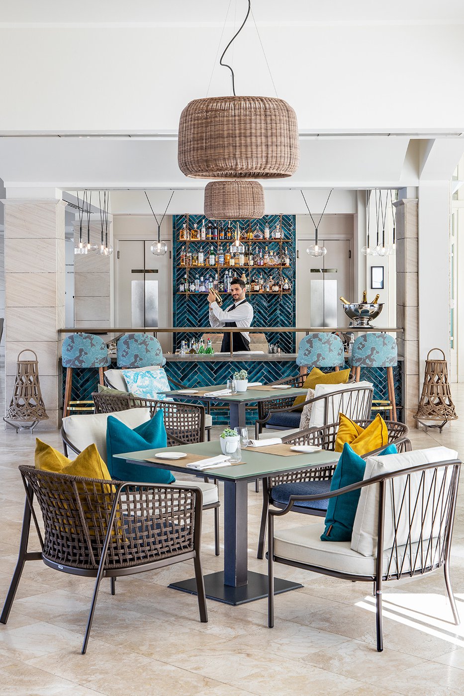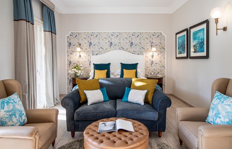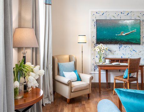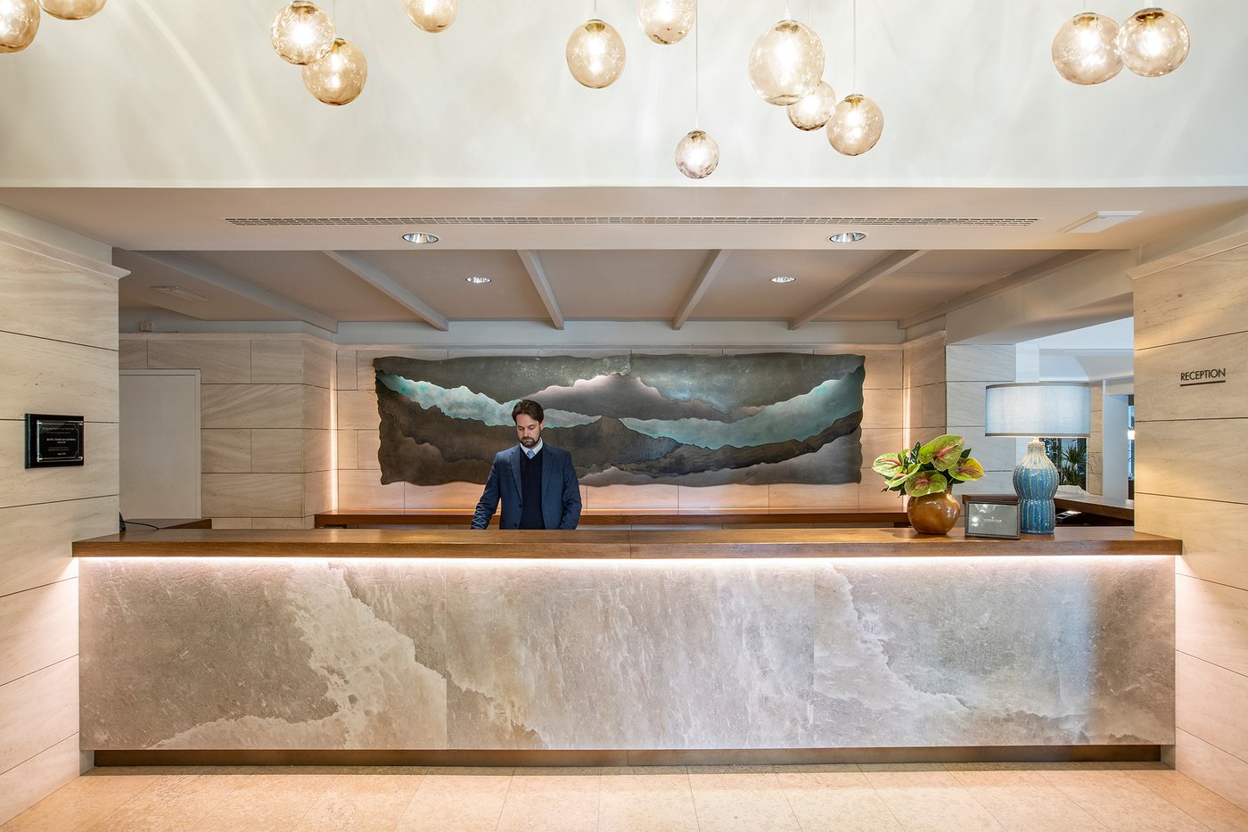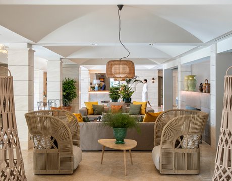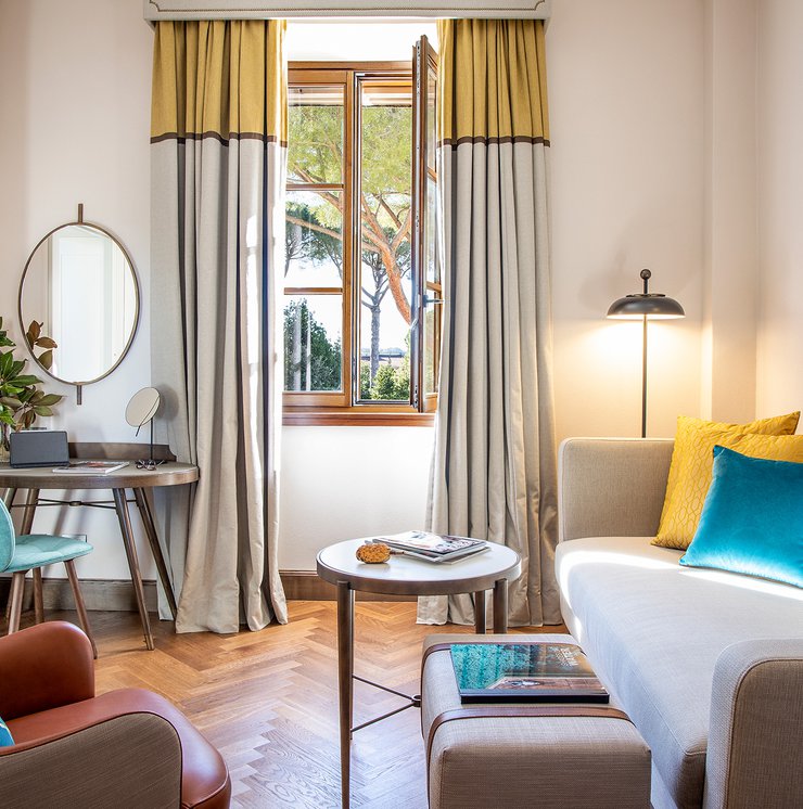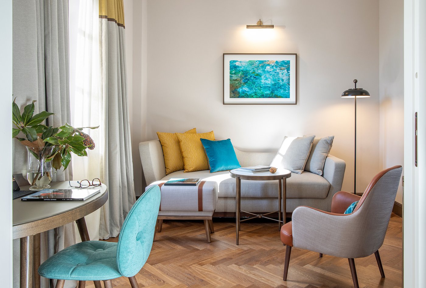 The inspiration came from the surroundings and the interior and exterior design features a palette of natural, revitalising colours, ranging from cool tones of sea blue through to olive green and bright beige. The hall, the restaurants, the library and the private suites are marked by graceful shapes, soft seats and fabrics and artisan furnishings crafted in wood and metal, all designed to spoil guests during their relaxing stay.