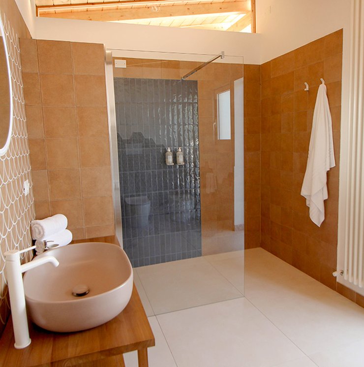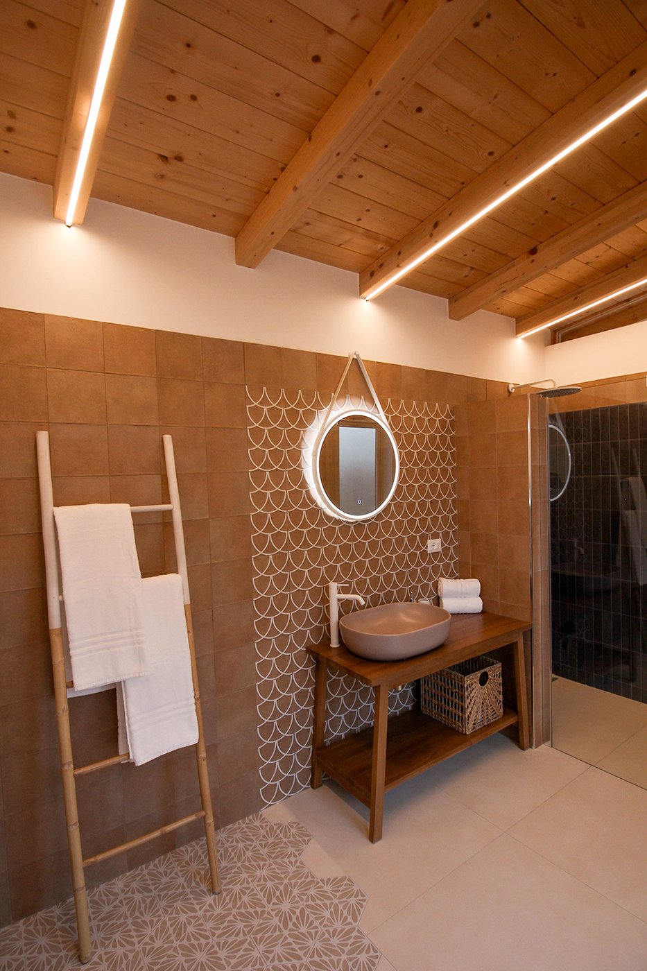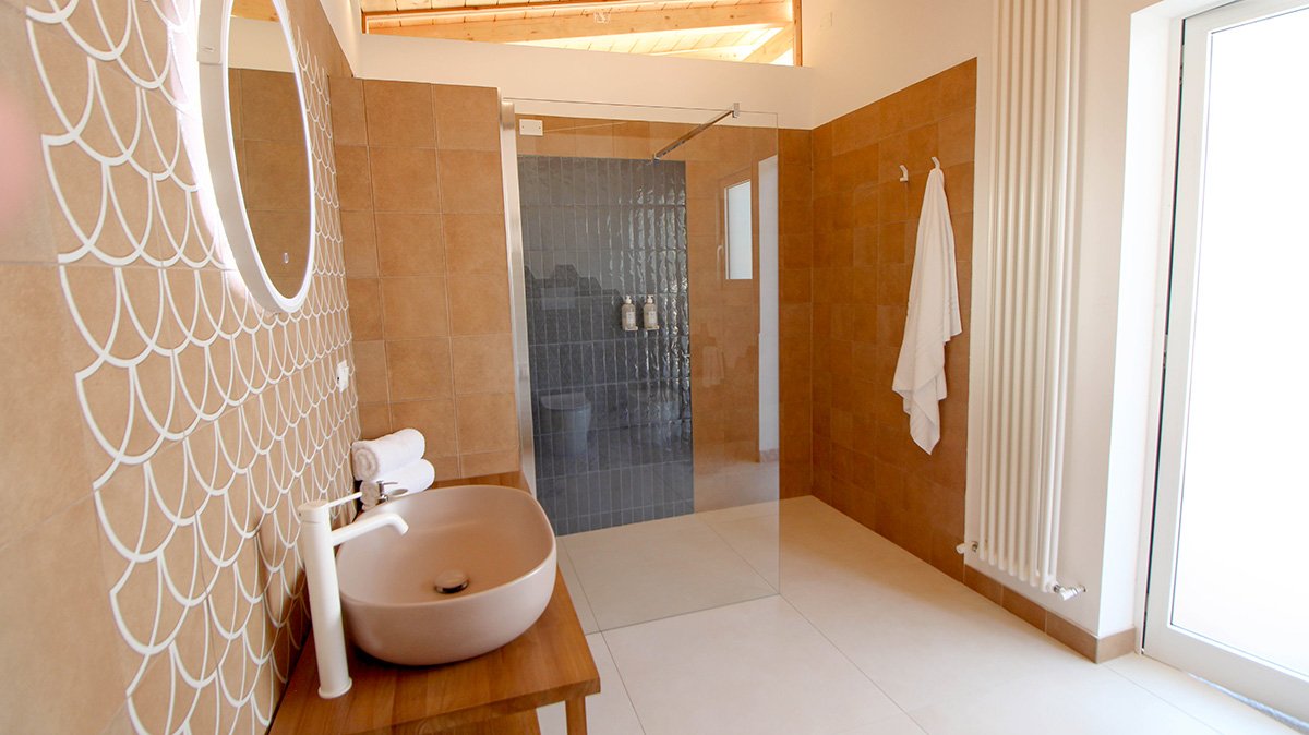 The use of Marca Corona ceramics ensures durability, easy maintenance, and an aesthetic in authentic dialogue with nature. Every detail makes the stay unforgettable in the harmony between environment and design.