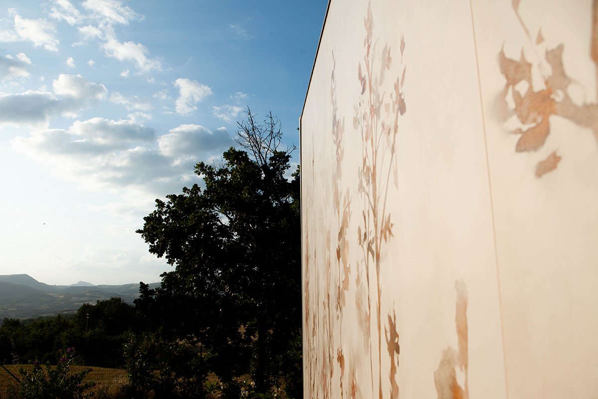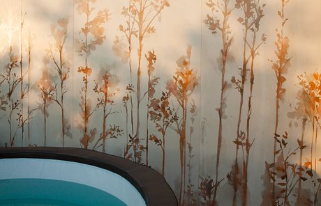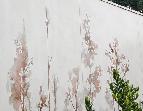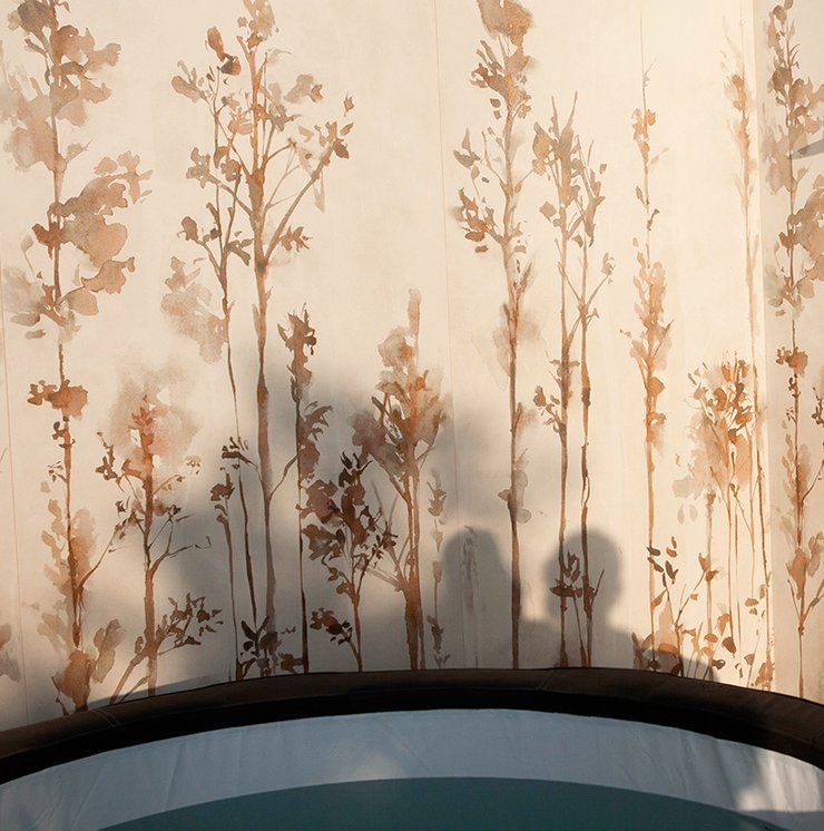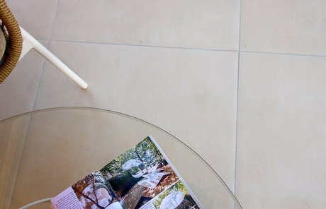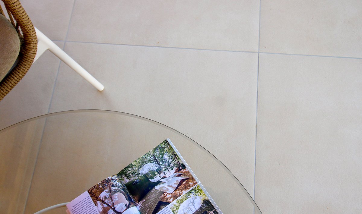 In the outdoor spaces, the Multiforme Dune surfaces create seamless continuity: from Caolino Matt floors to the large botanical slabs Decoro Bosco, up to the structured Tufo textures, ideal for outdoor areas.