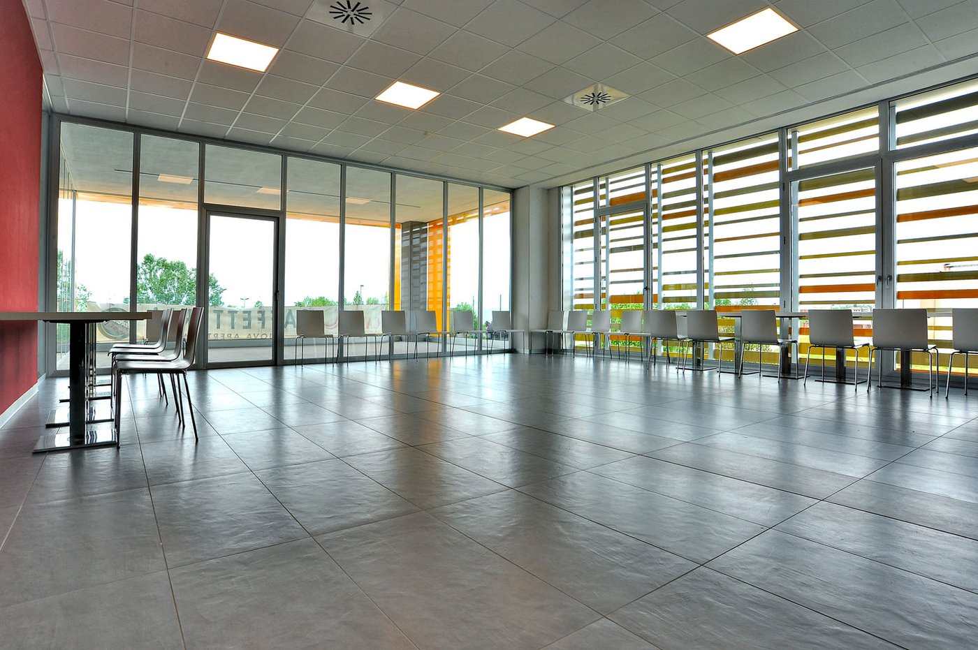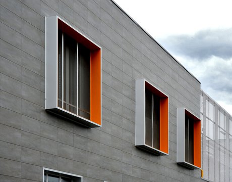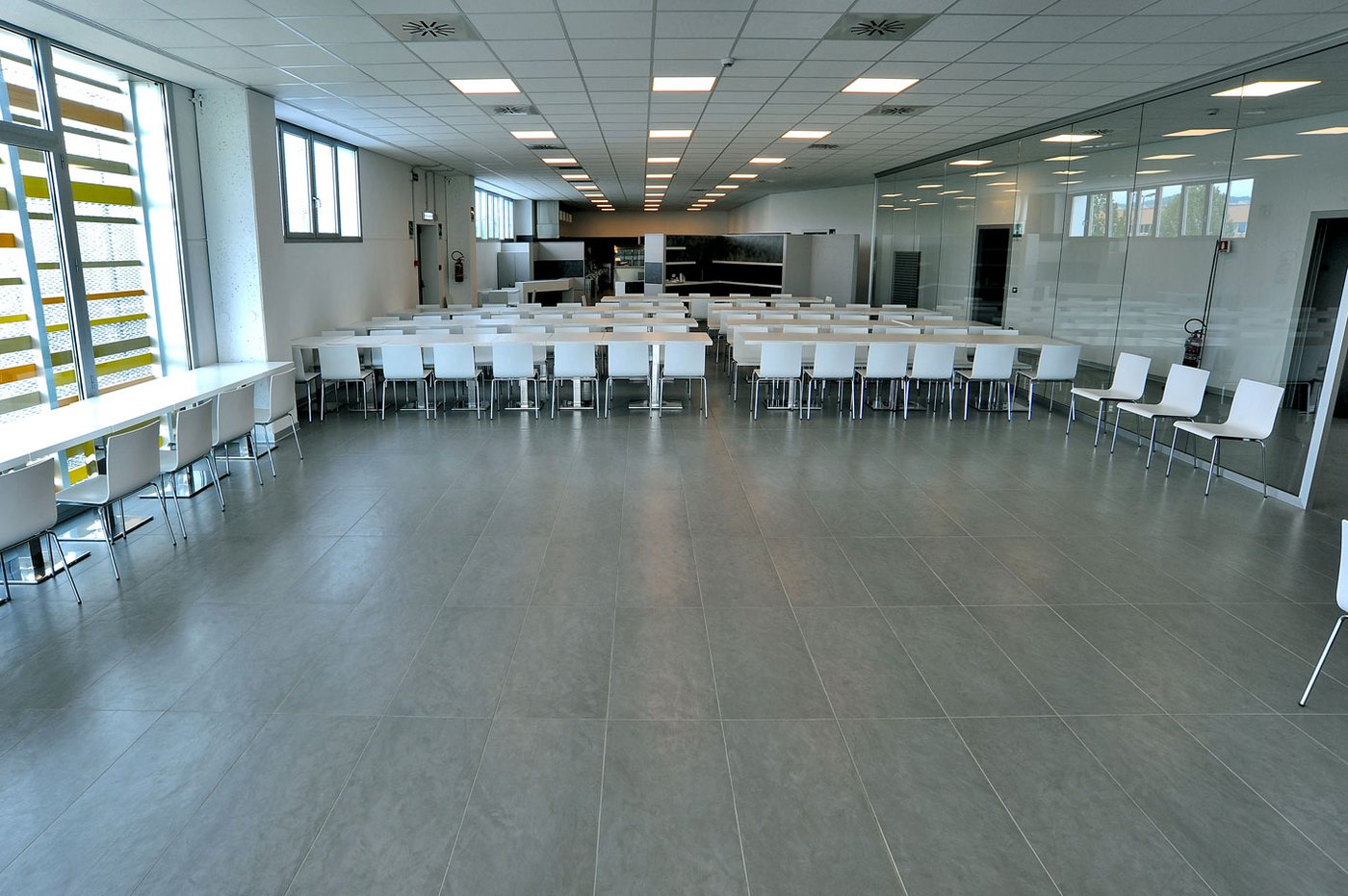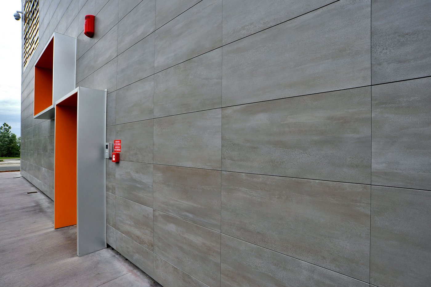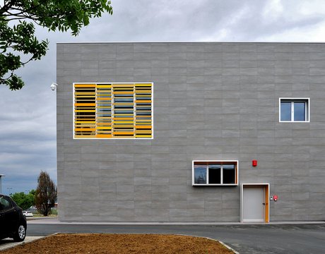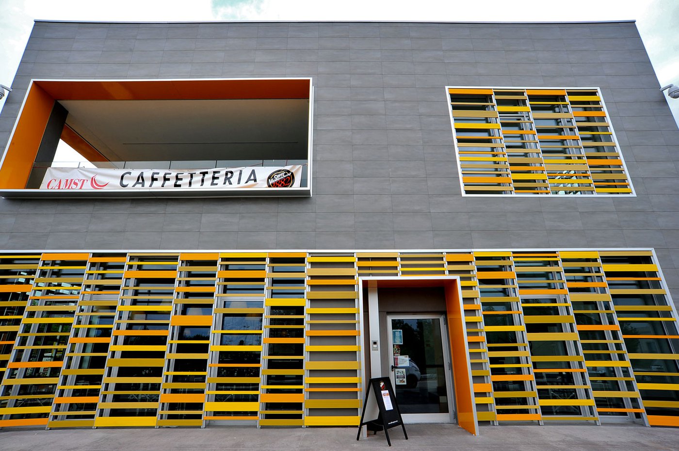 To improve the thermal performance of its new premises near Cuneo, the Camst kitchen chain has opted for an innovative technical solution. The Planet series is used for the facade of the building, part of an efficient system of ventilated walls designed to guarantee maximum functionality without compromising on style, given the pleasant combination between these metal-effect surfaces and the vibrant colours of the exterior door and window frames.