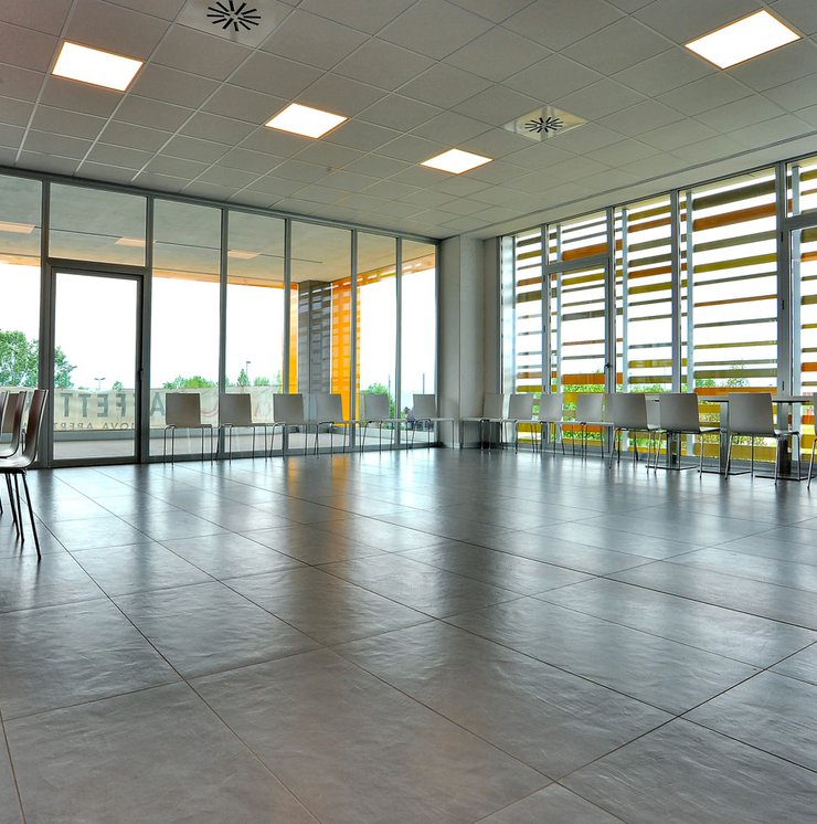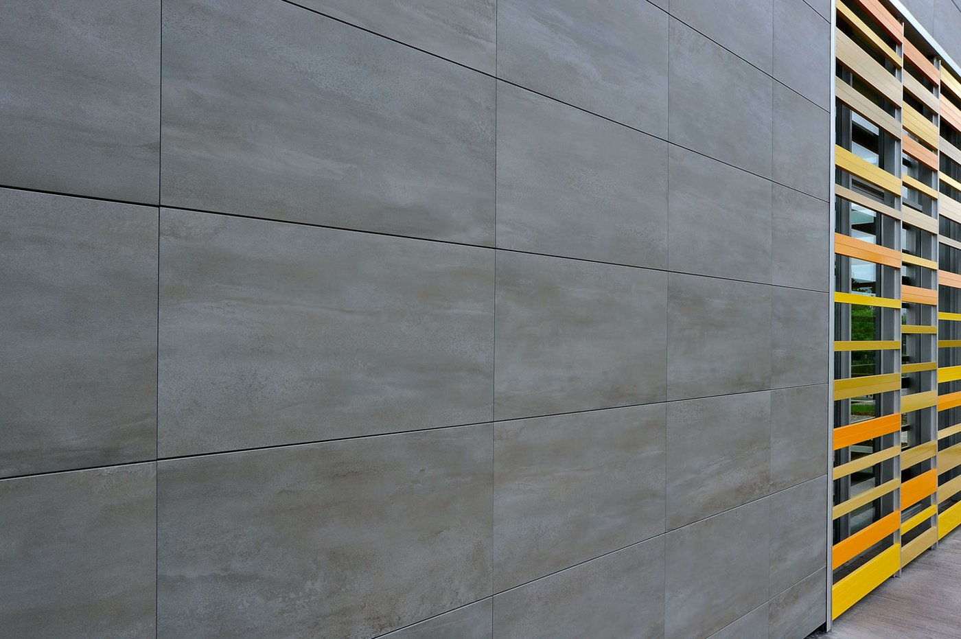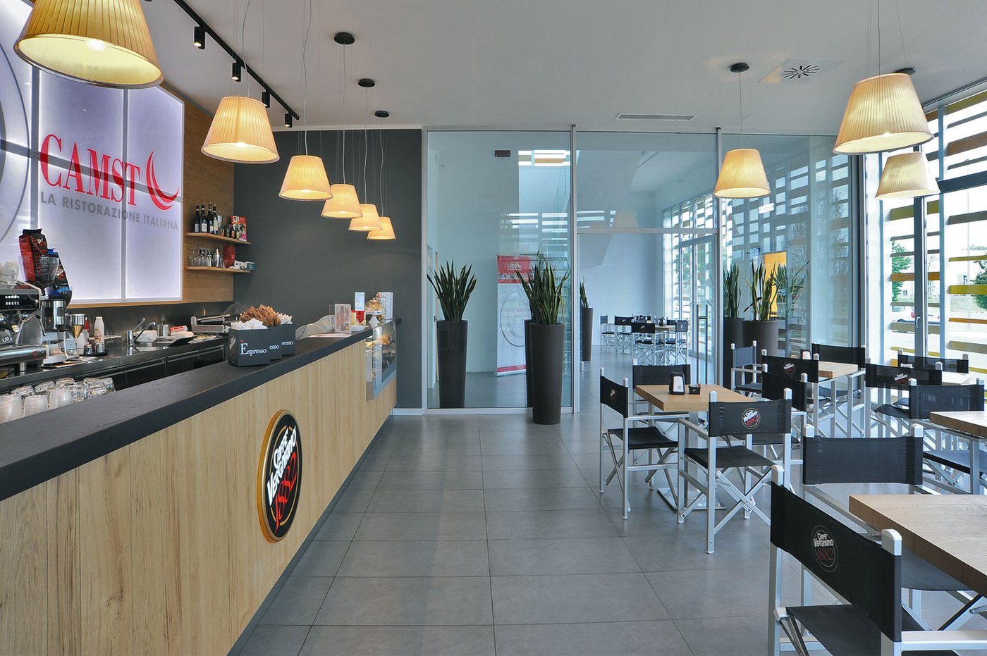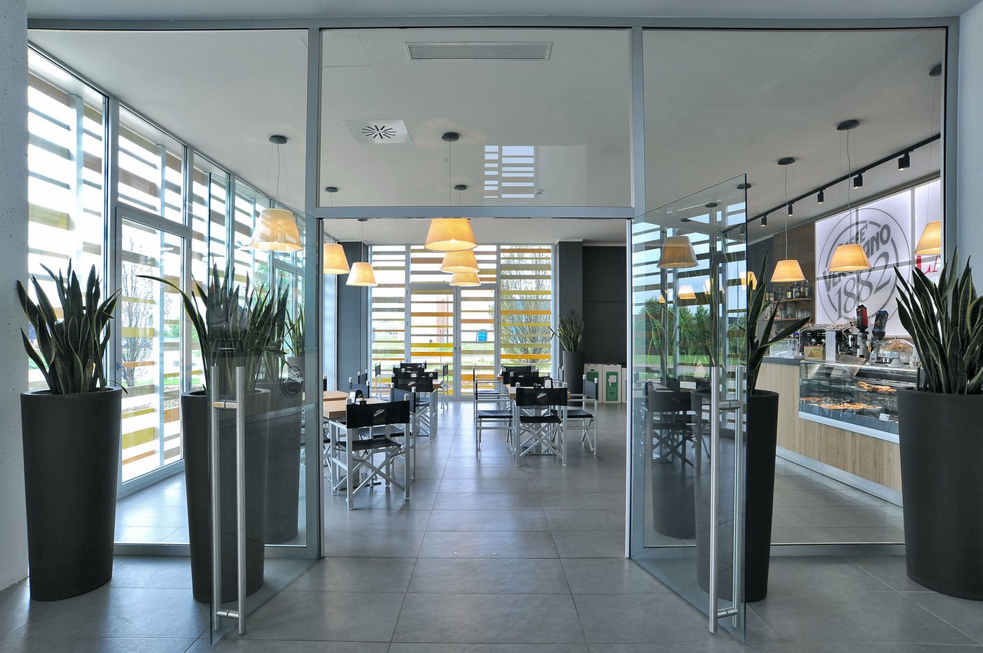 To improve the thermal performance of its new premises near Cuneo, the Camst kitchen chain has opted for an innovative technical solution. The Planet series is used for the facade of the building, part of an efficient system of ventilated walls designed to guarantee maximum functionality without compromising on style, given the pleasant combination between these metal-effect surfaces and the vibrant colours of the exterior door and window frames.