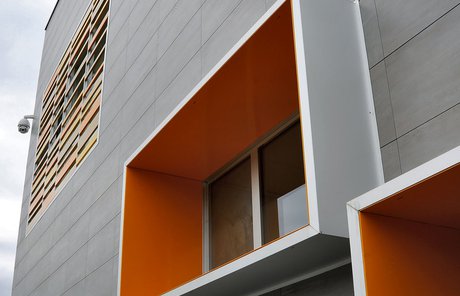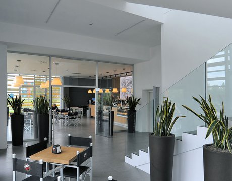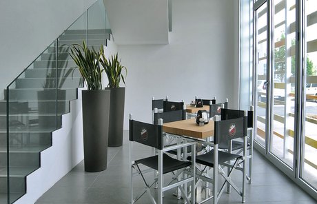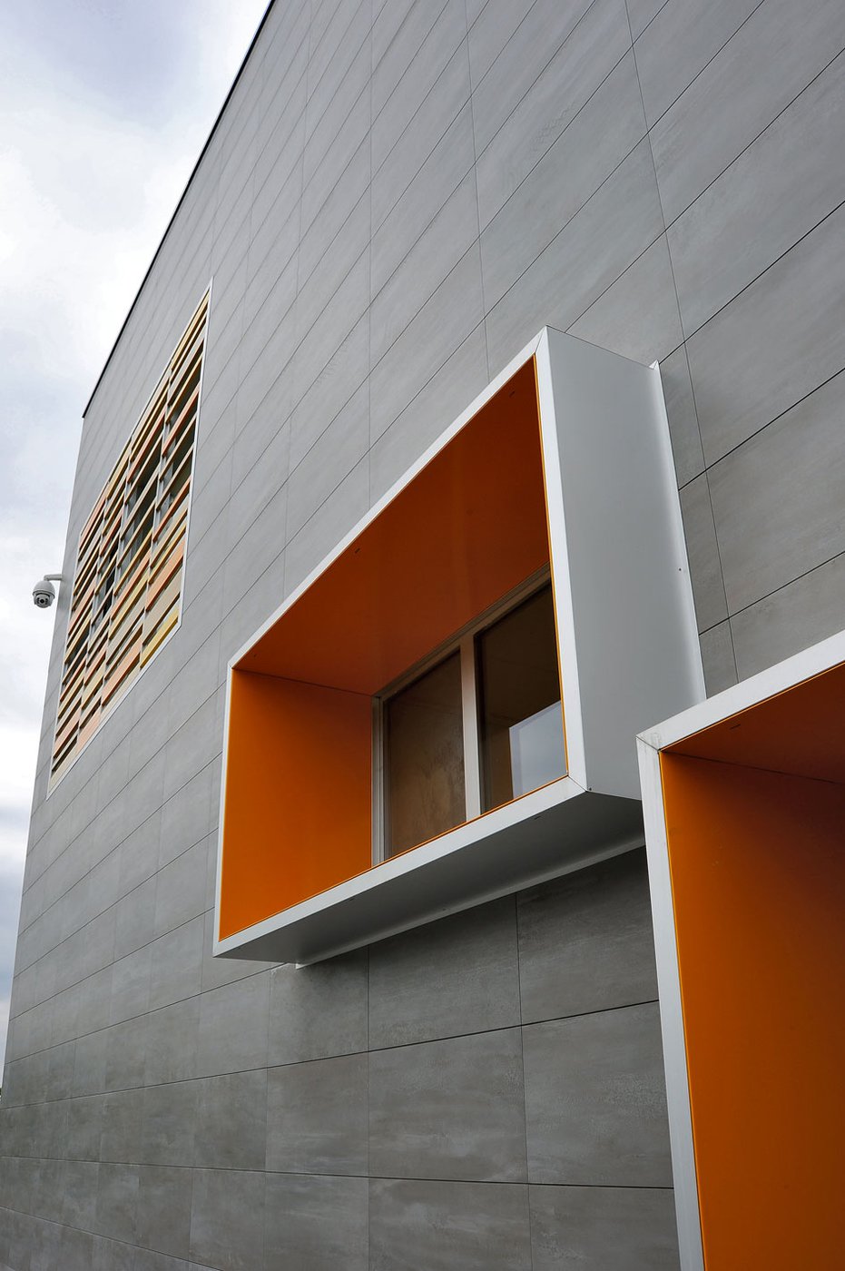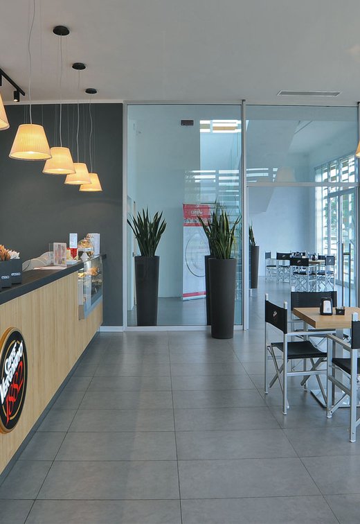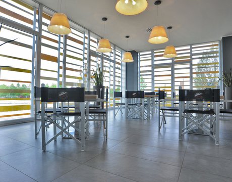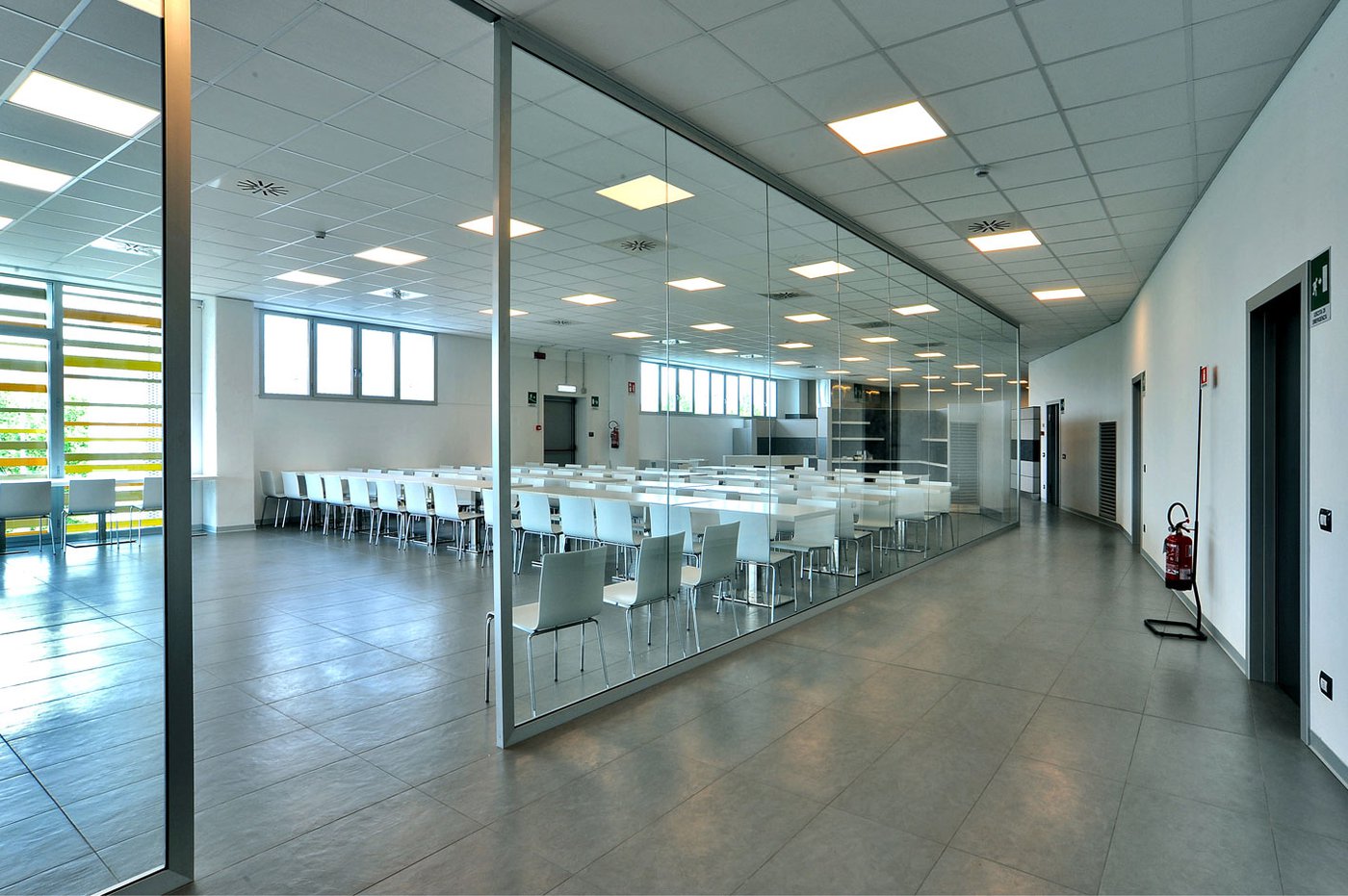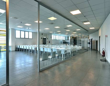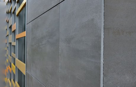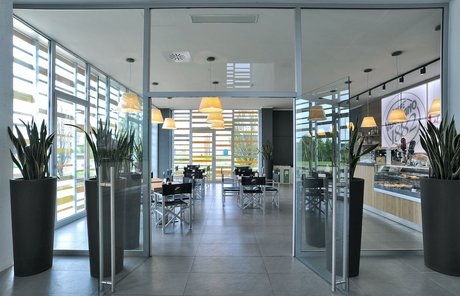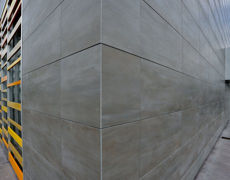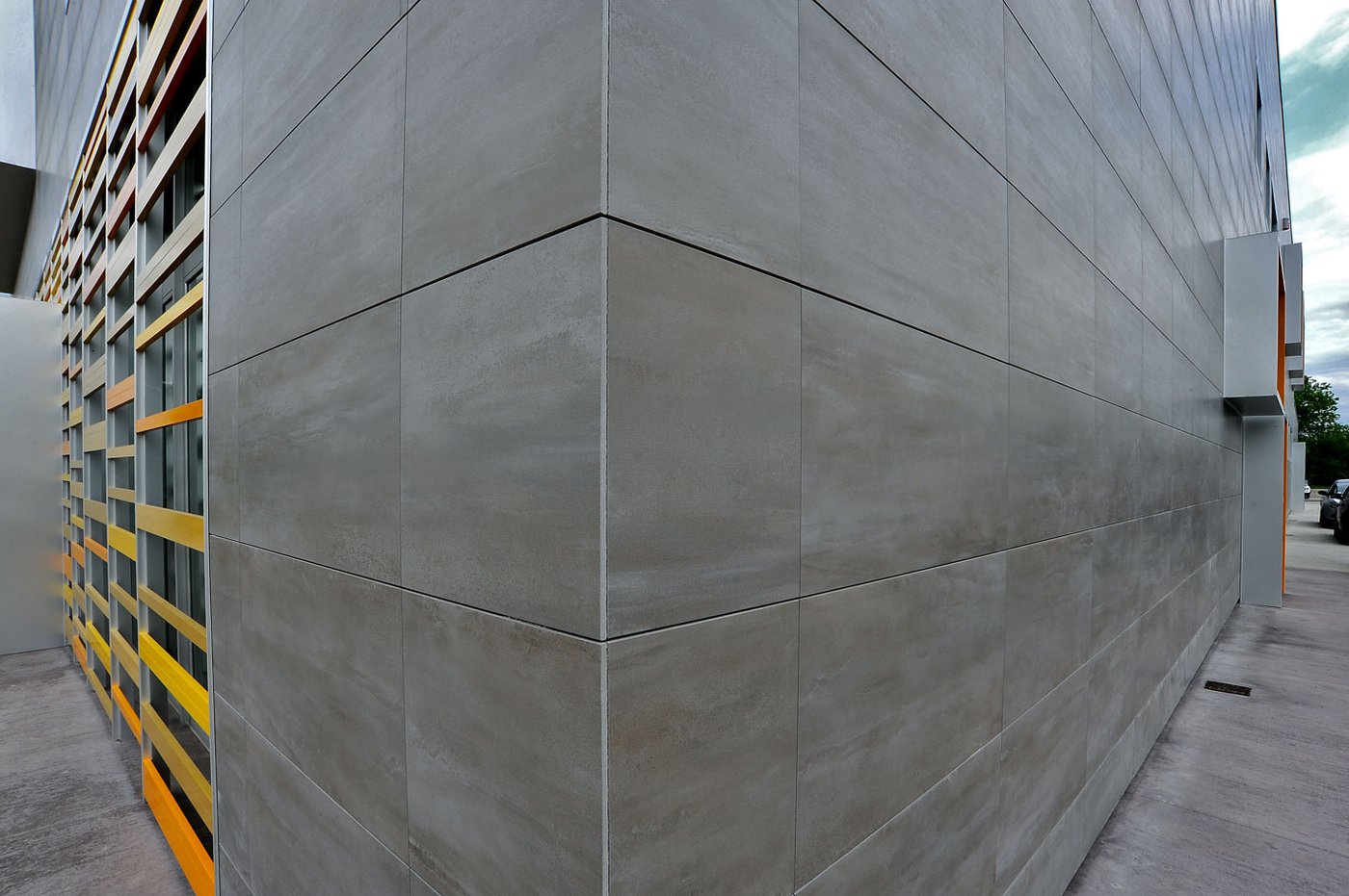 To improve the thermal performance of its new premises near Cuneo, the Camst kitchen chain has opted for an innovative technical solution. The Planet series is used for the facade of the building, part of an efficient system of ventilated walls designed to guarantee maximum functionality without compromising on style, given the pleasant combination between these metal-effect surfaces and the vibrant colours of the exterior door and window frames.