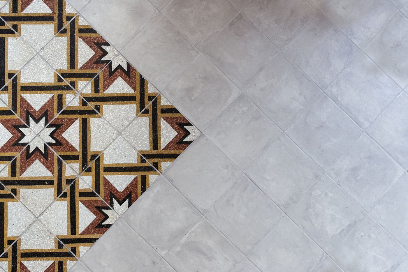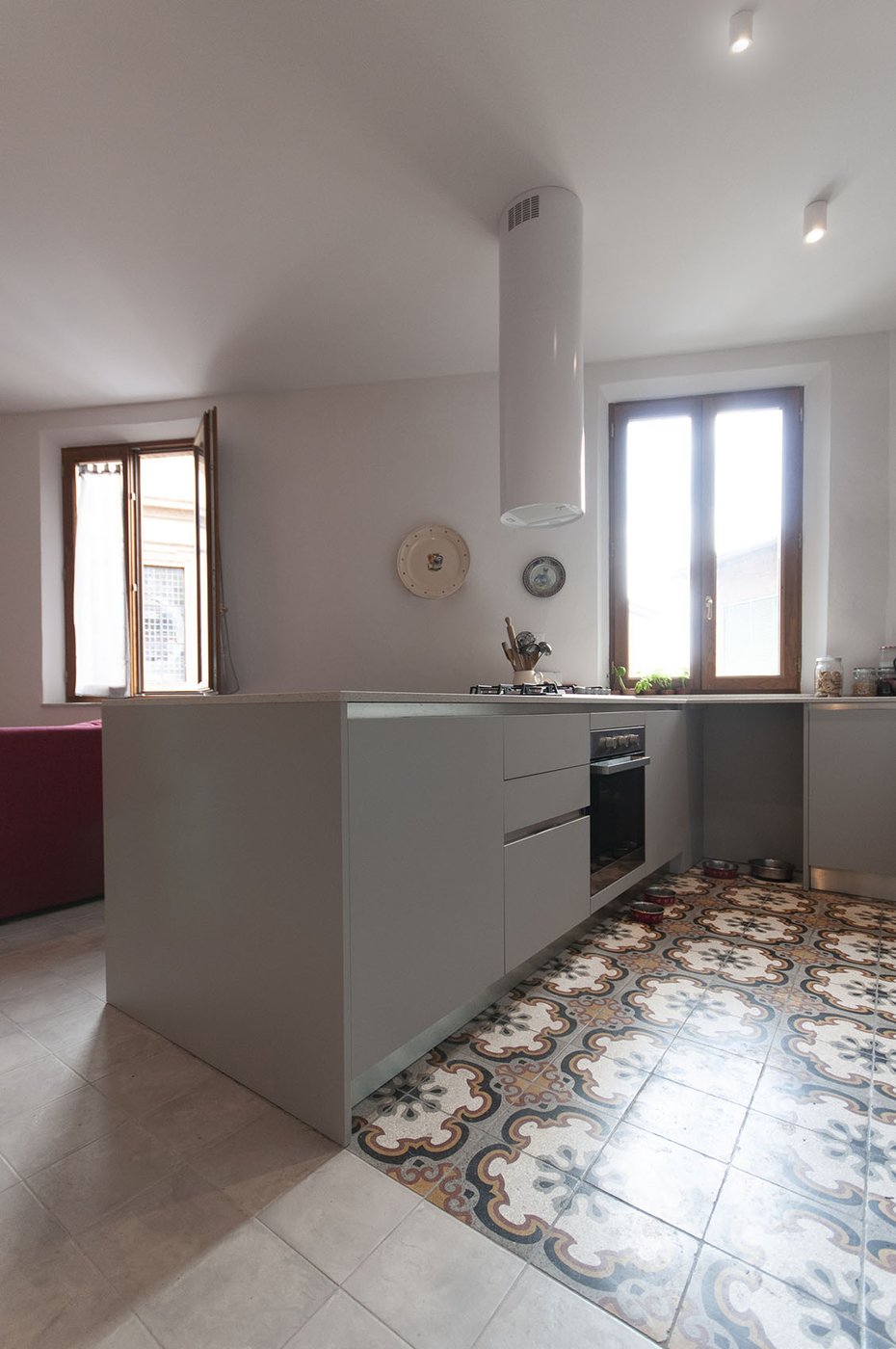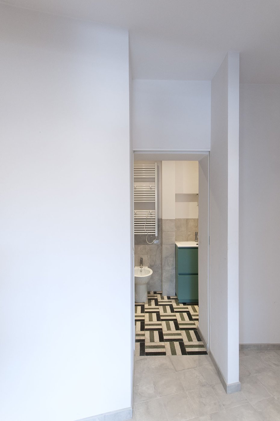 The Vuoto Metrico architectural firm chose to partially recover the grits that made up the original floor and to bring out all their graphic richness by combining them with Terra cotto-effect encaustic tiles, selected in the black and grey single-colour version to embellish and redesign the floor tiling throughout the home.