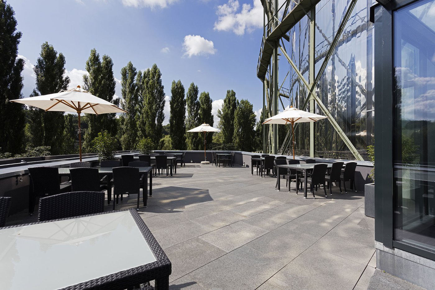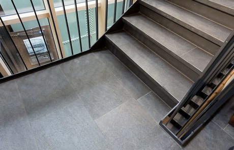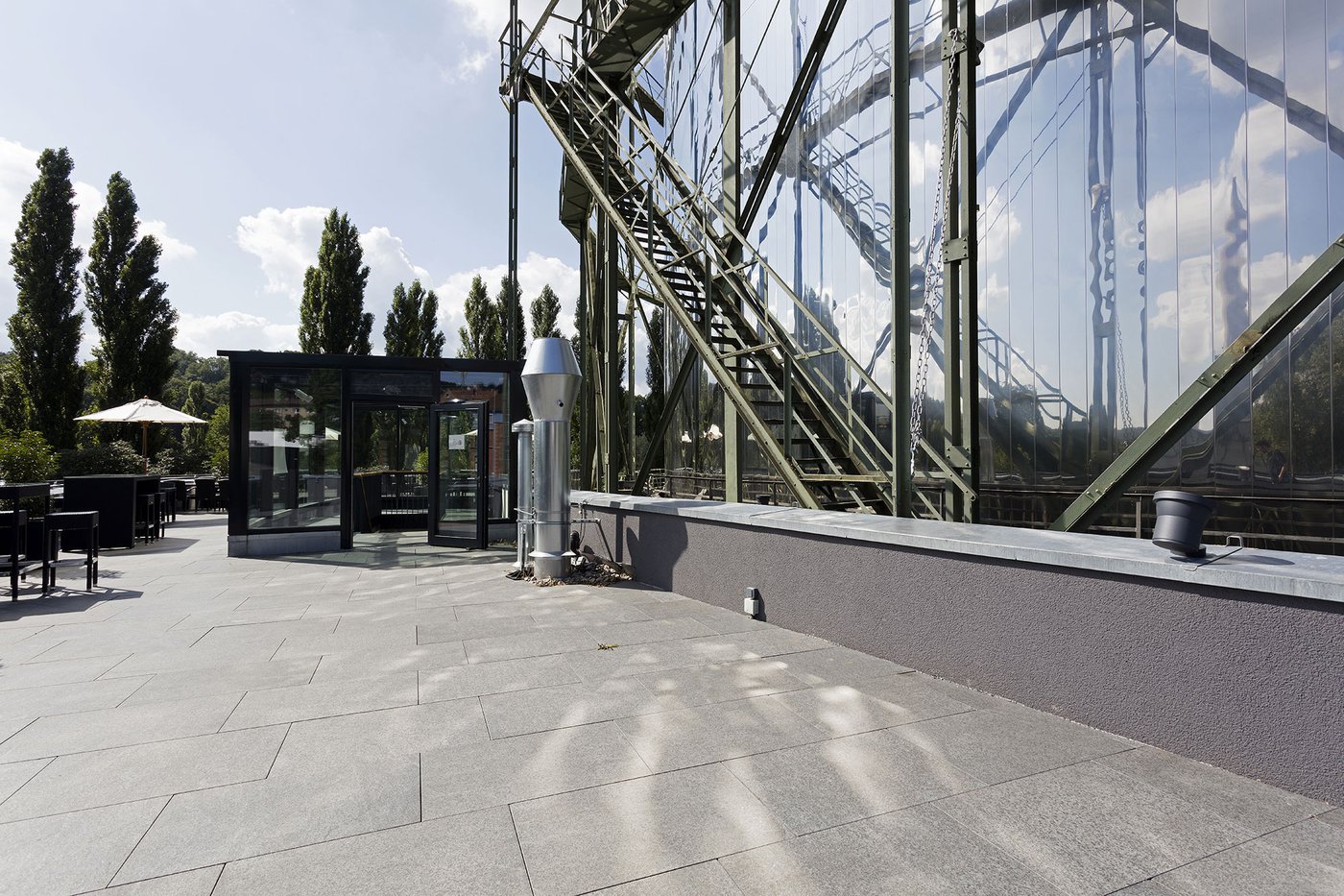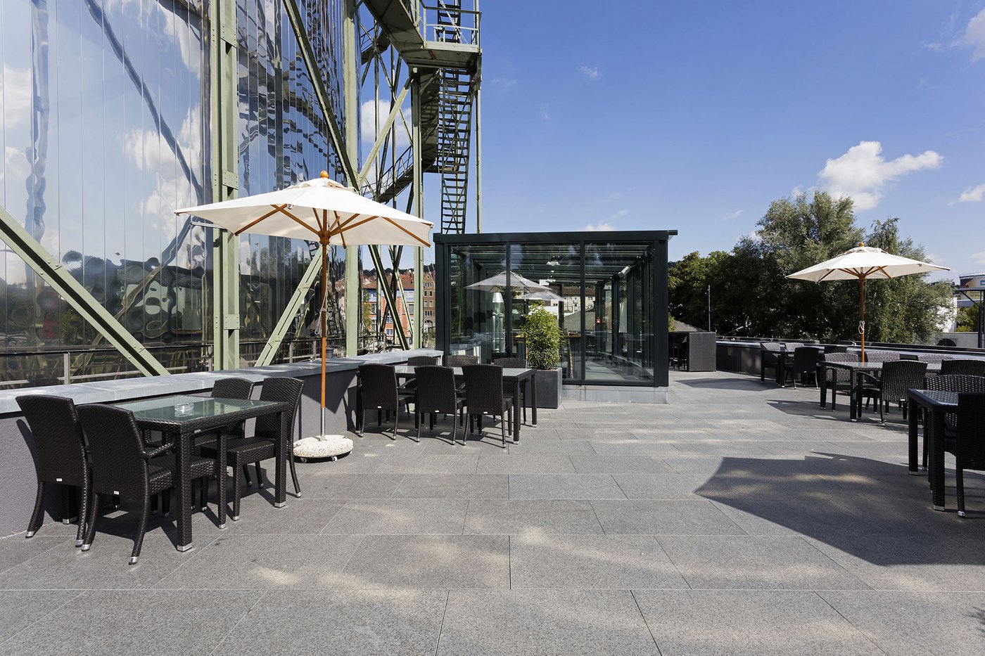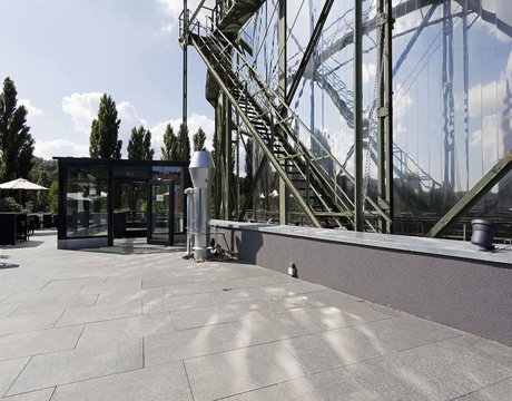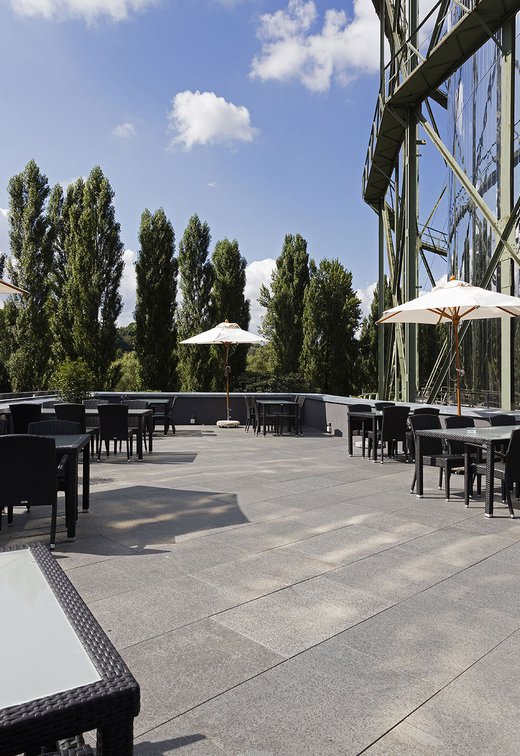 Gasometer Pforzheim brand-new exhibition centre in Pforzheim is composed of numerous hi-tech rooms and a spacious outdoor terrace measuring over 300 square metres, where visitors can relax and enjoy the odd sunny day. This pleasant outdoor area is tiled with the Universe stone tiles series, in the extra-thick Beige variant. This 20 mm stone-effect paving is the ideal solution for the cold German climate and to guarantee the safety of the numerous visitors to the facility.