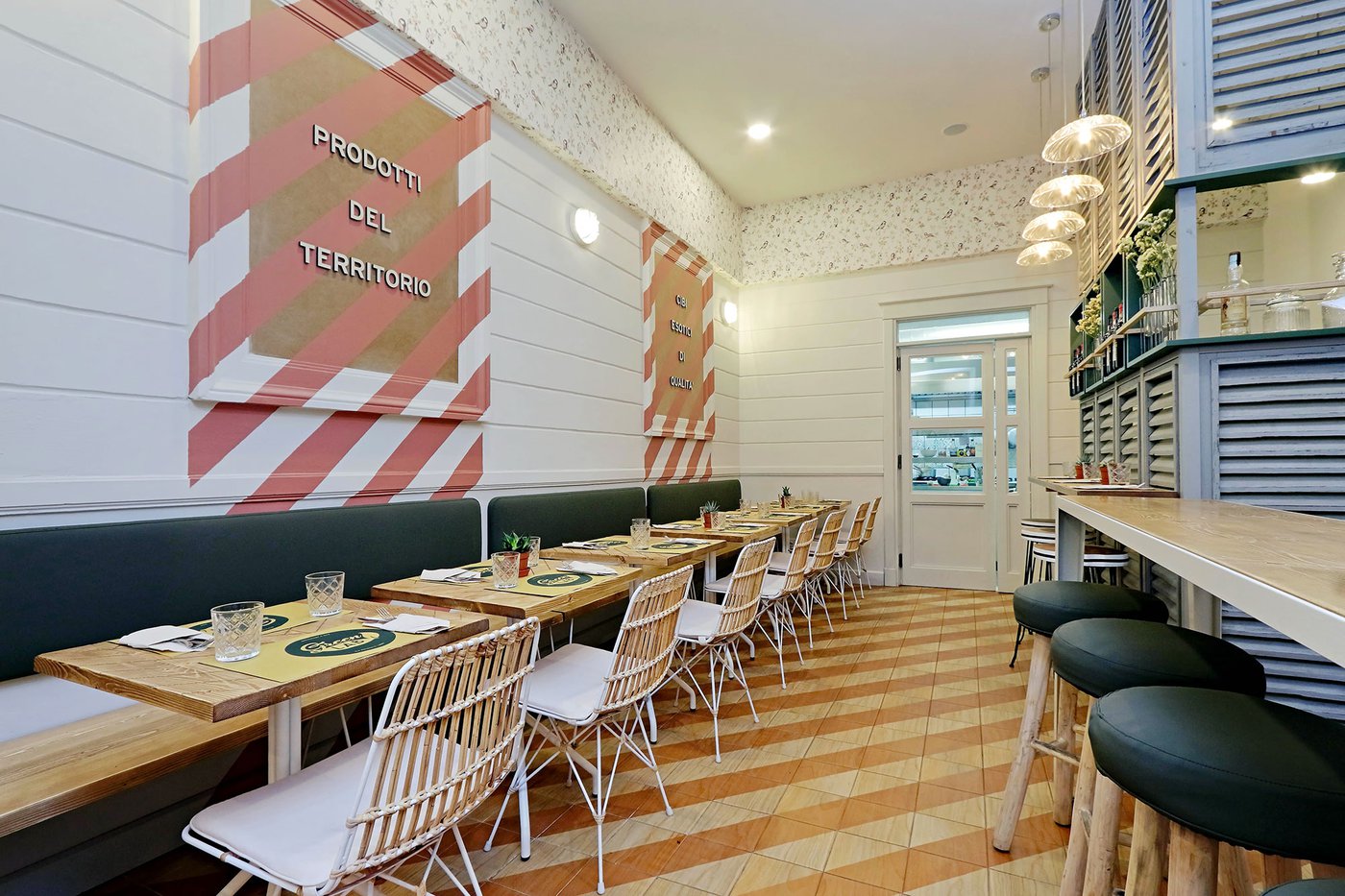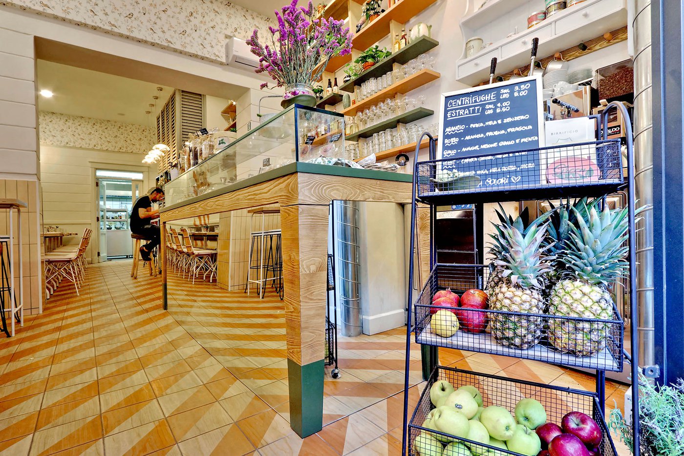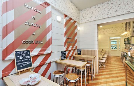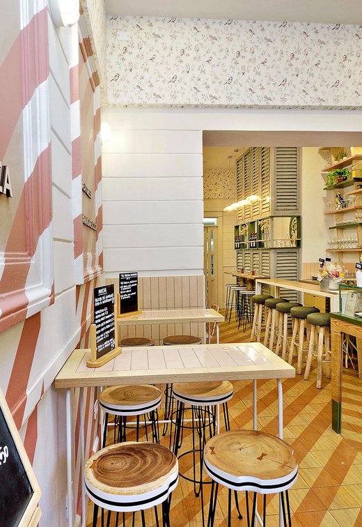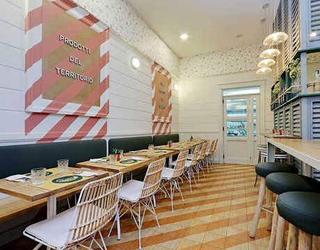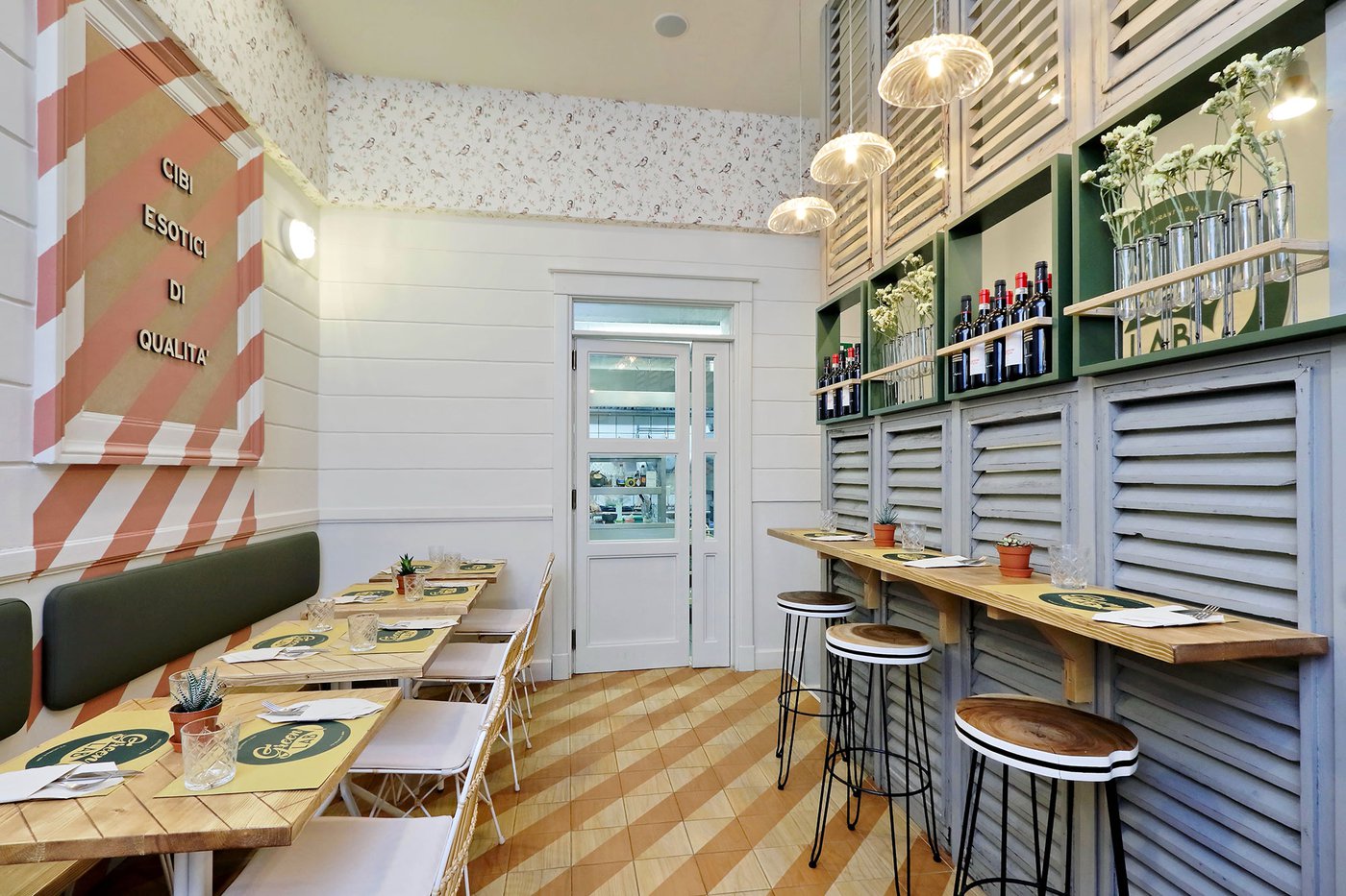 Green Lab is an innovative, authentic eaterie, with a welcoming, retro atmosphere and room for 35 guests. Out of a love for nature and attention to detail, the choice here fell to Essences, the splendid wood effect ceramic tiles coverings in the 1741 line. The cedarwood look and the original two-tone decoration engage smoothly with the low-key, on-trend colours of the walls and the seating, creating a pleasant geometric effect on the floor.