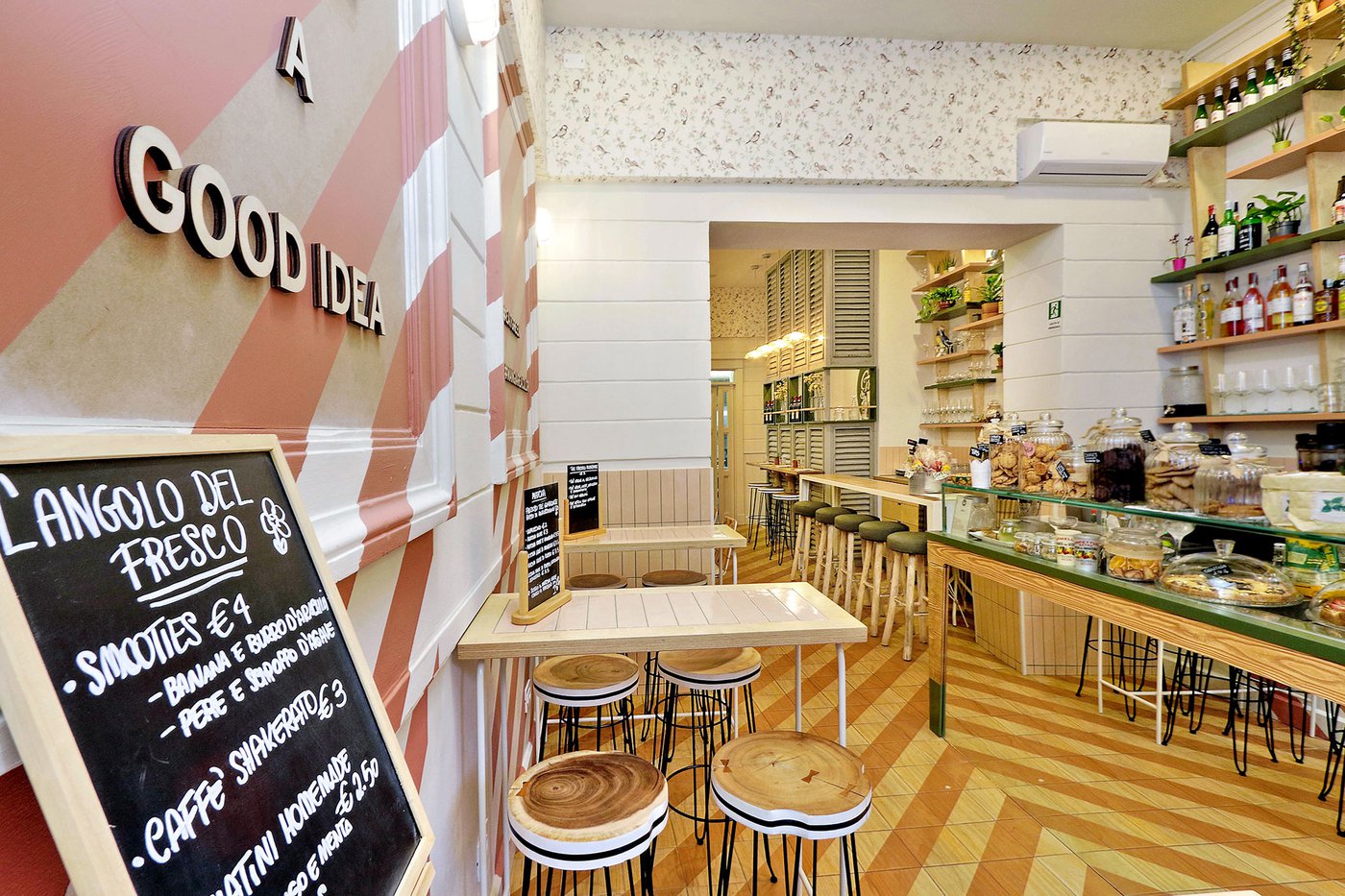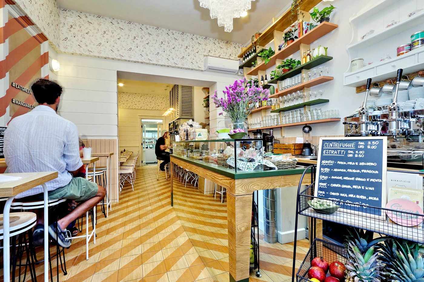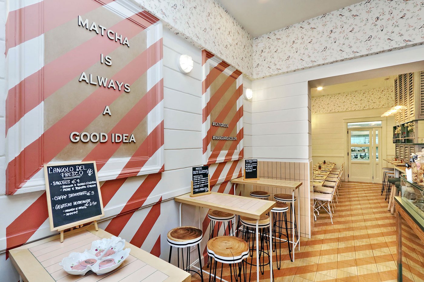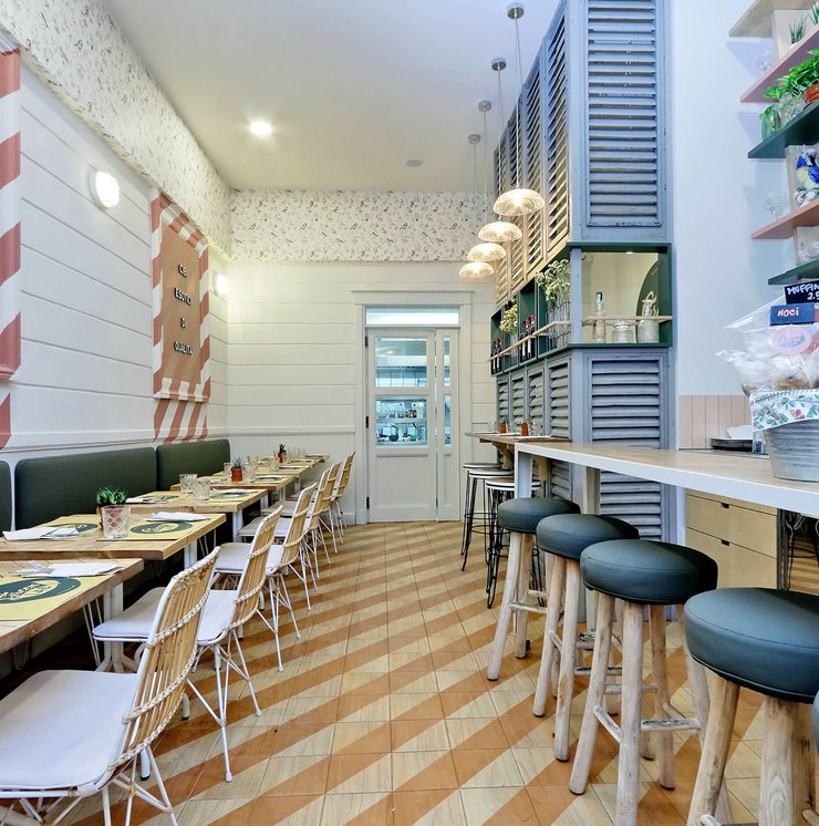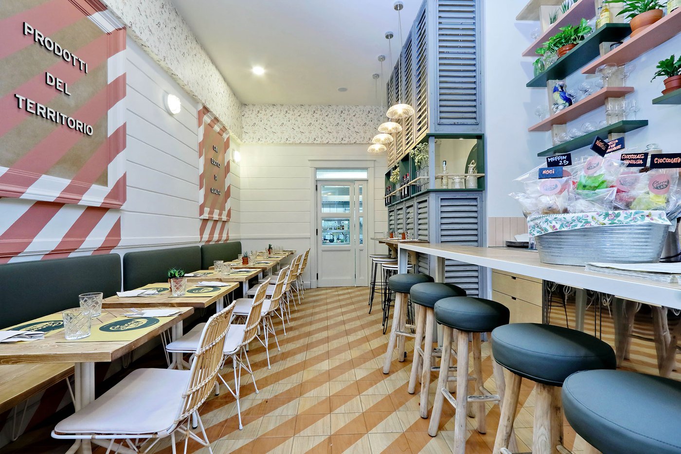 Green Lab is an innovative, authentic eaterie, with a welcoming, retro atmosphere and room for 35 guests. Out of a love for nature and attention to detail, the choice here fell to Essences, the splendid wood effect ceramic tiles coverings in the 1741 line. The cedarwood look and the original two-tone decoration engage smoothly with the low-key, on-trend colours of the walls and the seating, creating a pleasant geometric effect on the floor.