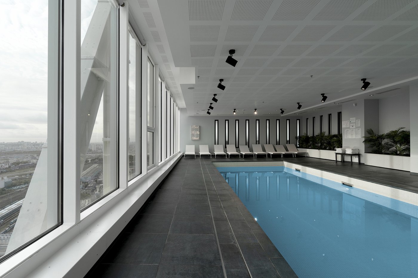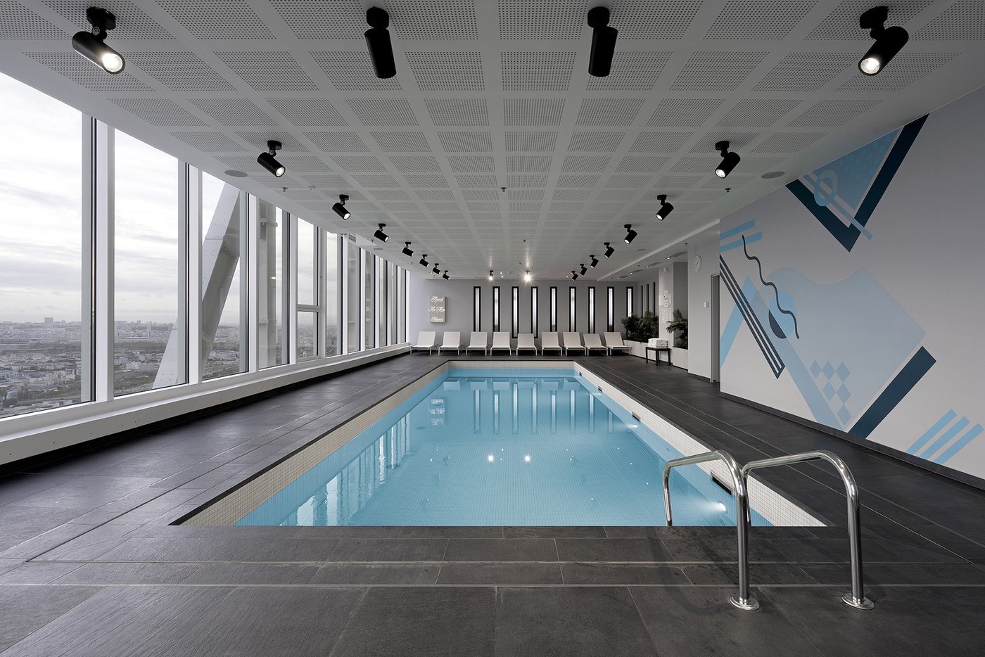 Located in the Saint-Denis quarter, the H4 Hotel Wyndham Paris Pleyel project has involved a major architectural transformation: the Pleyel tower (144 metres high) has been converted into a hotel complex with public spaces, spa, sky bar and congress areas.