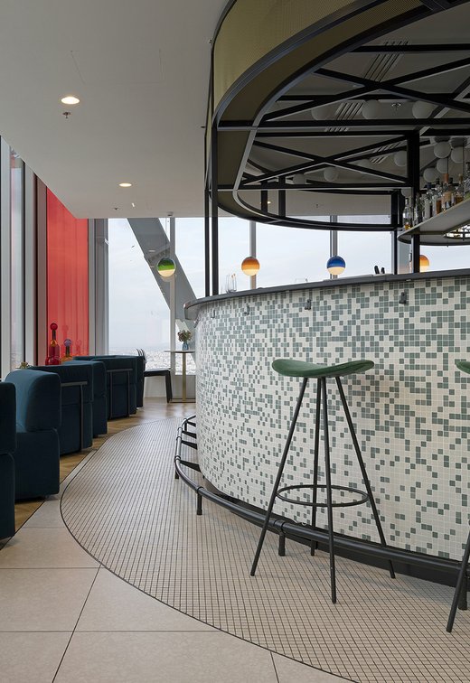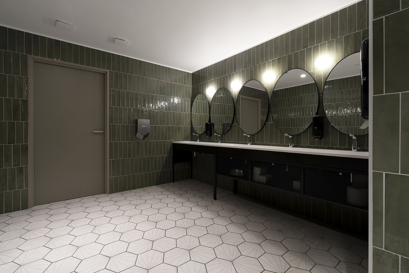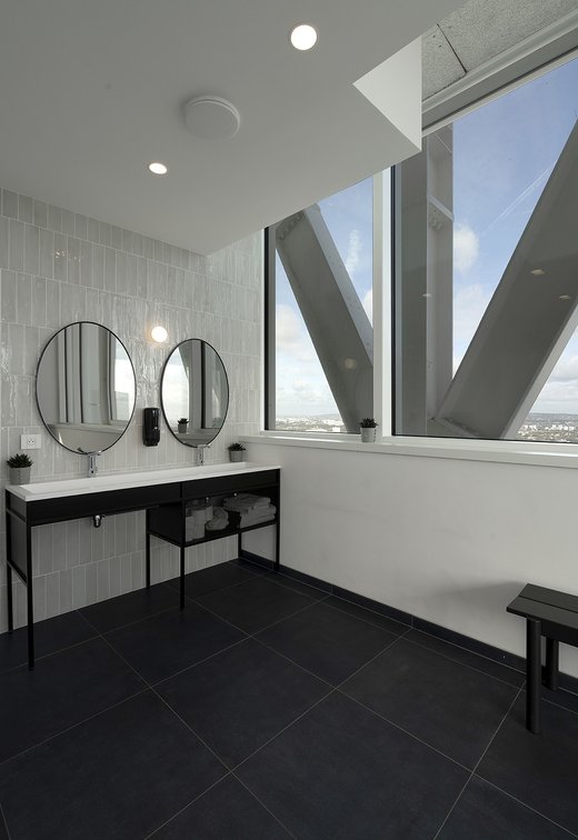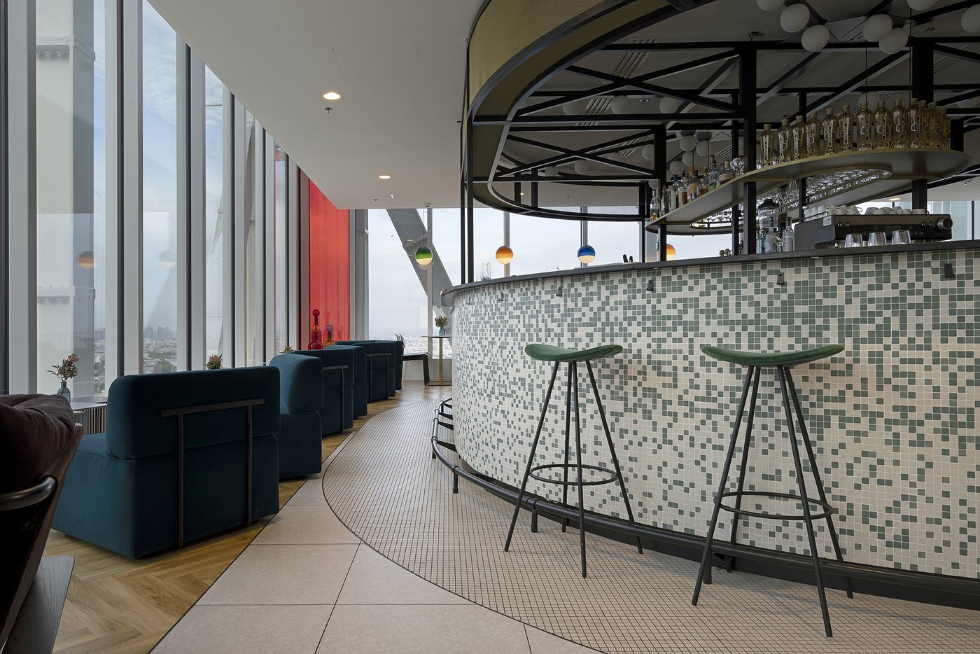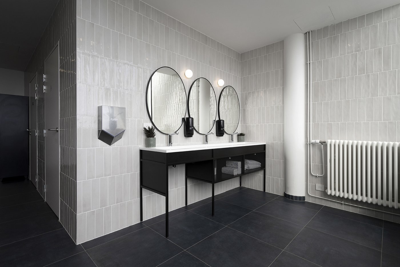 The design concept combines verticality with light-filled, fluid interiors, prioritising the visual experience and contact with the panorama across Paris. The Marca Corona ceramic surfaces were chosen for their versatility, as they are versatile in materials and sizes and able to adapt to vertical and horizontal spaces and damp areas.