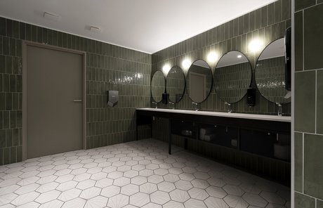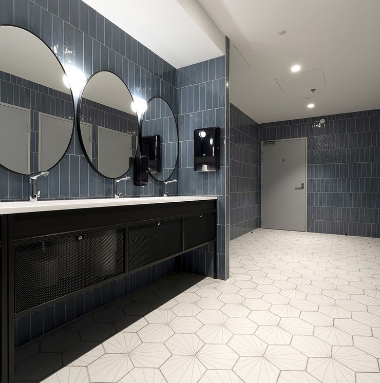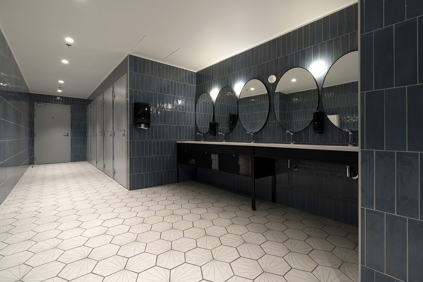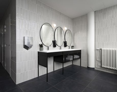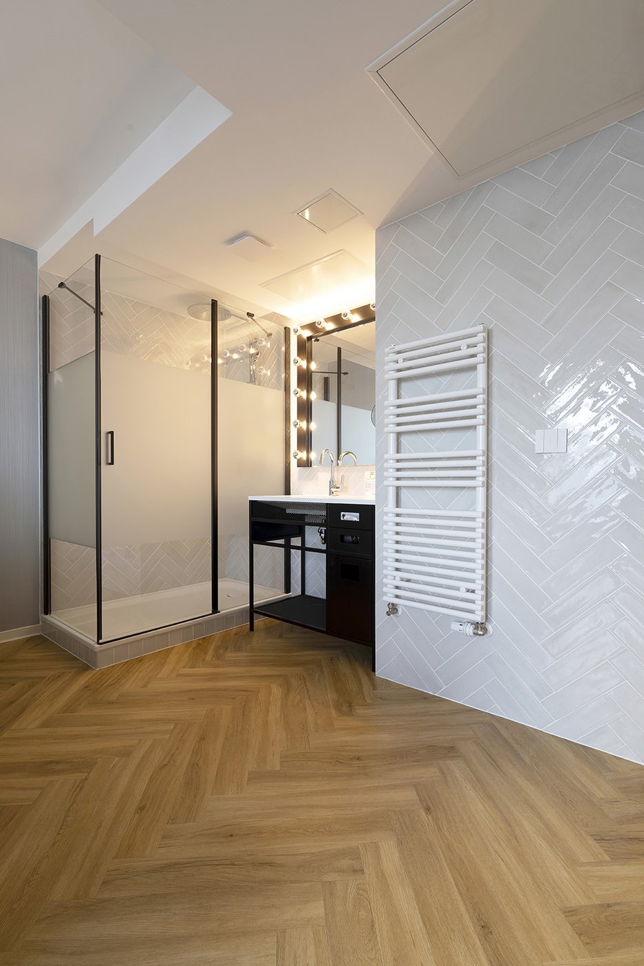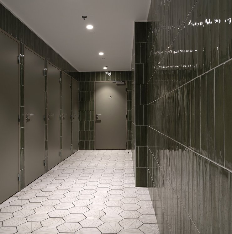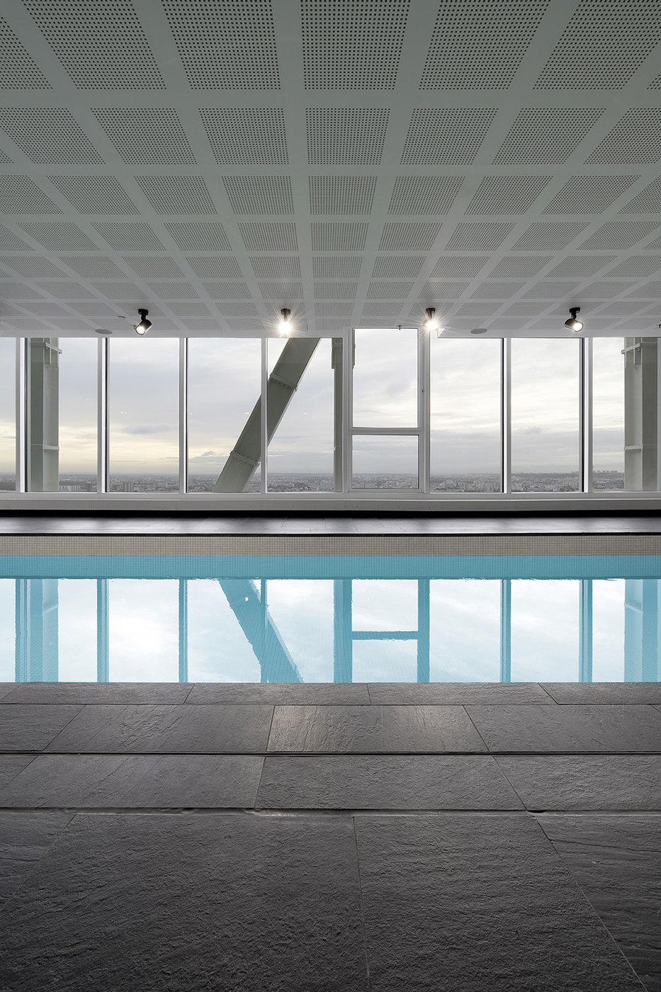 The design concept combines verticality with light-filled, fluid interiors, prioritising the visual experience and contact with the panorama across Paris. The Marca Corona ceramic surfaces were chosen for their versatility, as they are versatile in materials and sizes and able to adapt to vertical and horizontal spaces and damp areas.
