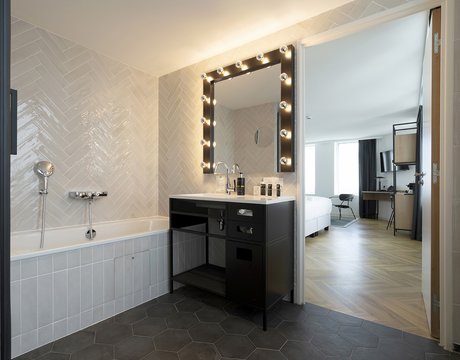 With about 20,000 m² of Marca Corona materials installed, the project sets a contemporary benchmark for high-density urban hospitality, integrating Italian ceramic excellence into the Parisian architectural context.