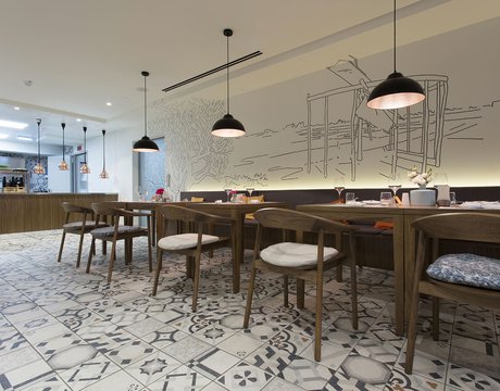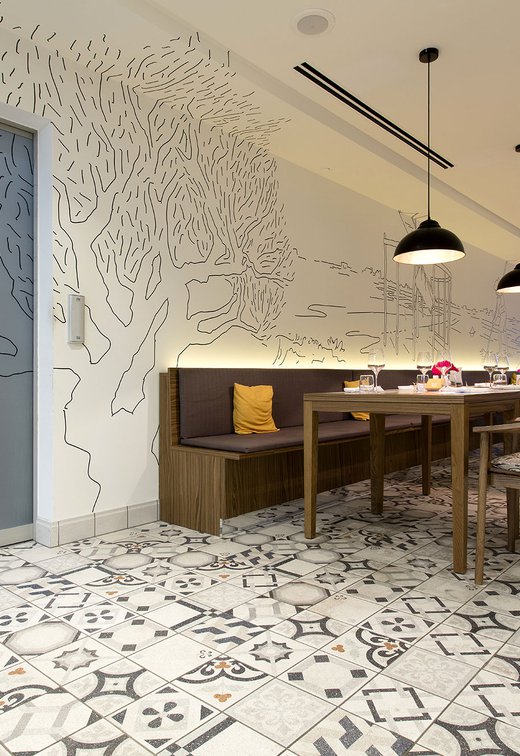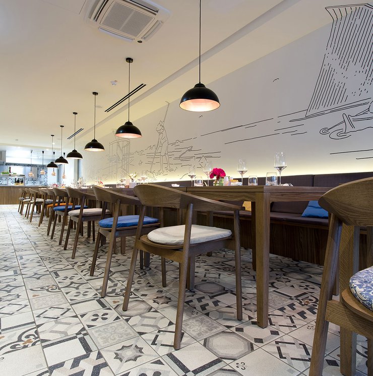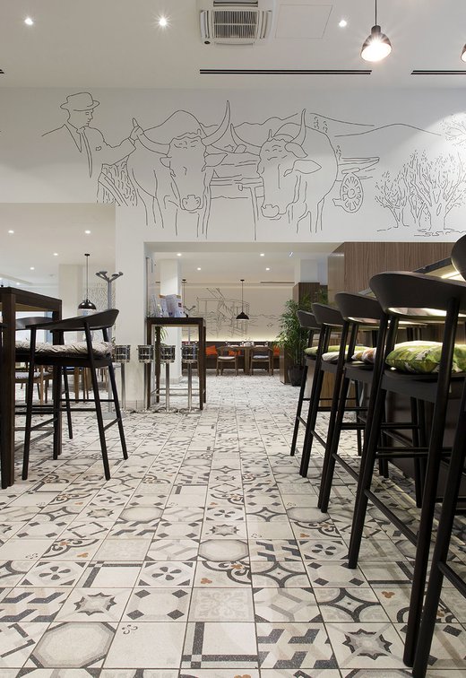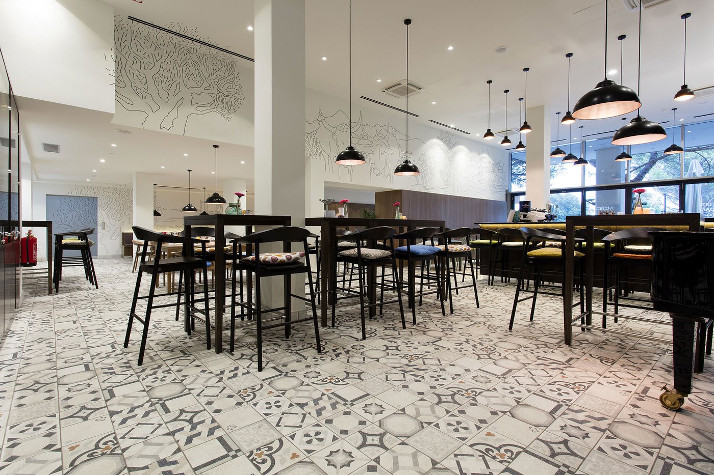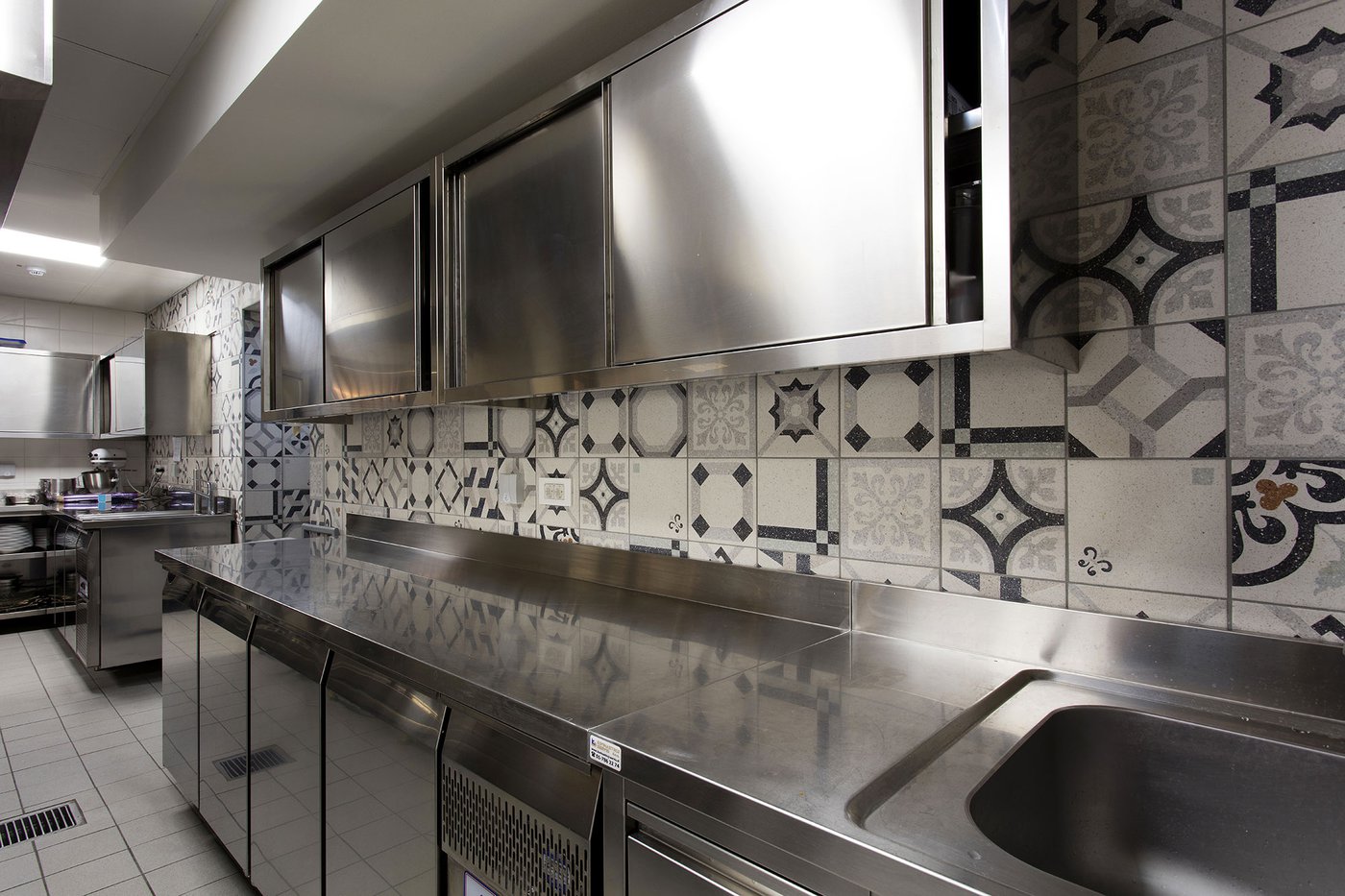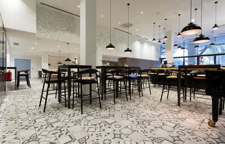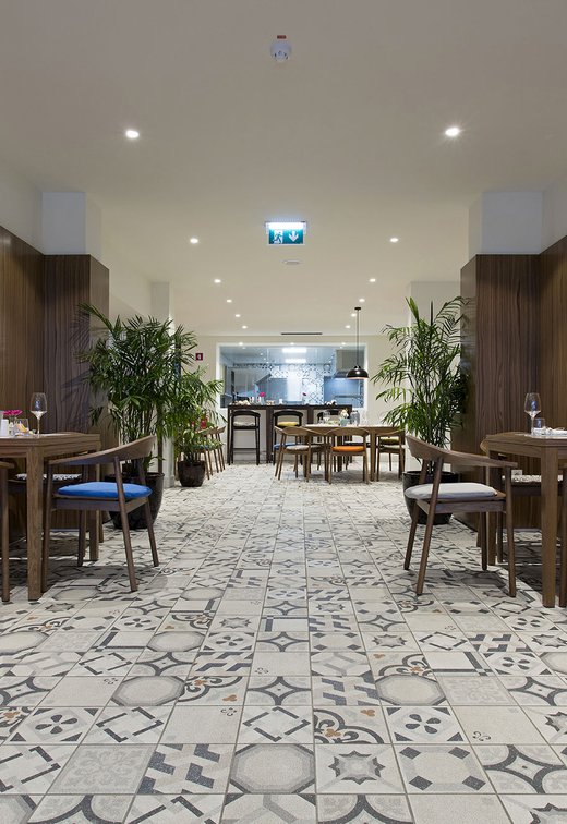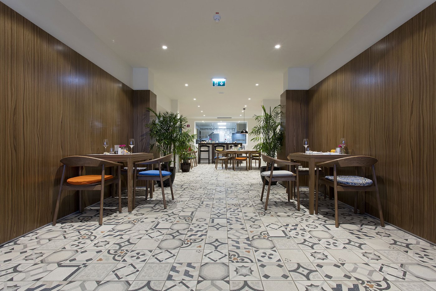 Istrian Bistro & Tapas Bar is a venue with an authentic flavour, right in the centre of Portorož: the country-style stone effect retro tiles Forme are the perfect choice for this simple, informal eatery. In the dining room, the accent is on the “terrazzo” effect, and the numerous decor elements in the collection have been used to create an original, decorative carpet-style surface, featuring the 20x20 size. The same decor mix is also found on the walls of the kitchen and in the bar area.