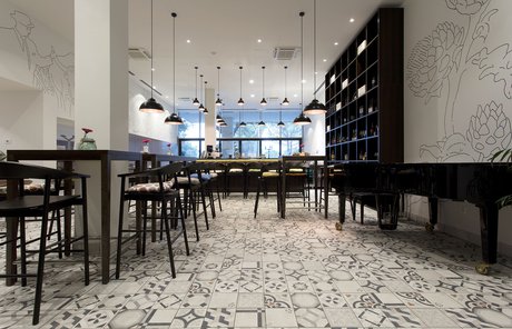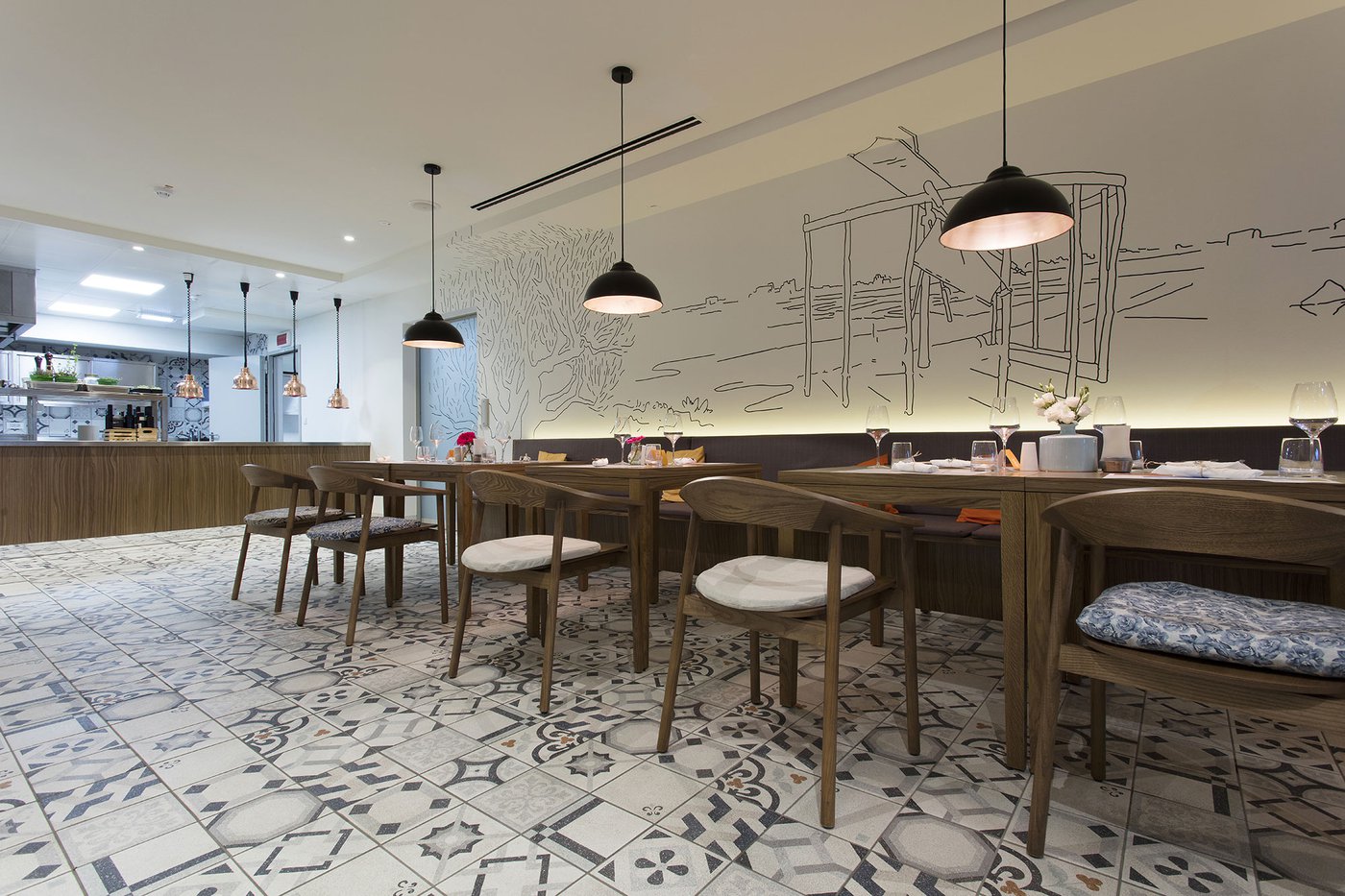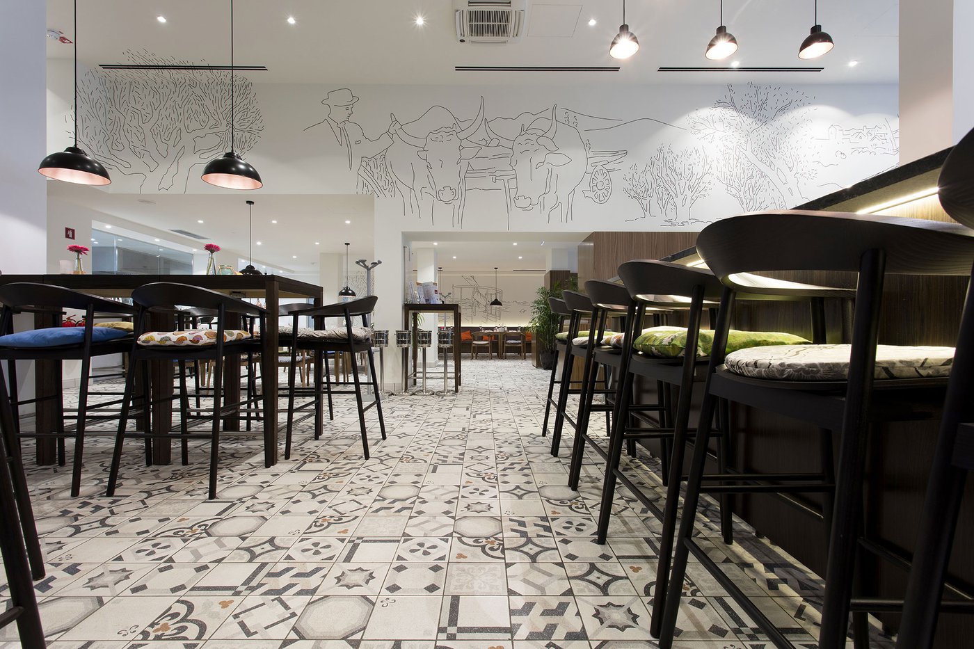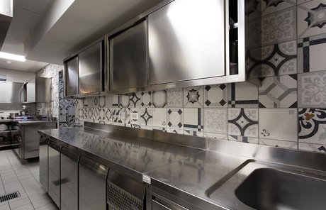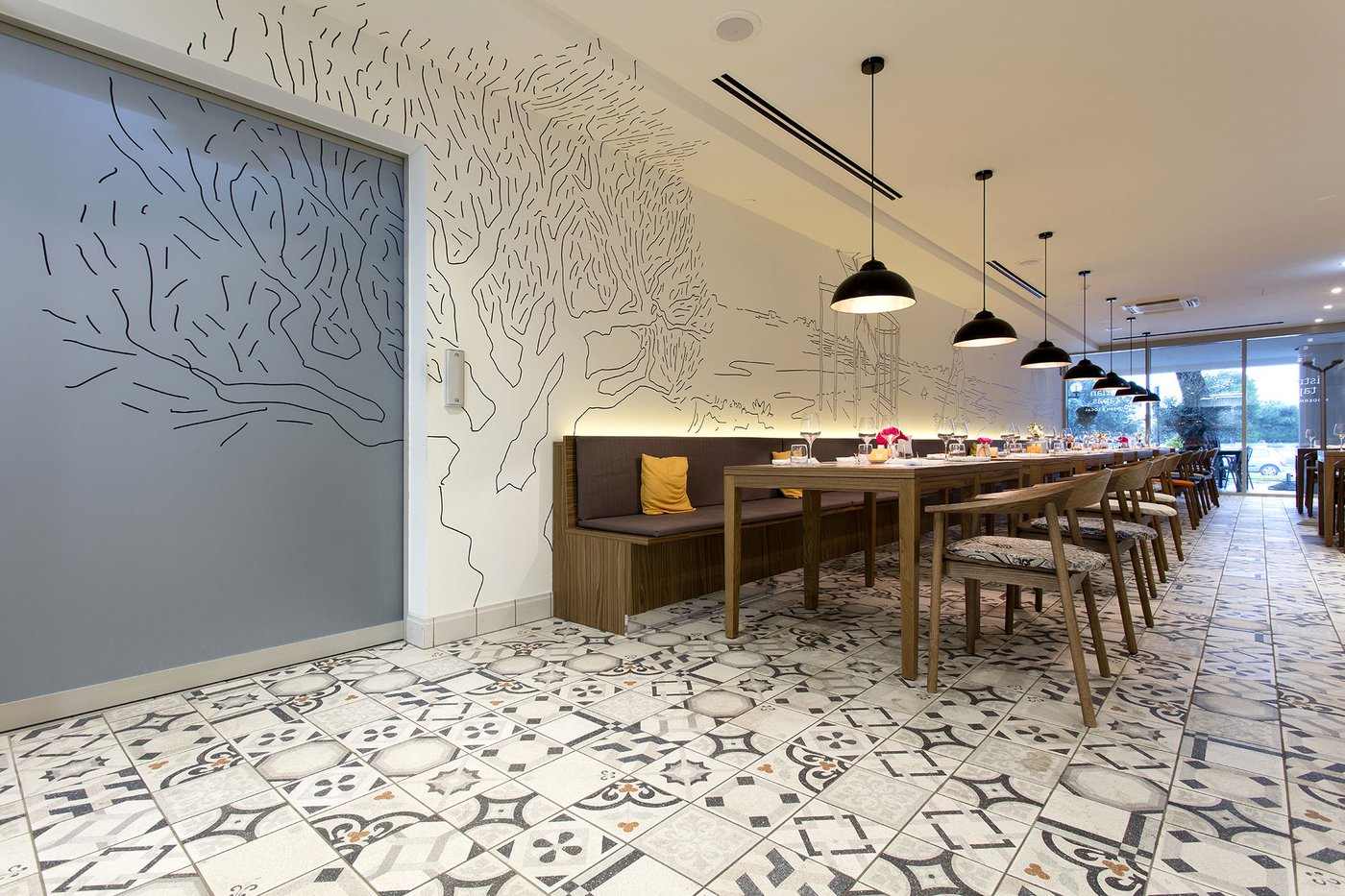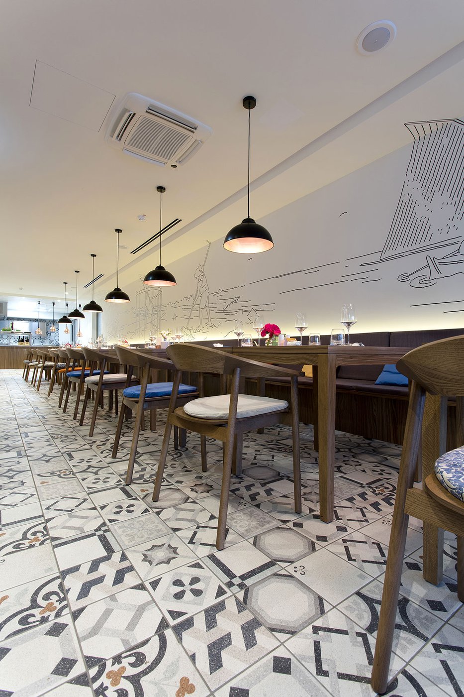 Istrian Bistro & Tapas Bar is a venue with an authentic flavour, right in the centre of Portorož: the country-style stone effect retro tiles Forme are the perfect choice for this simple, informal eatery. In the dining room, the accent is on the “terrazzo” effect, and the numerous decor elements in the collection have been used to create an original, decorative carpet-style surface, featuring the 20x20 size. The same decor mix is also found on the walls of the kitchen and in the bar area.